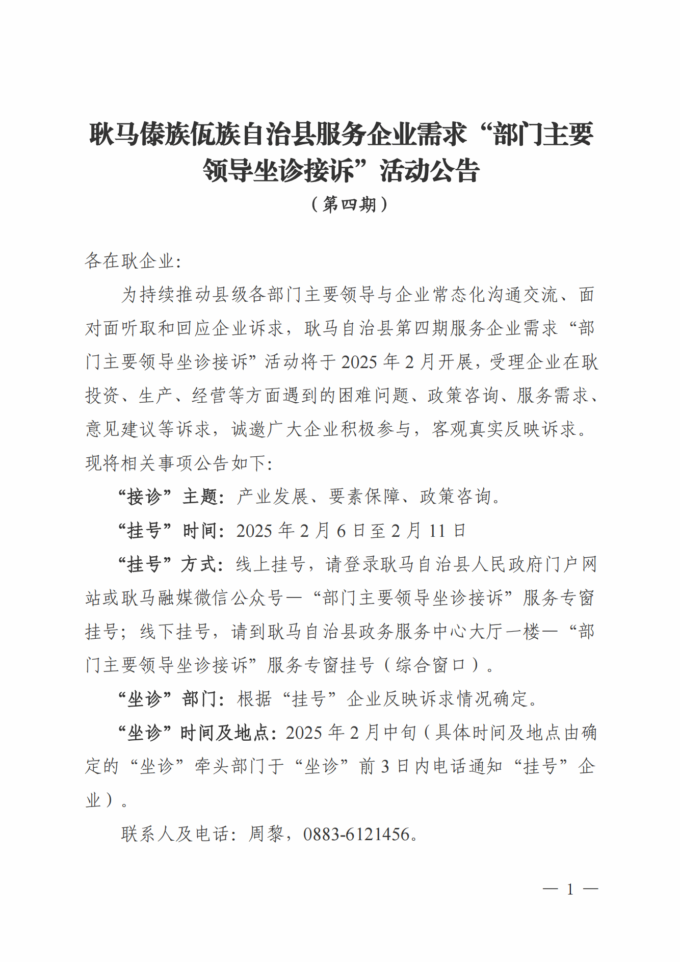 耿马傣族佤族自治县服务企业需求“部门主要领导坐诊接诉”活动公告(第四期)