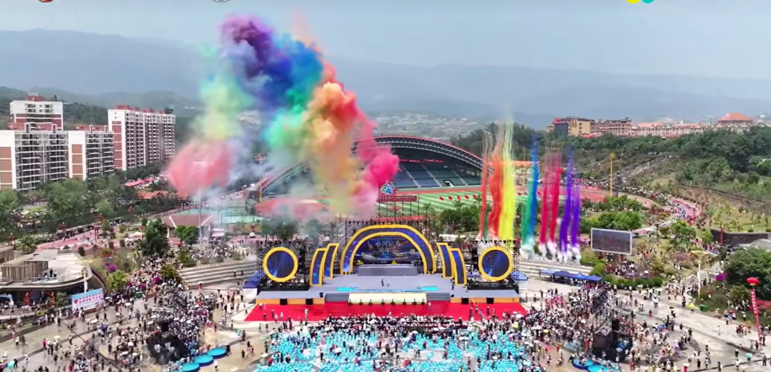 随着礼炮齐鸣,泼水狂欢火热开启,广场上水花四溅、欢声笑语不断。人们伴着动感音乐,互相泼洒圣洁之水、祝福之水,泼水广场化作欢乐的海洋,尽显耿马生机勃勃、民族团结的节日盛景。