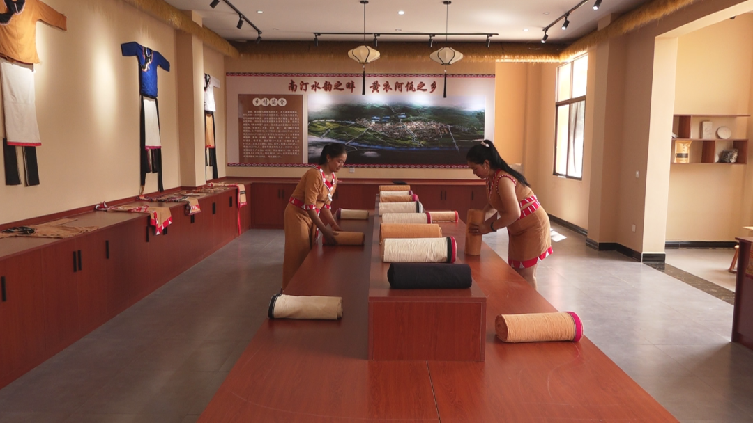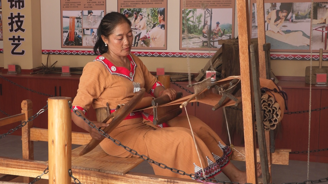市级非遗传承人李金花说:“以前我们都是在自家的火塘边织布,自从有了传习馆,很多年轻人都会来瞧瞧,(还有人)来跟我学习织布,我就在传习馆里面教给他们。”