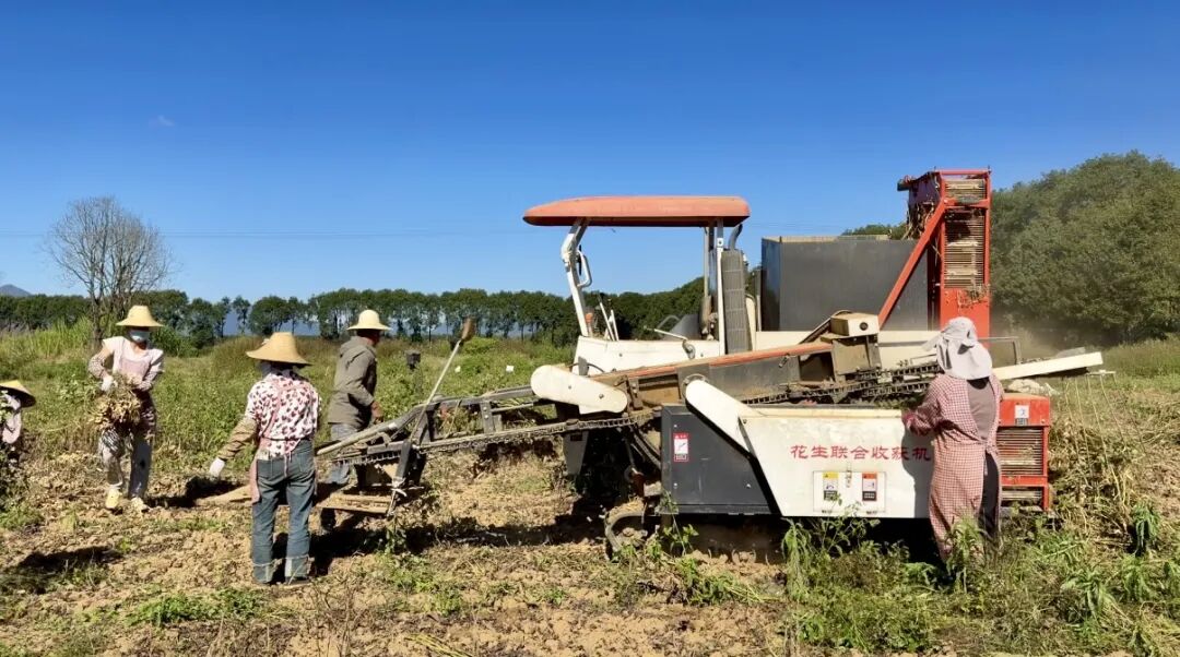 这片387亩的七彩花生田,由华裕公司规模化打造种植。依托撒马坝肥沃的土壤与充足的光照,选用高产优质七彩花生品种,辅以科学水肥管理和病虫害绿色防控技术,全力保障花生品质与产量。同时,公司投入专业机械参与种植、采收、脱粒、运输等环节,既减少人力成本,又大幅缩短采收周期。采收后的花生经清洗、晾晒、挑拣等多道工序处理后将存入冻库。采收期间,公司日均带动30余名农户务工,让农户实现“务工顾家两不误”。