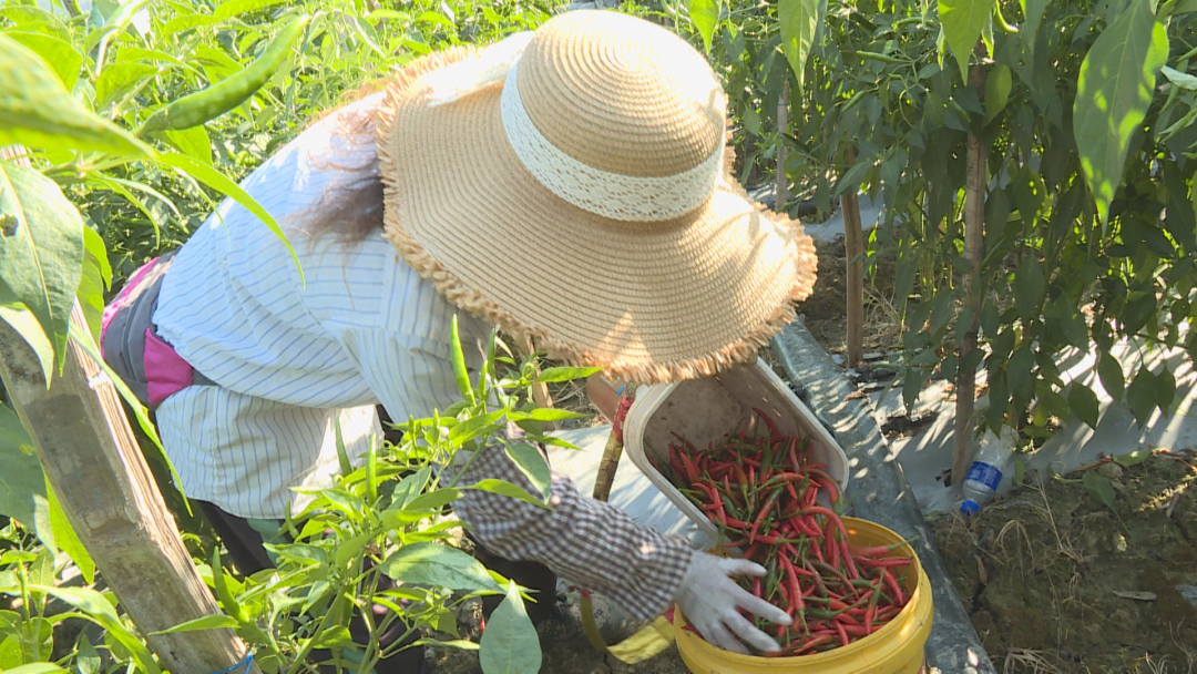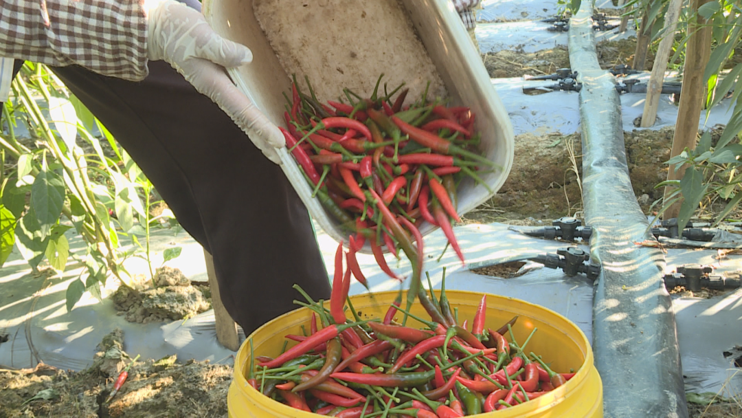 辣椒种植户 南安说:“我种了十多亩的辣椒,今年雨水好,温度也适合,平时我们管理也细,辣椒个头均匀卖相很好,现在一公斤差不多三四十元,价格很不错。”