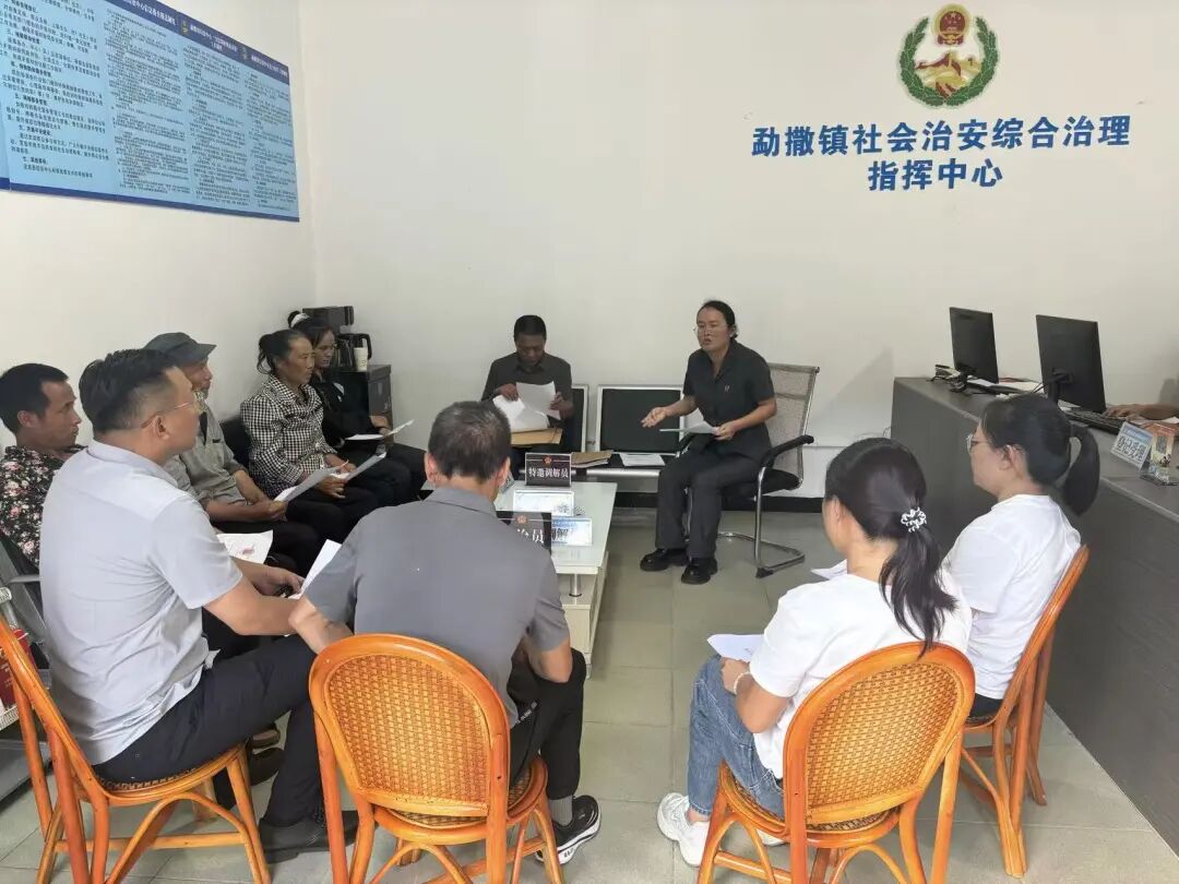 为着力织密基层治理网络,勐撒镇构建“镇党委——村(社区)党组织——村(居)民小组党支部——党员网格员”四级联动体系,以严密的组织体系打通矛盾化解“末梢神经”。在此基础上,镇党委牵头成立“党员网格先锋队”,全面推行涵盖主动排查、询问、思考、解决、普法、管理的“六个主动”工作法,确保触角延伸至家家户户。同步建立“三级预警”机制:一般矛盾由党员网格员就地即时化解,潜在风险由村(居)民小组长靠前协调处置,重大矛盾则由镇党委统筹联动攻坚。2025年全镇排查的353起矛盾纠纷中,超80%在基层村组层面得到有效化解,真正实现了“组织扎根网格、党员融入邻里”。依托“两网融合”优势,党员常态化巡逻摸排,将风险消弭于萌芽,筑牢源头防范“第一道防线”。