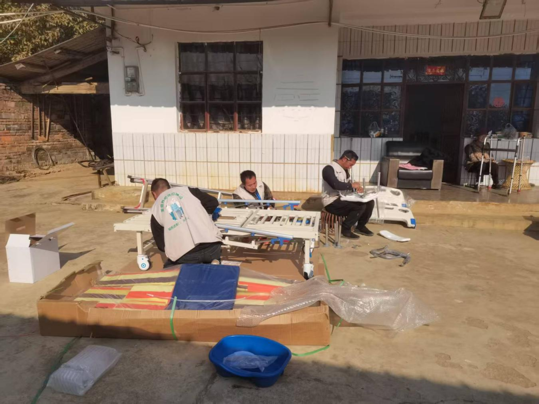 为破解服务资源不足难题,丙令村在勐撒镇党委政府指导下,对接上级部门与社会力量。市红十字会、县民政局积极搭建帮扶平台,临沧久泰药业有限公司、耿马福德医疗服务有限公司等爱心企业捐赠护理床、轮椅、助行器、拐杖、沐浴椅等康复辅助器具80余件,共同推进居家基本养老服务提升项目。过程中,村两委、“自然村长”、网格员分工协作、全程跟进,形成支部引领、专干推动、网格落实的工作闭环,确保爱心物资与服务精准送达。