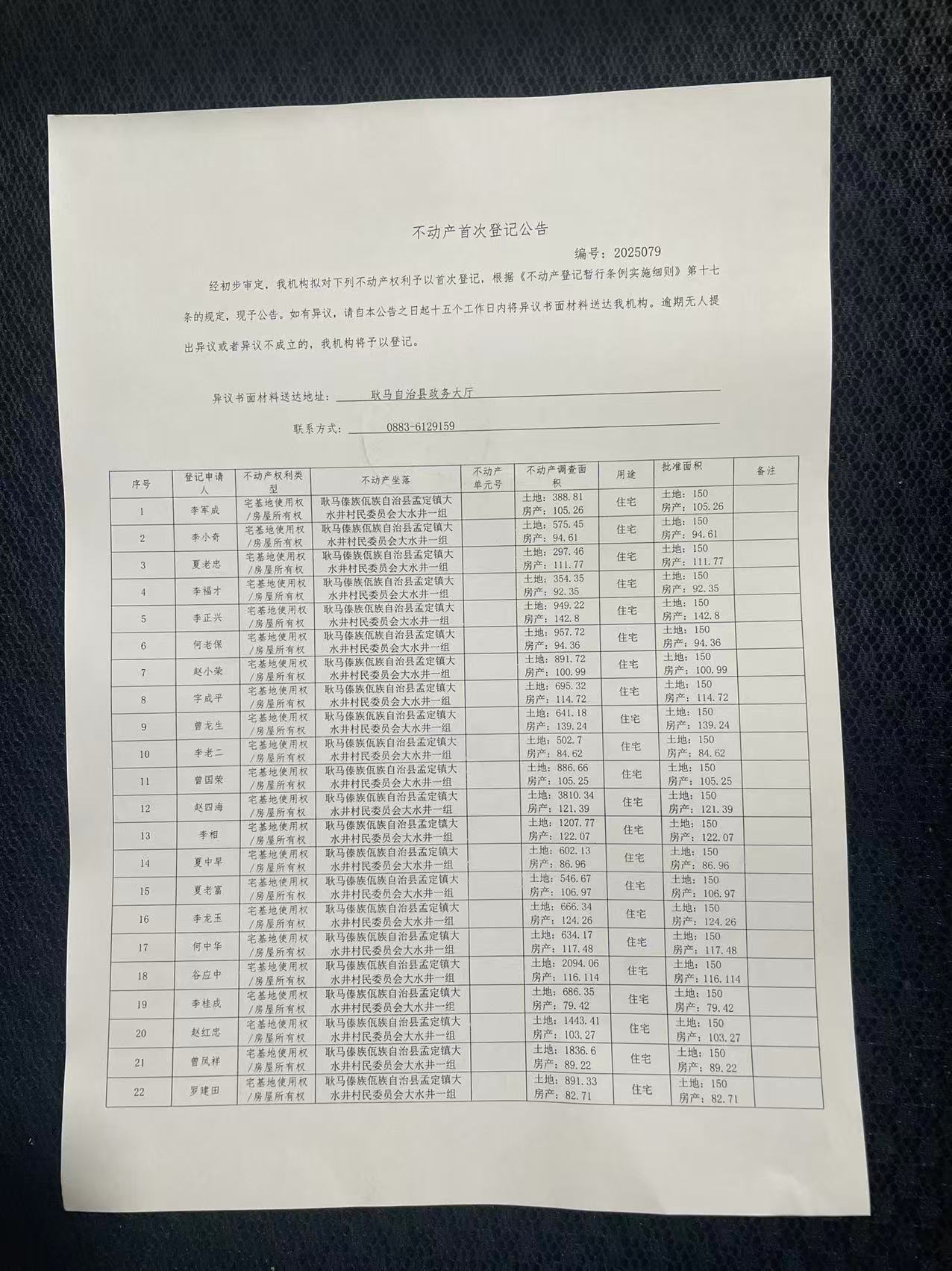 不动产首次登记公告(孟定镇大水井村大水井一组26户)