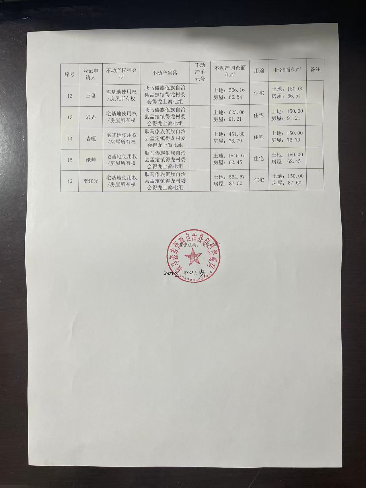 不动产首次登记公告(孟定镇得龙村得龙上寨七组16户)