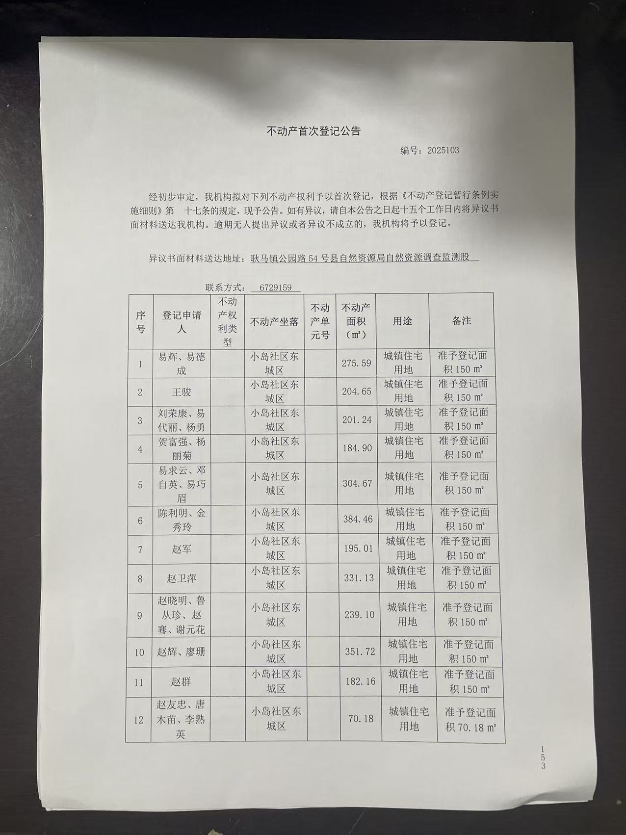 不动产首次登记公告(孟定镇小岛社区100户)