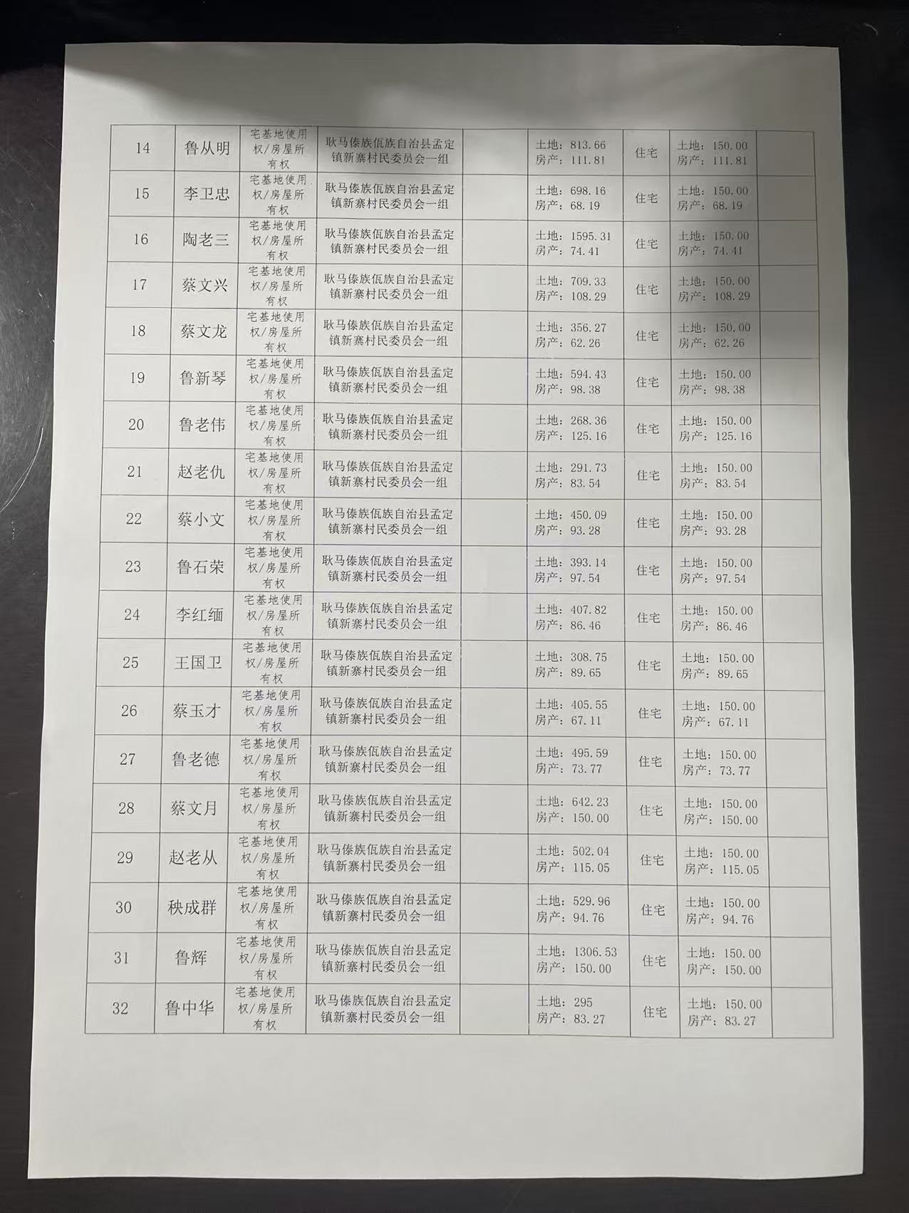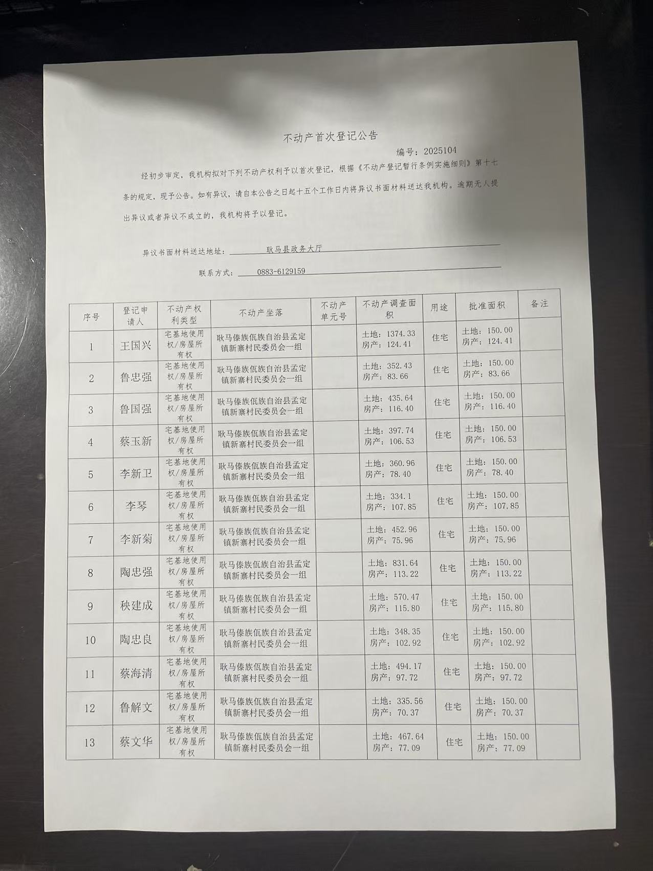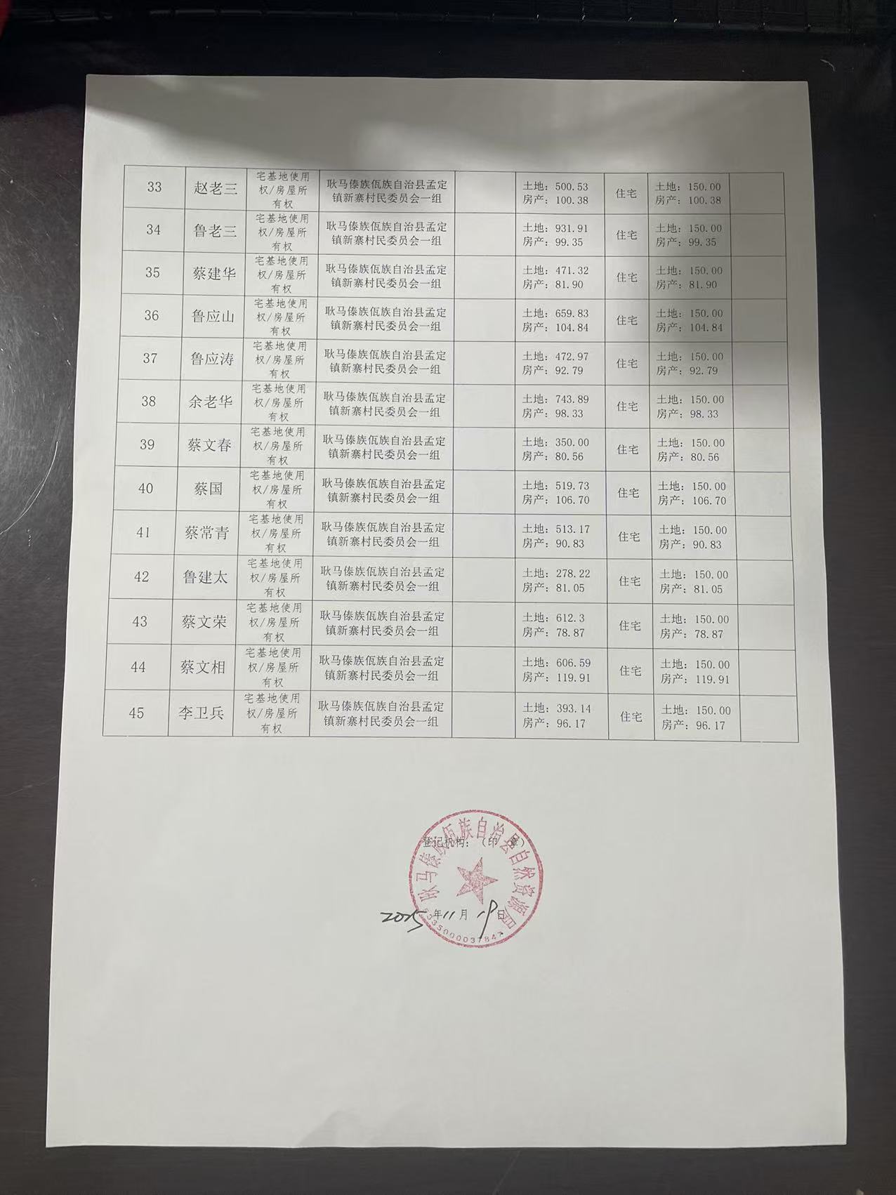 不动产首次登记公告(孟定镇新寨村一组45户)