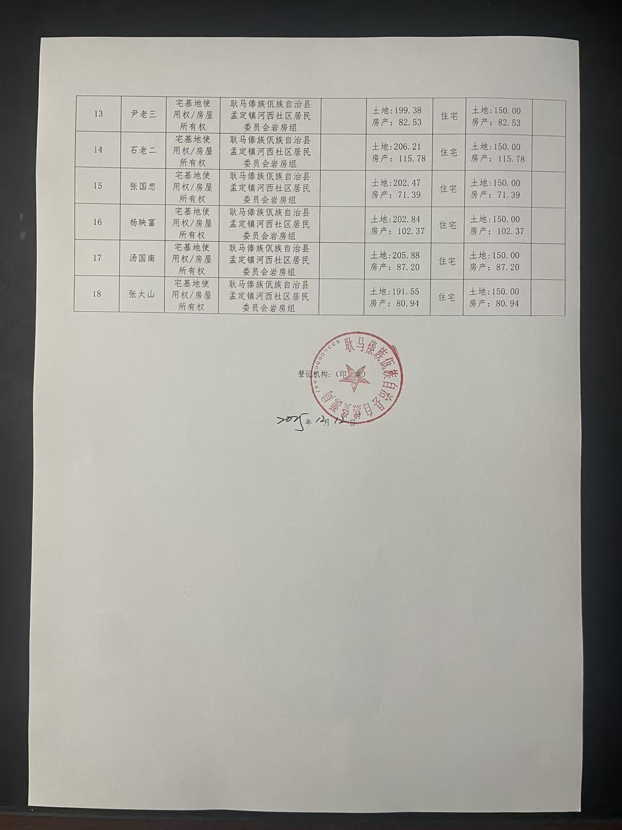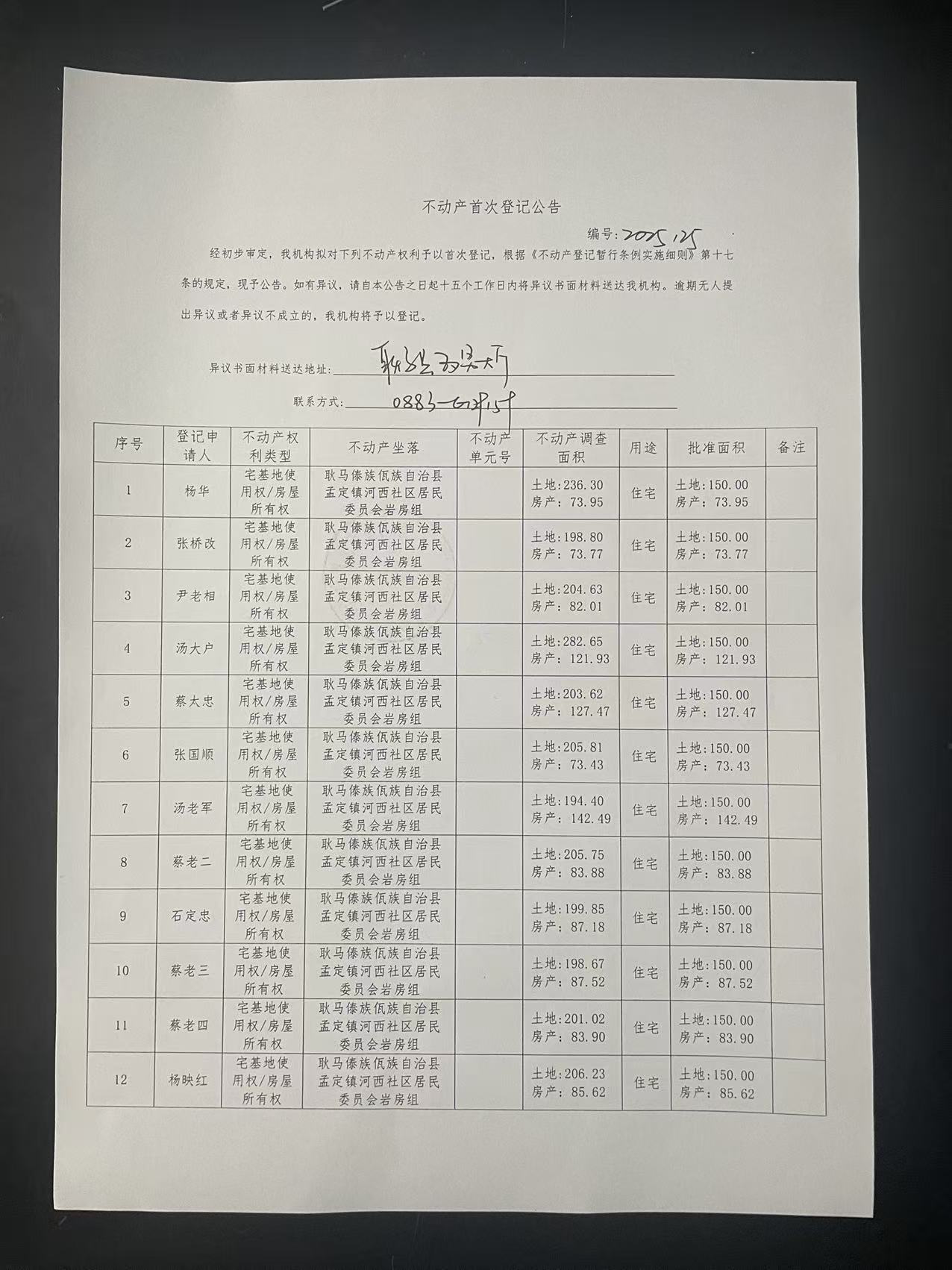 不动产首次登记公告(孟定镇河西社区岩房组18户)