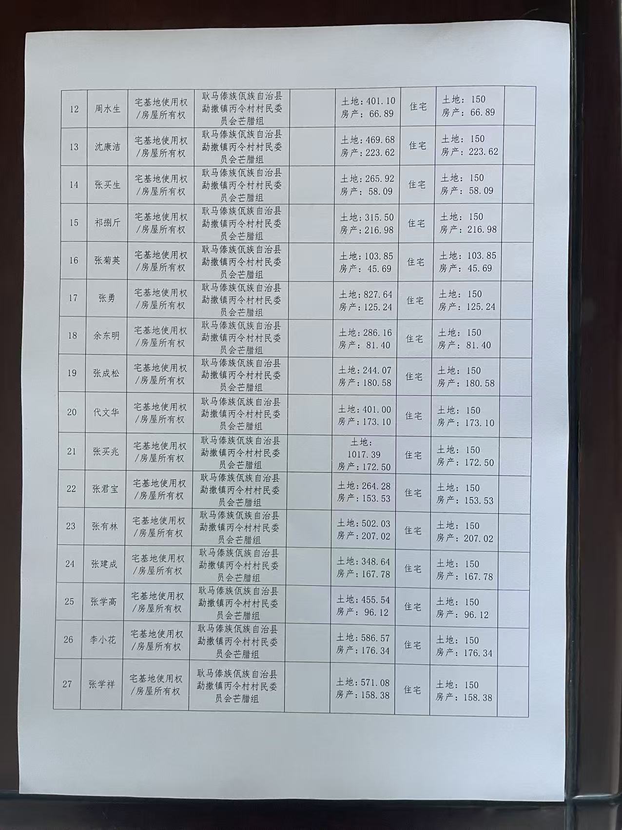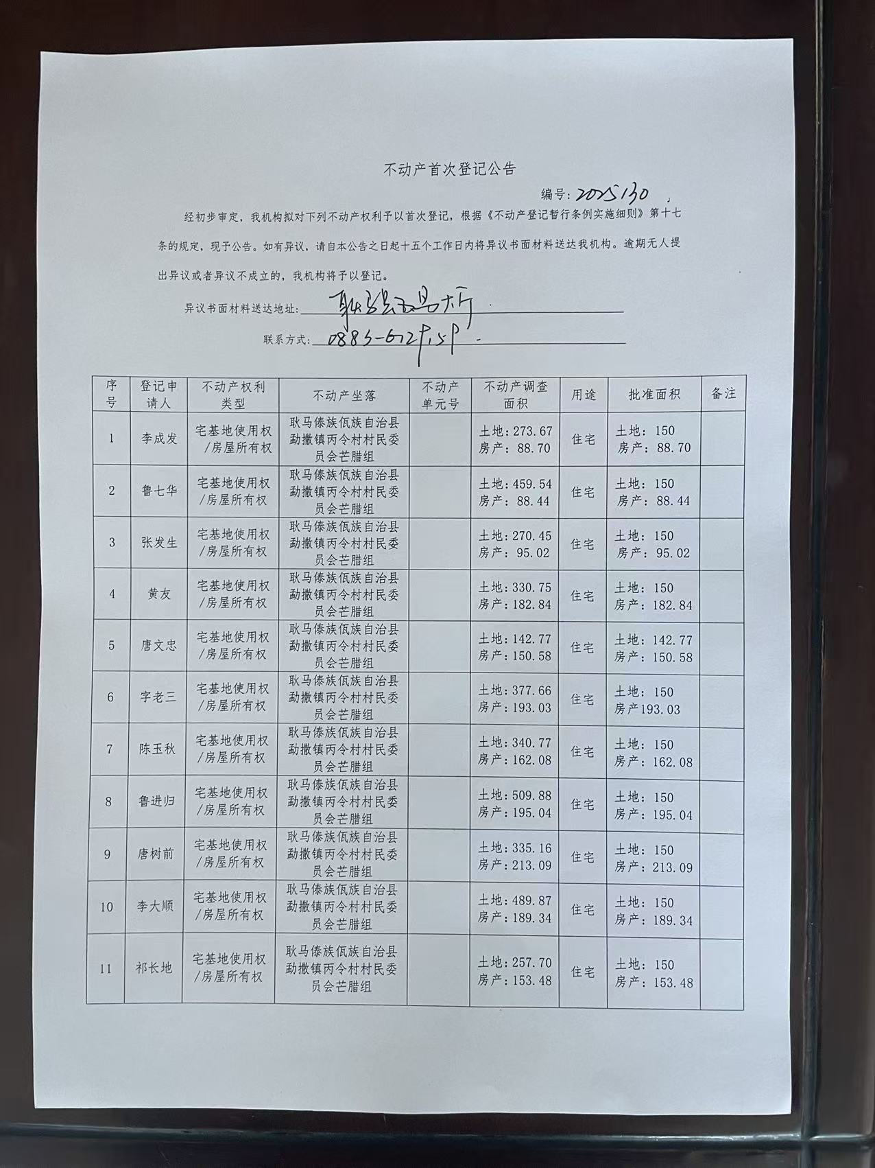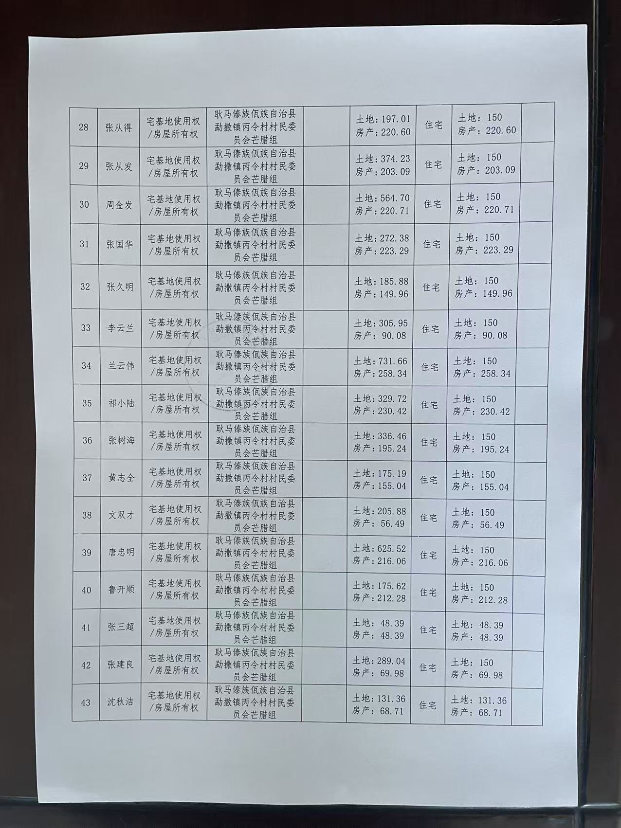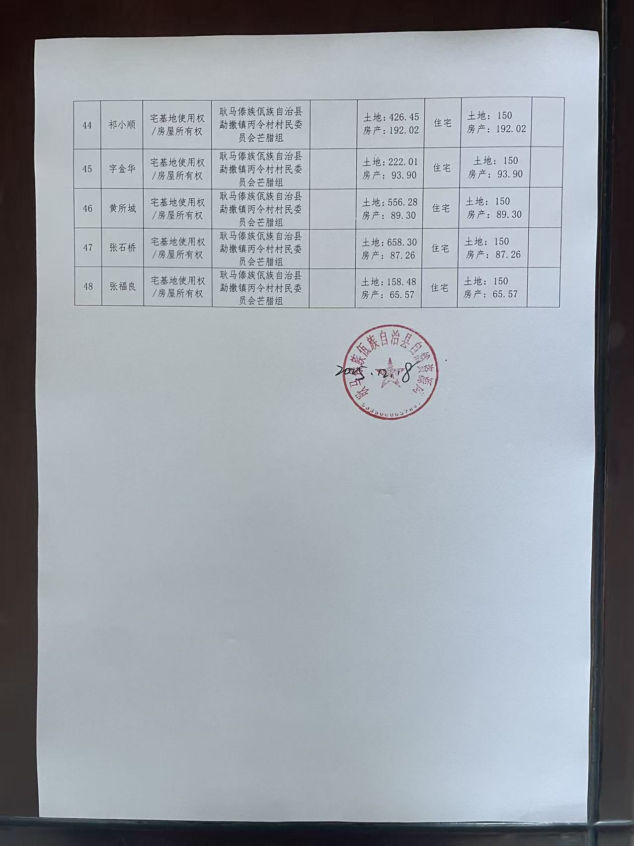 不动产首次登记公告(勐撒镇丙令村芒腊组48户)