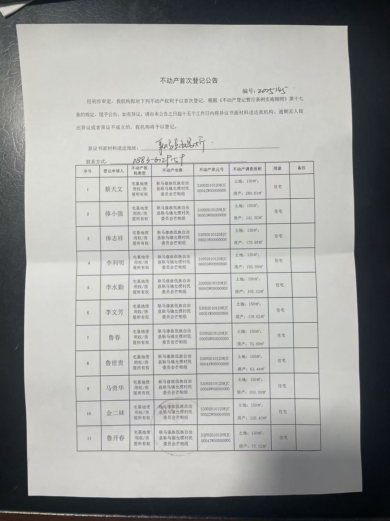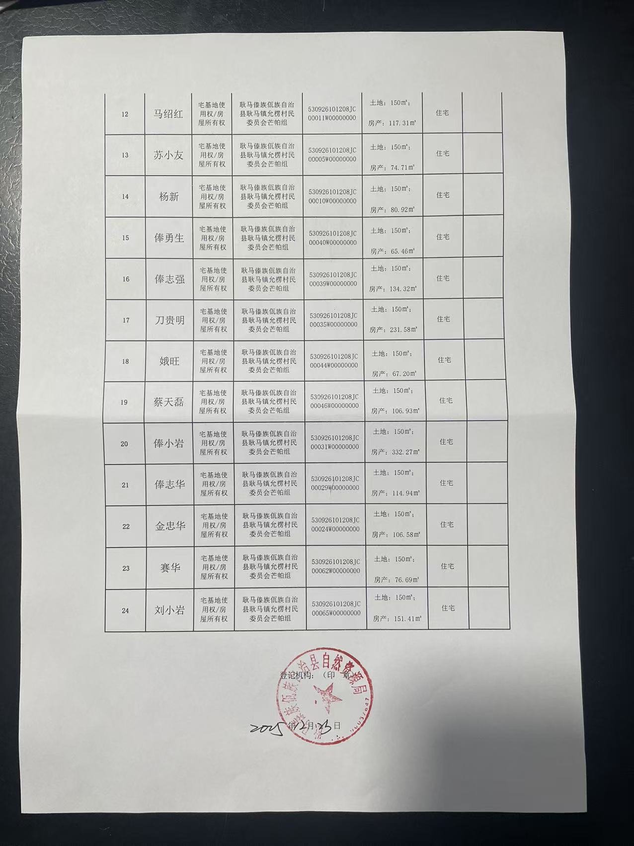 不动产首次登记公告(耿马镇允楞村芒帕组24户)