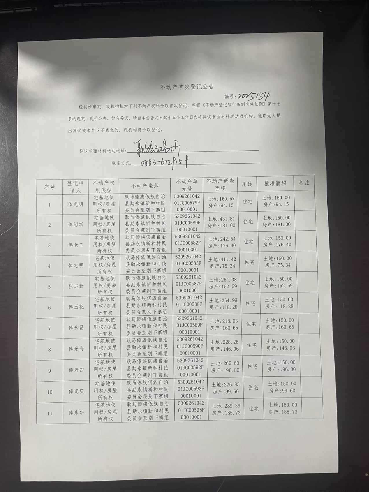 不动产首次登记公告(勐永镇新和村蔗别下寨组69)