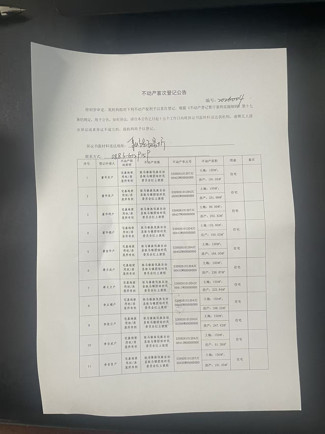 不动产首次登记公告(耿马镇团结村红土坡组21户)