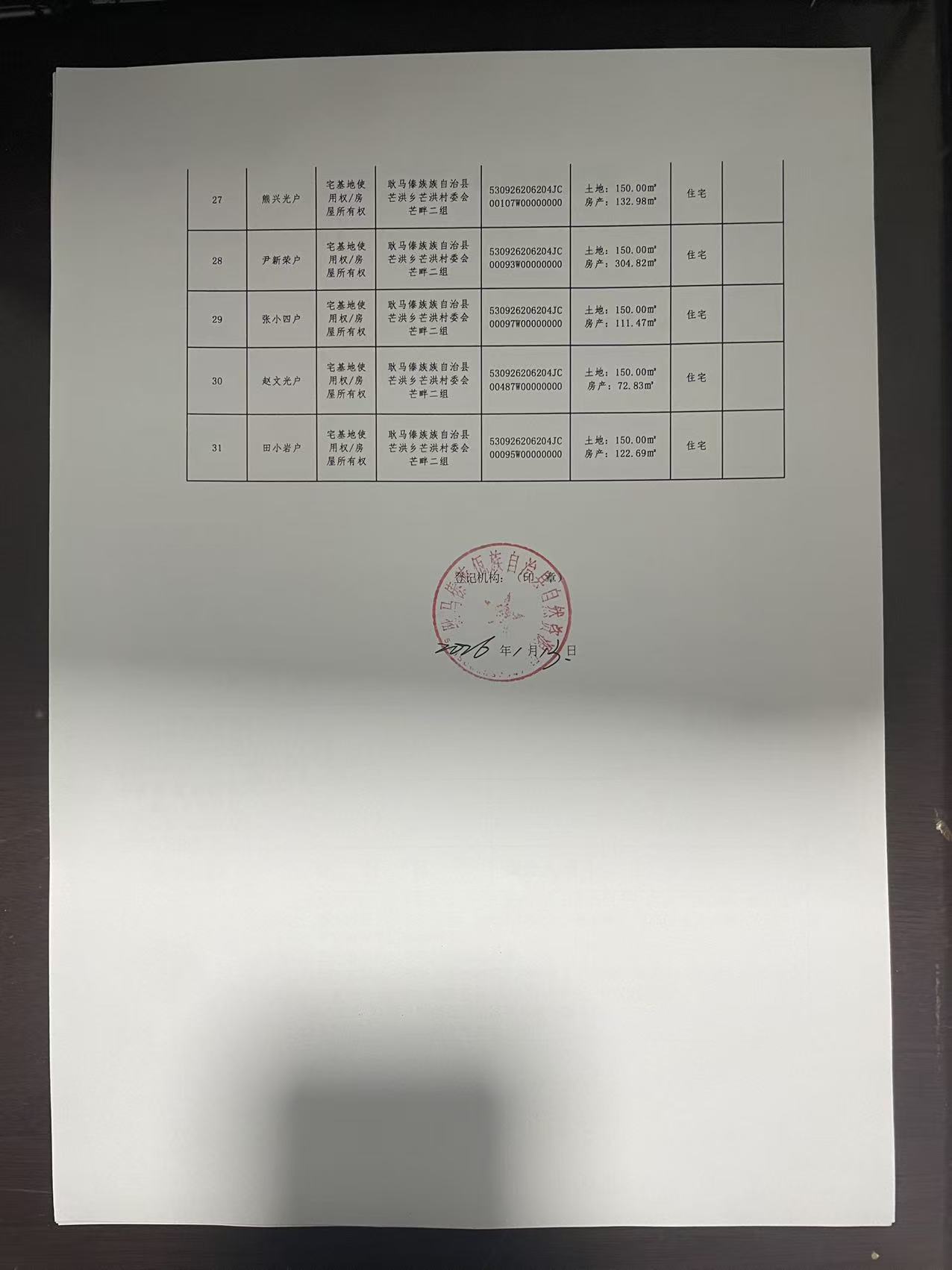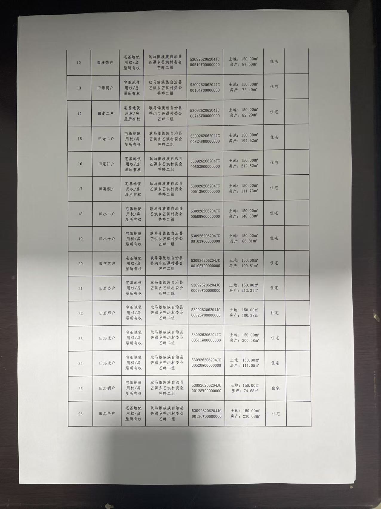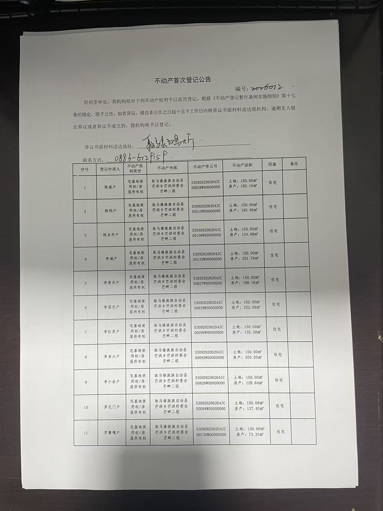 不动产首次登记公告(芒洪乡芒洪村芒畔二组31户)