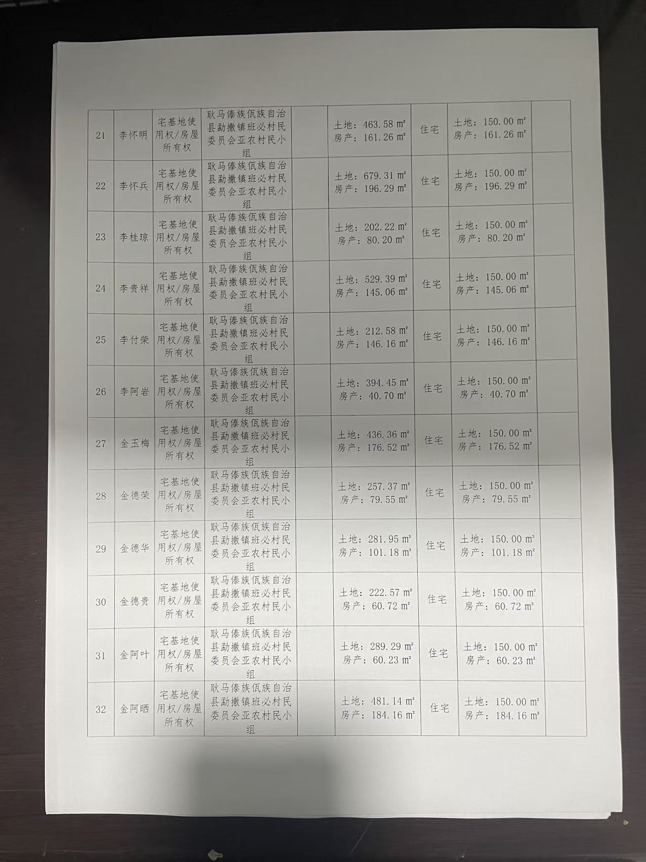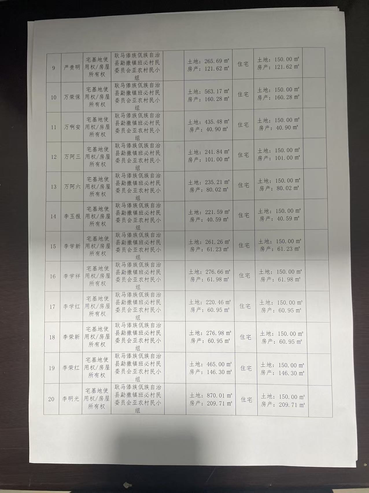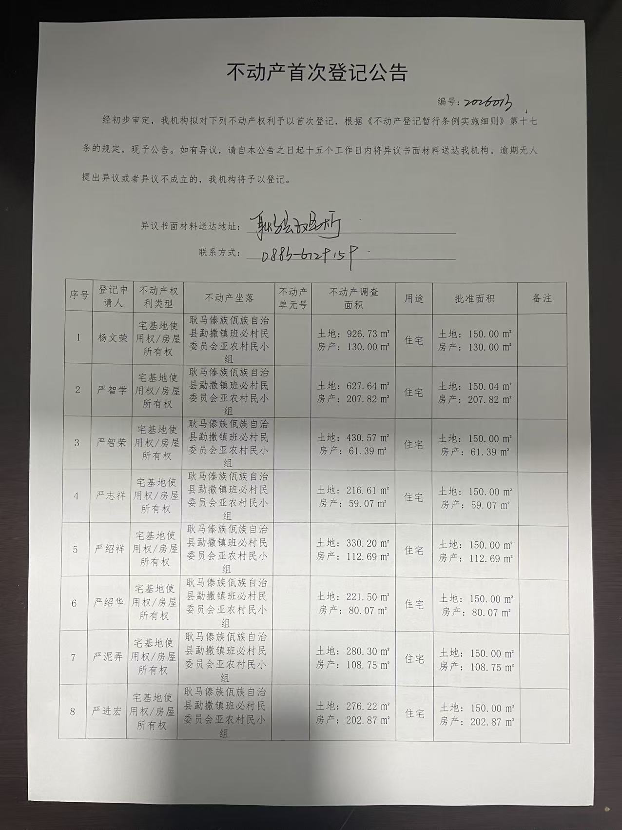 不动产首次登记公告(勐撒镇班必村亚农村组33户)