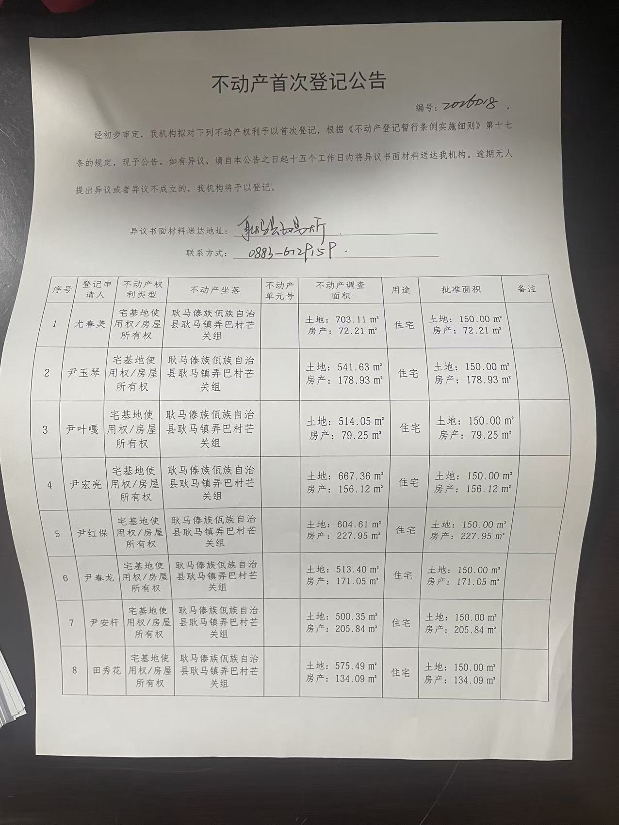 不动产首次登记公告(耿马镇弄巴村芒关组36户)