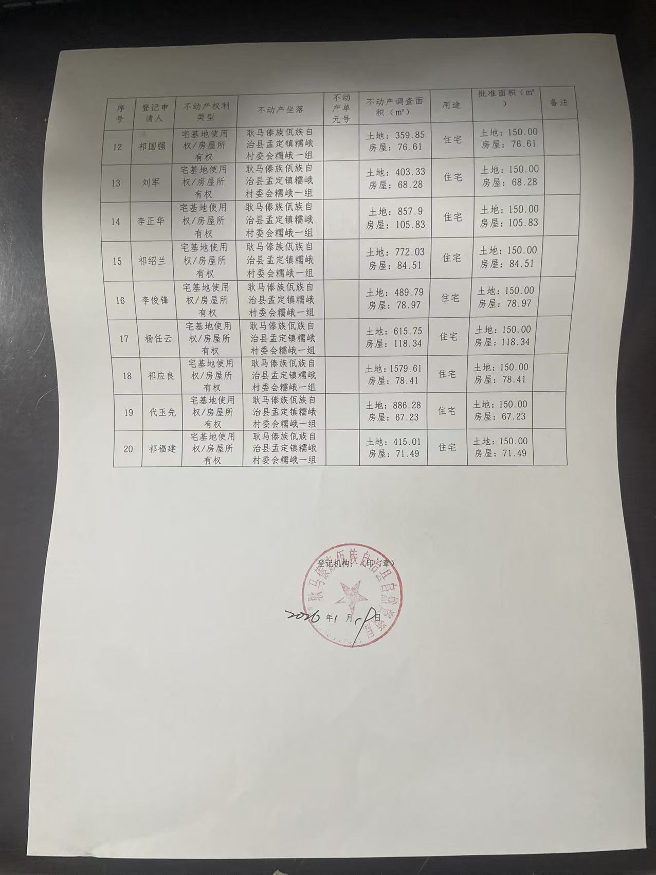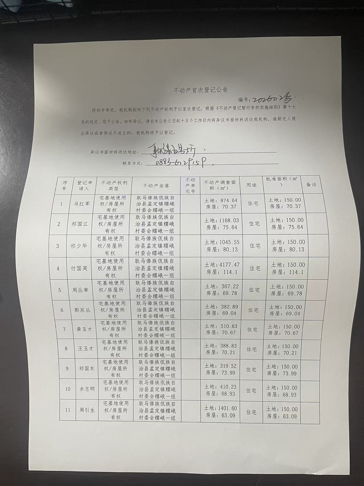 不动产首次登记公告(孟定镇糯峨村糯峨一组20户)