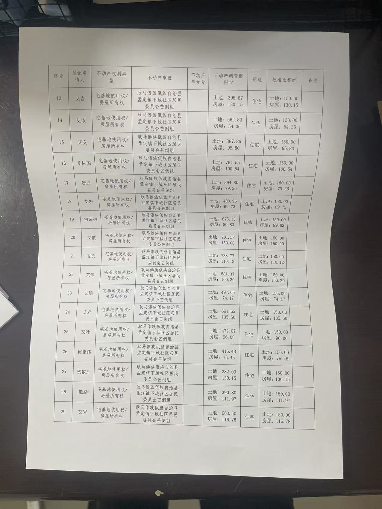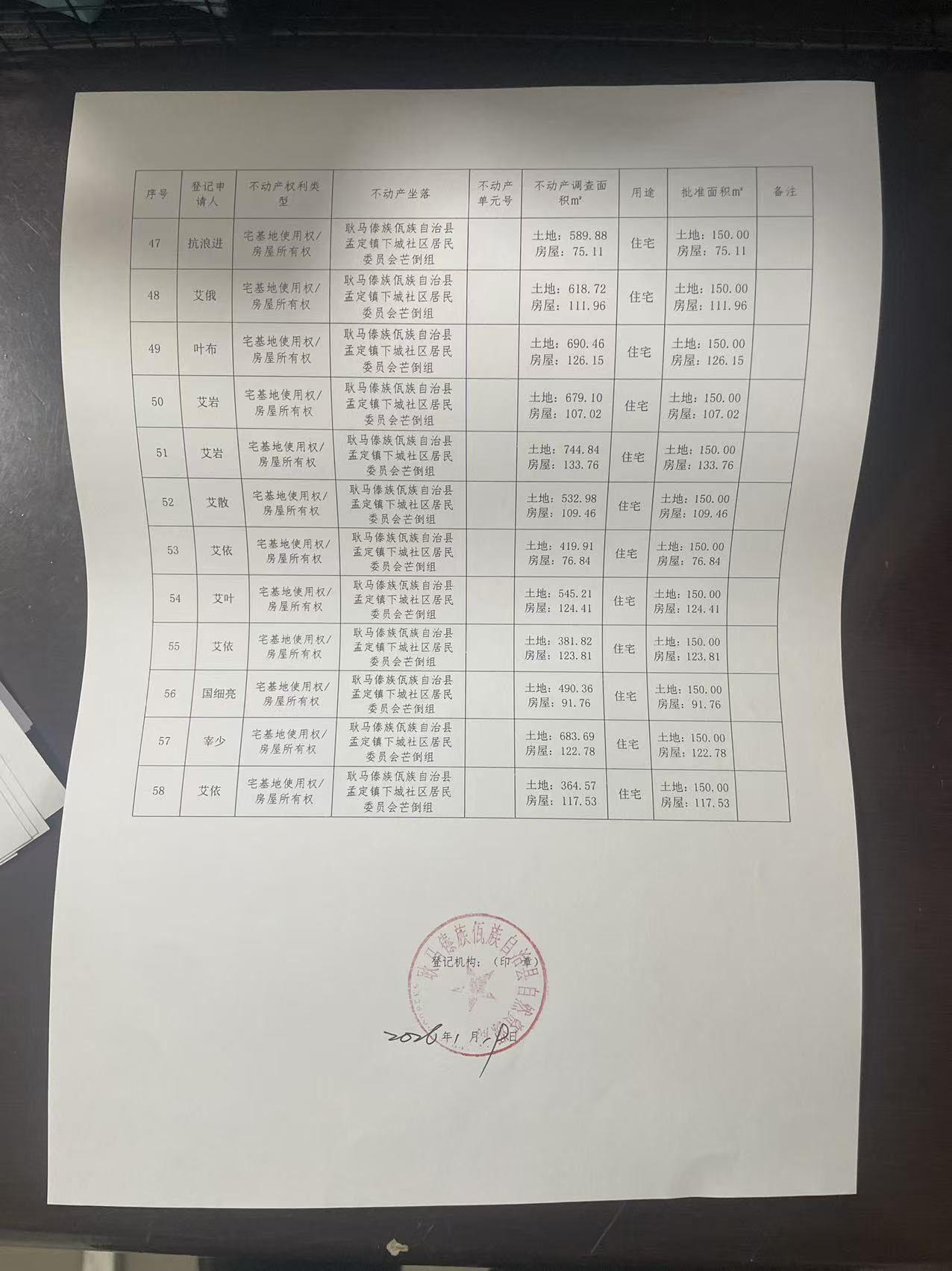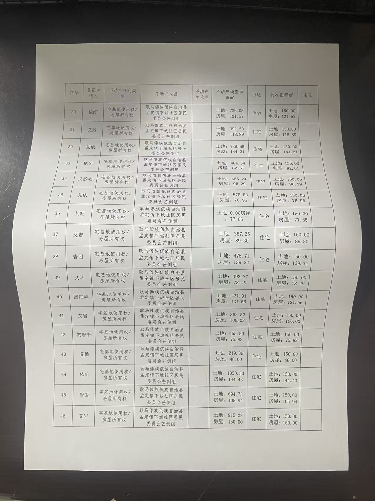 不动产首次登记公告(孟定镇下城社区芒倒组58户)