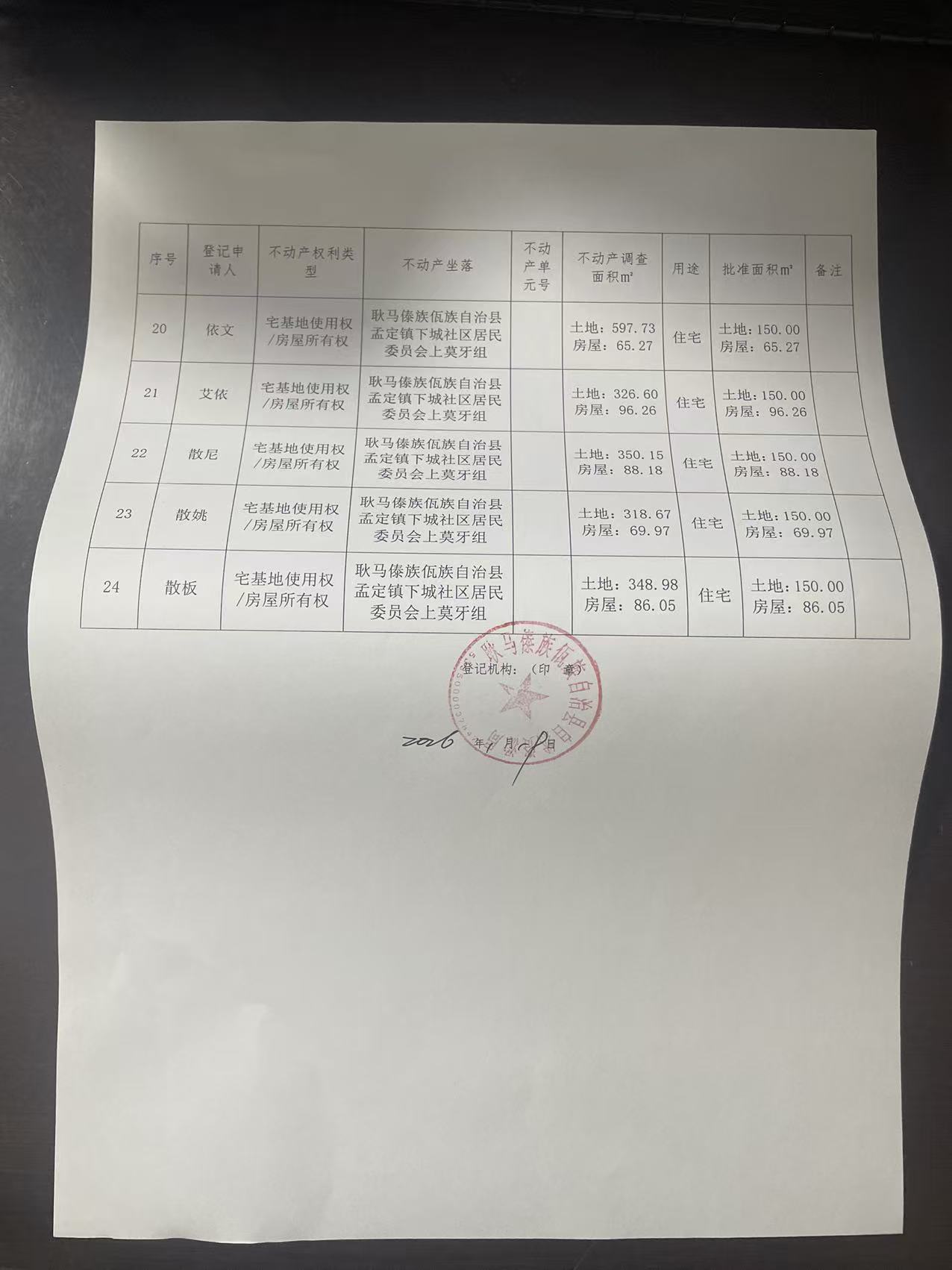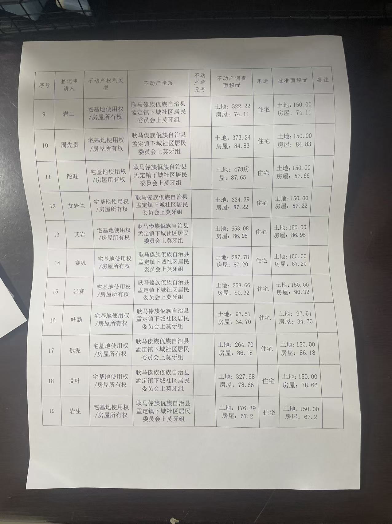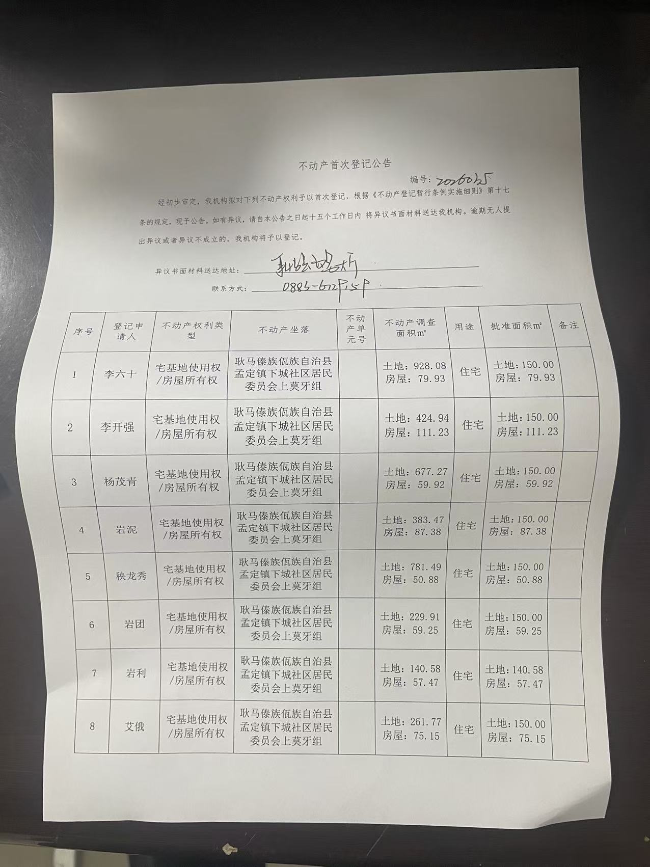 不动产首次登记公告(孟定镇下城社区上莫牙组24户)