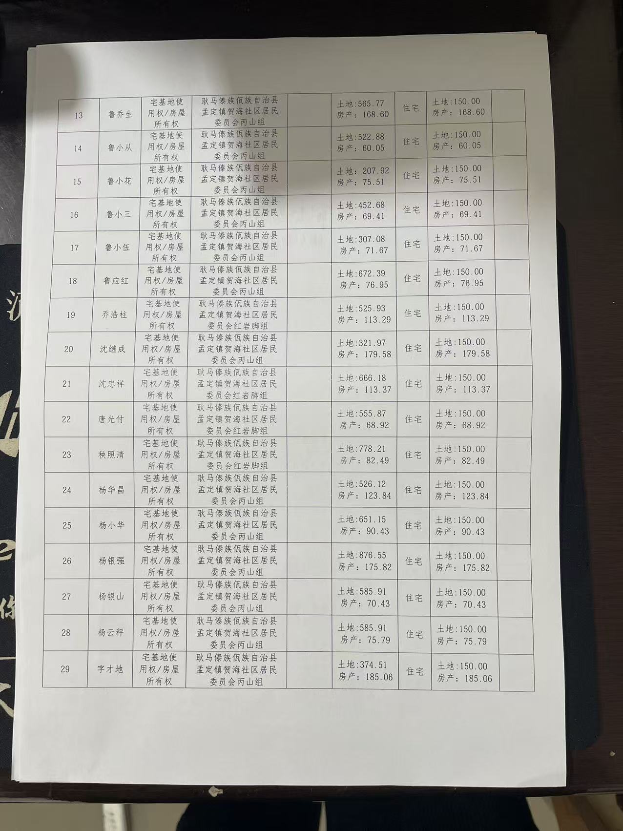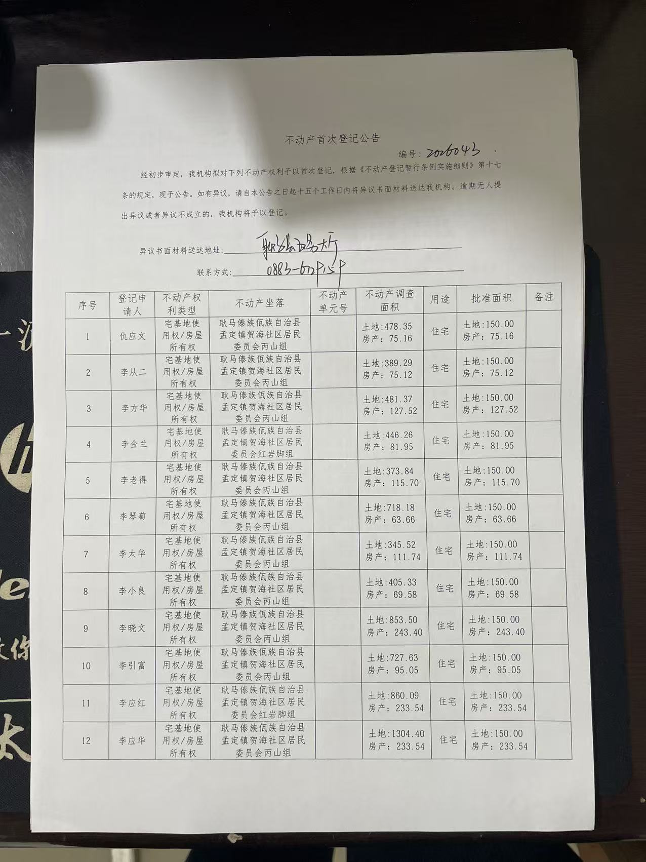 不动产首次登记公告(孟定镇贺海社区丙山组29户)