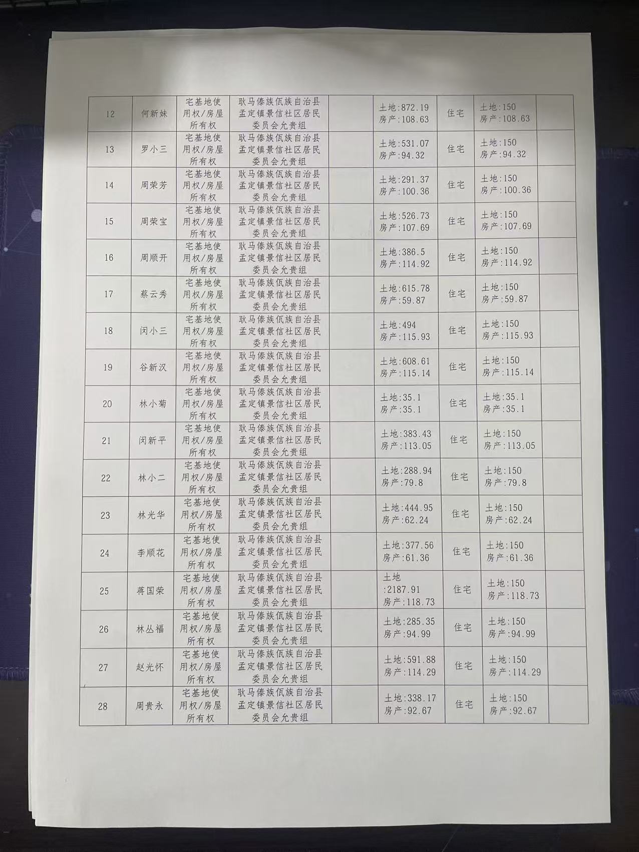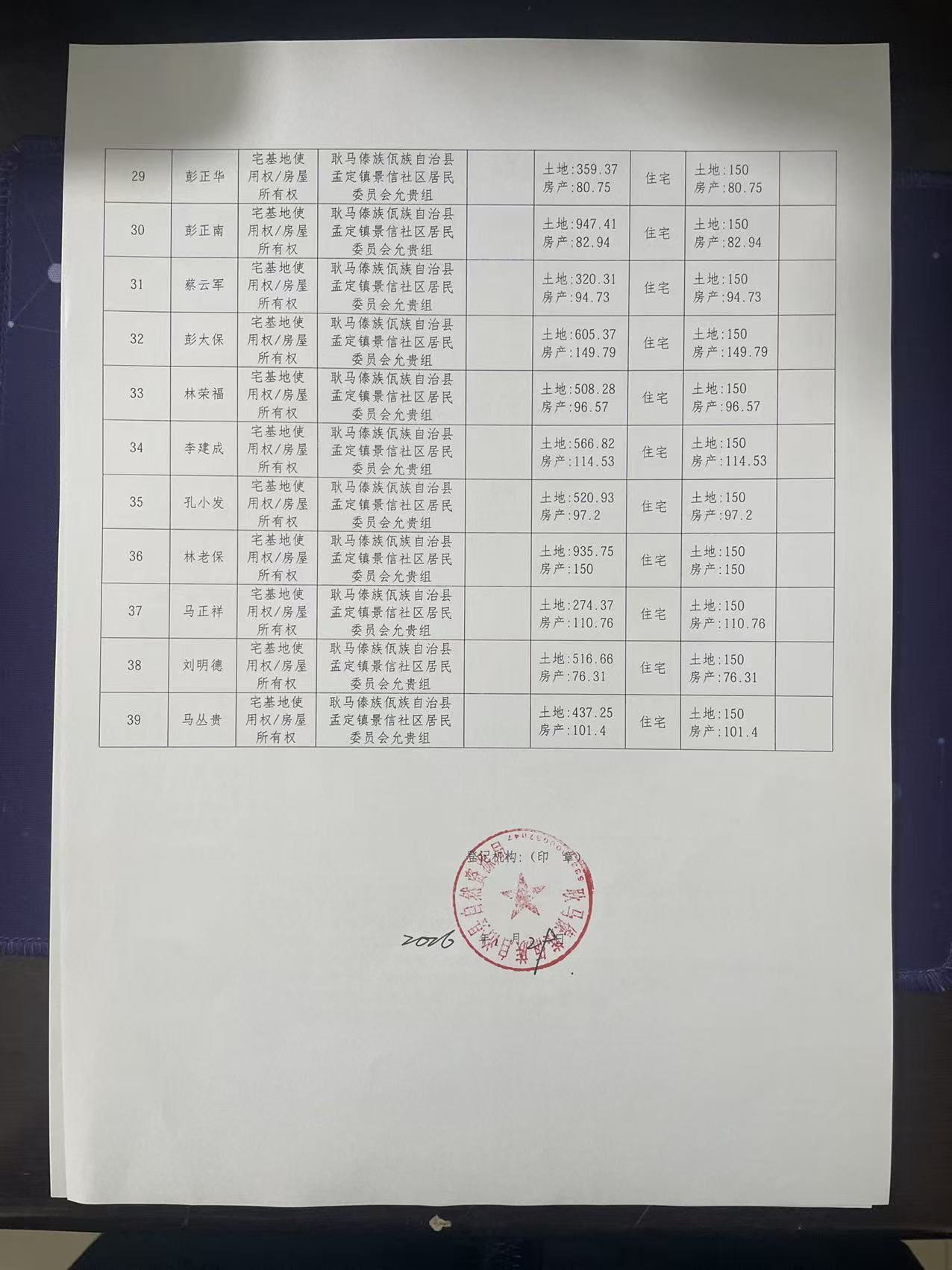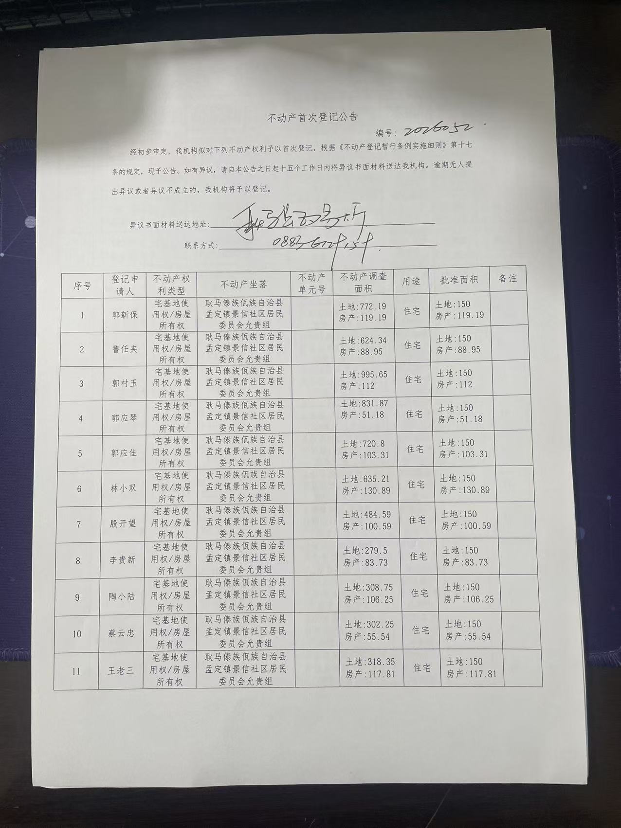 不动产首次登记公告(孟定镇景信社区允贵组39户)
