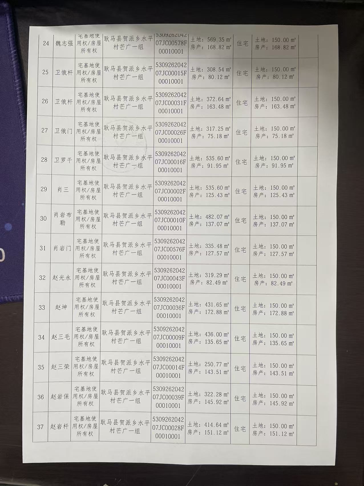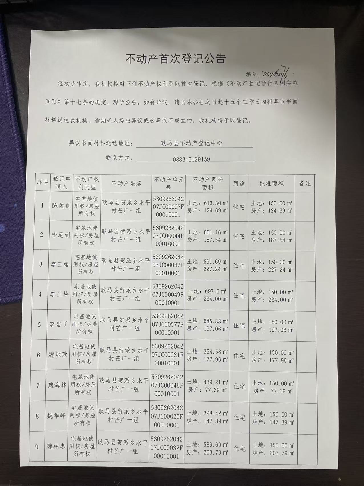 不动产首次登记公告(贺派乡水平村芒广一组39户)