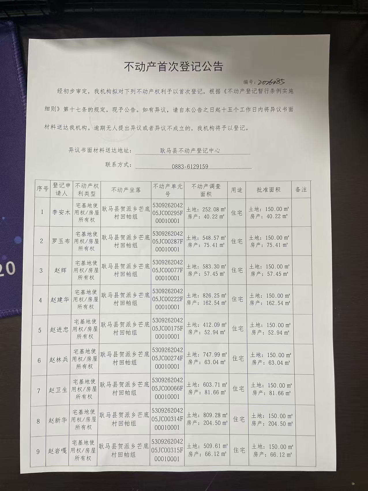 不动产首次登记公告(贺派乡芒底村回帕组10户)