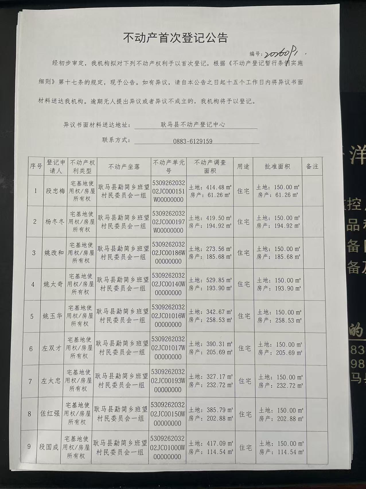 不动产首次登记公告(勐简乡班望村一组24户)