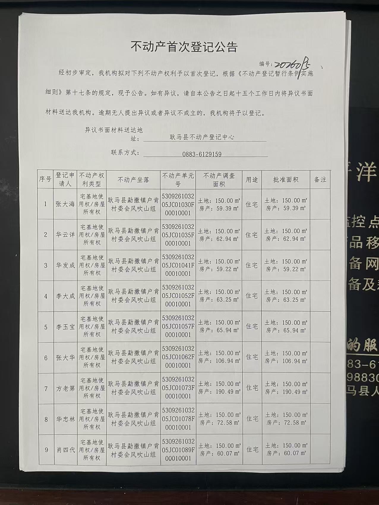 不动产首次登记公告(勐撒镇户肯村风吹山组44户)