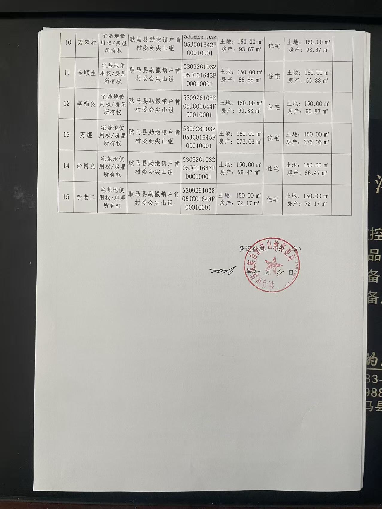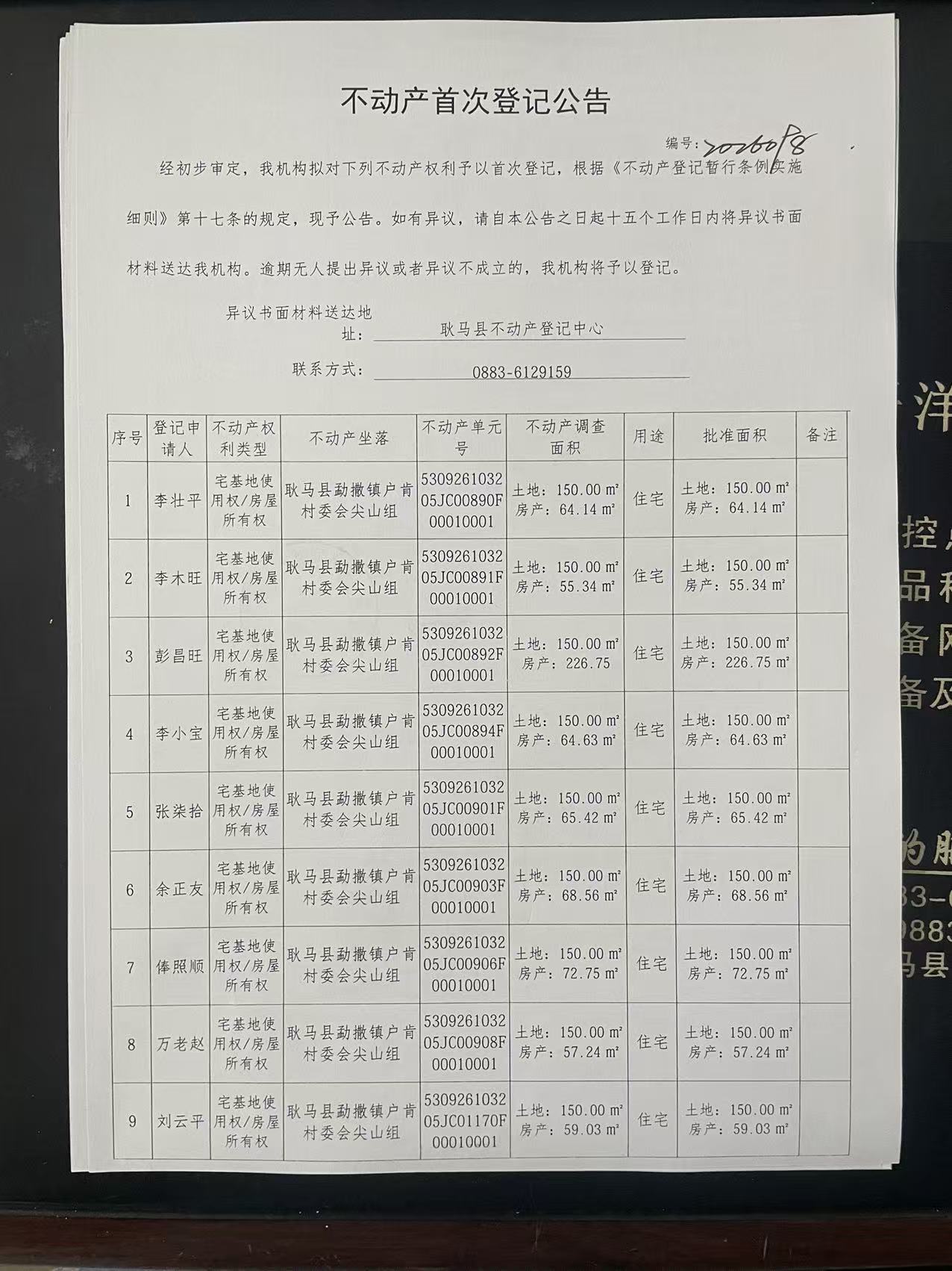 不动产首次登记公告(勐撒镇户肯村尖山组15户)