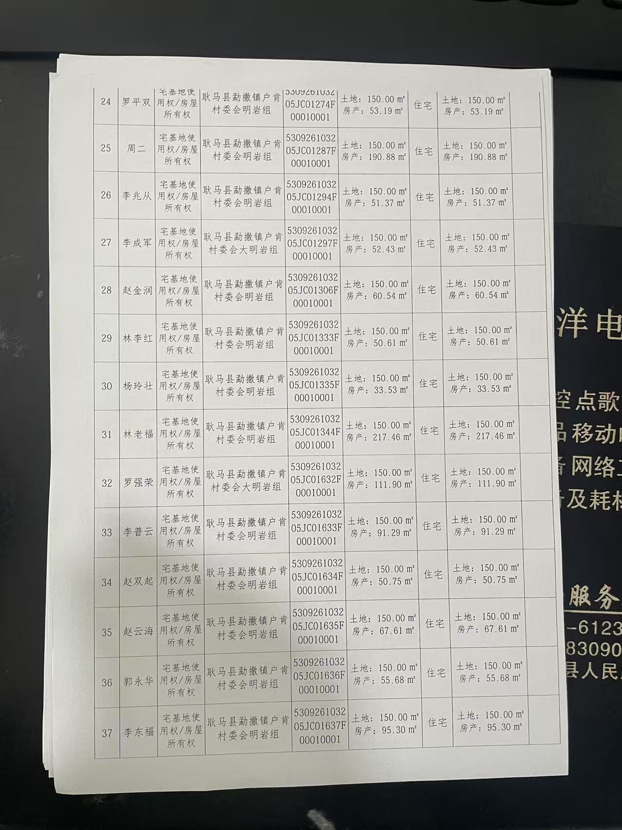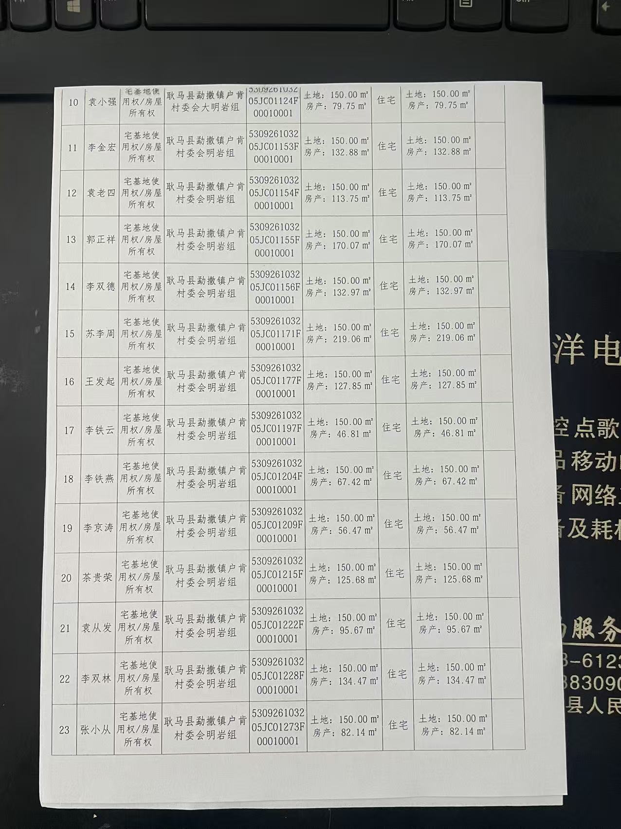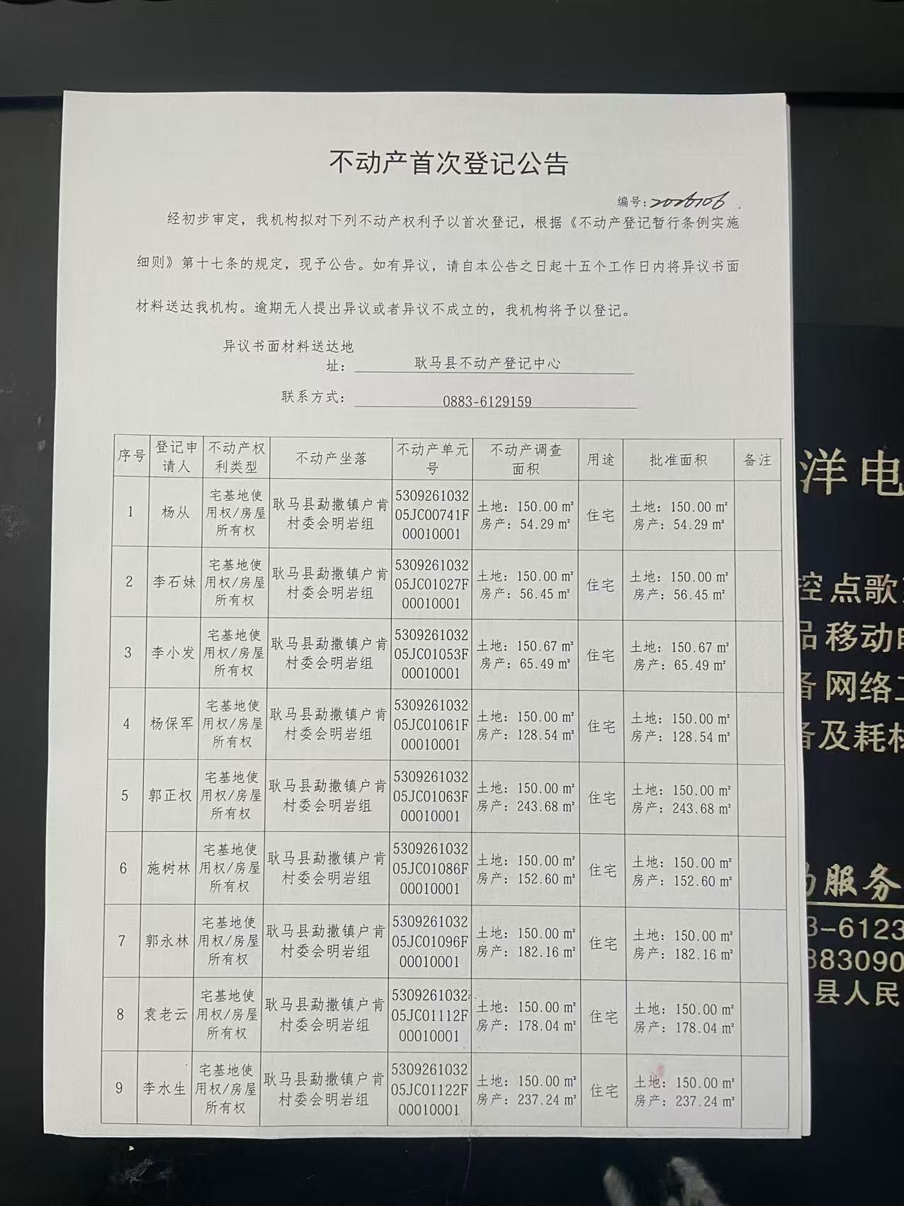 不动产首次登记公告(勐撒镇户肯村明岩组39户)