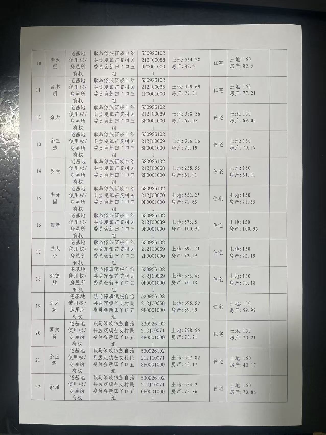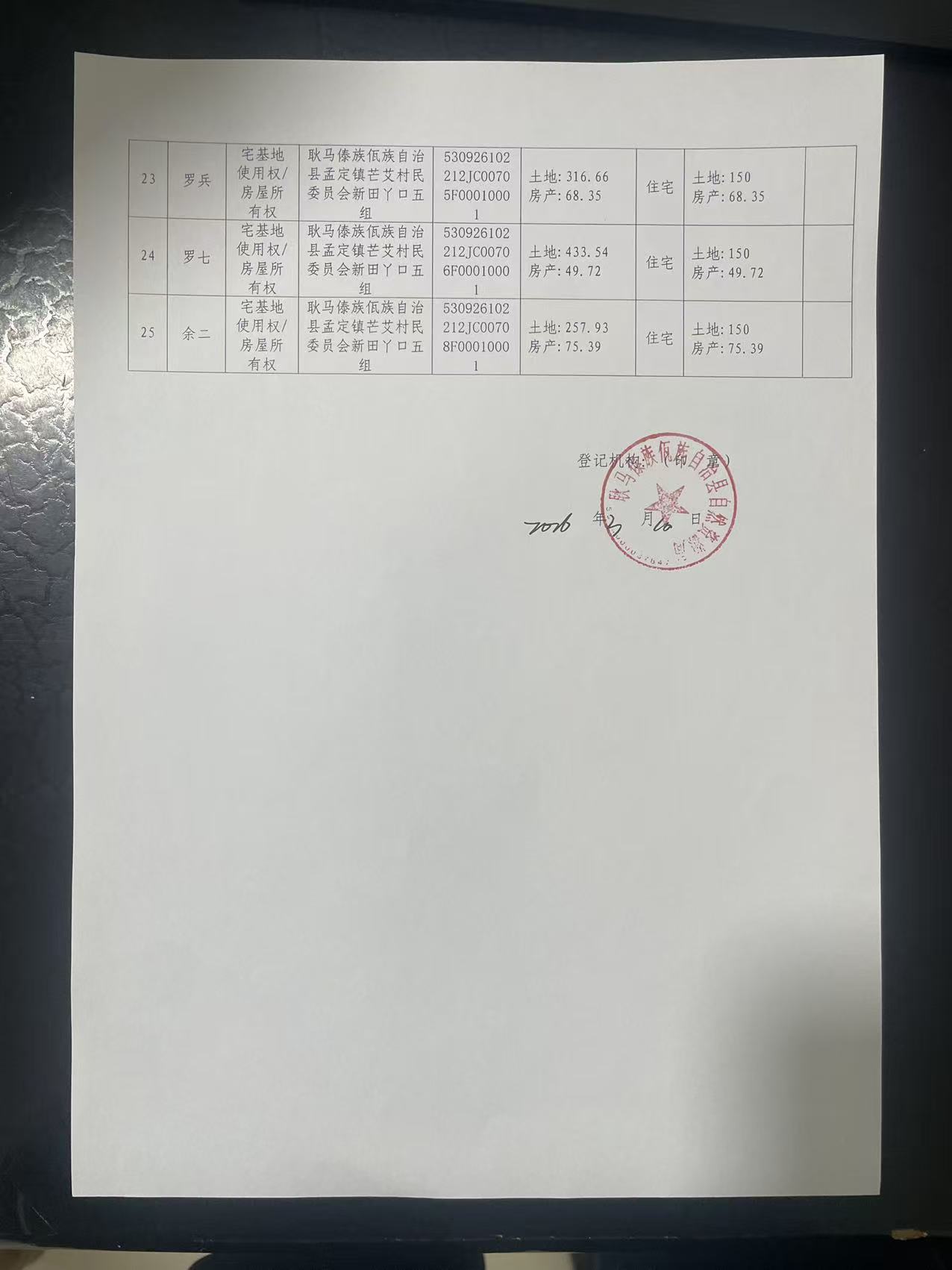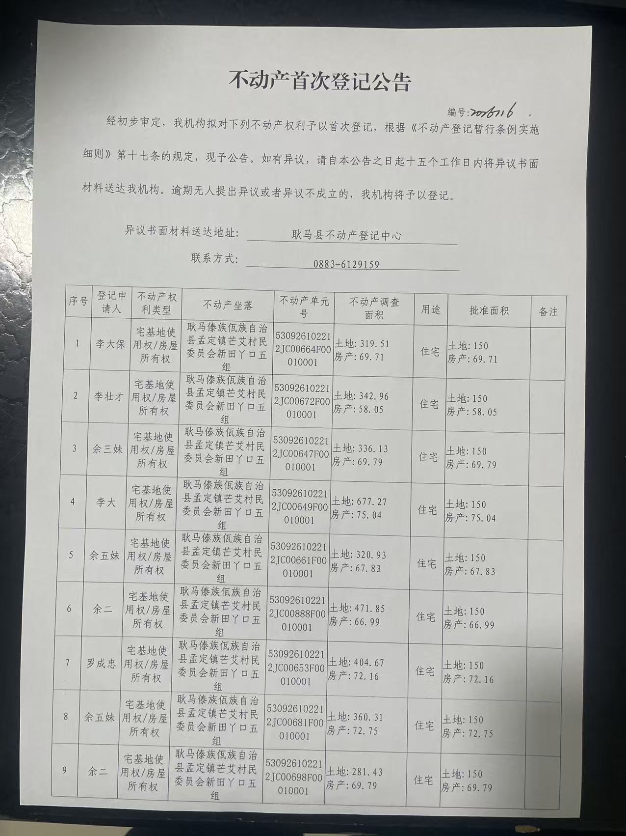 不动产首次登记公告(孟定镇芒艾村新田丫口五组25户)