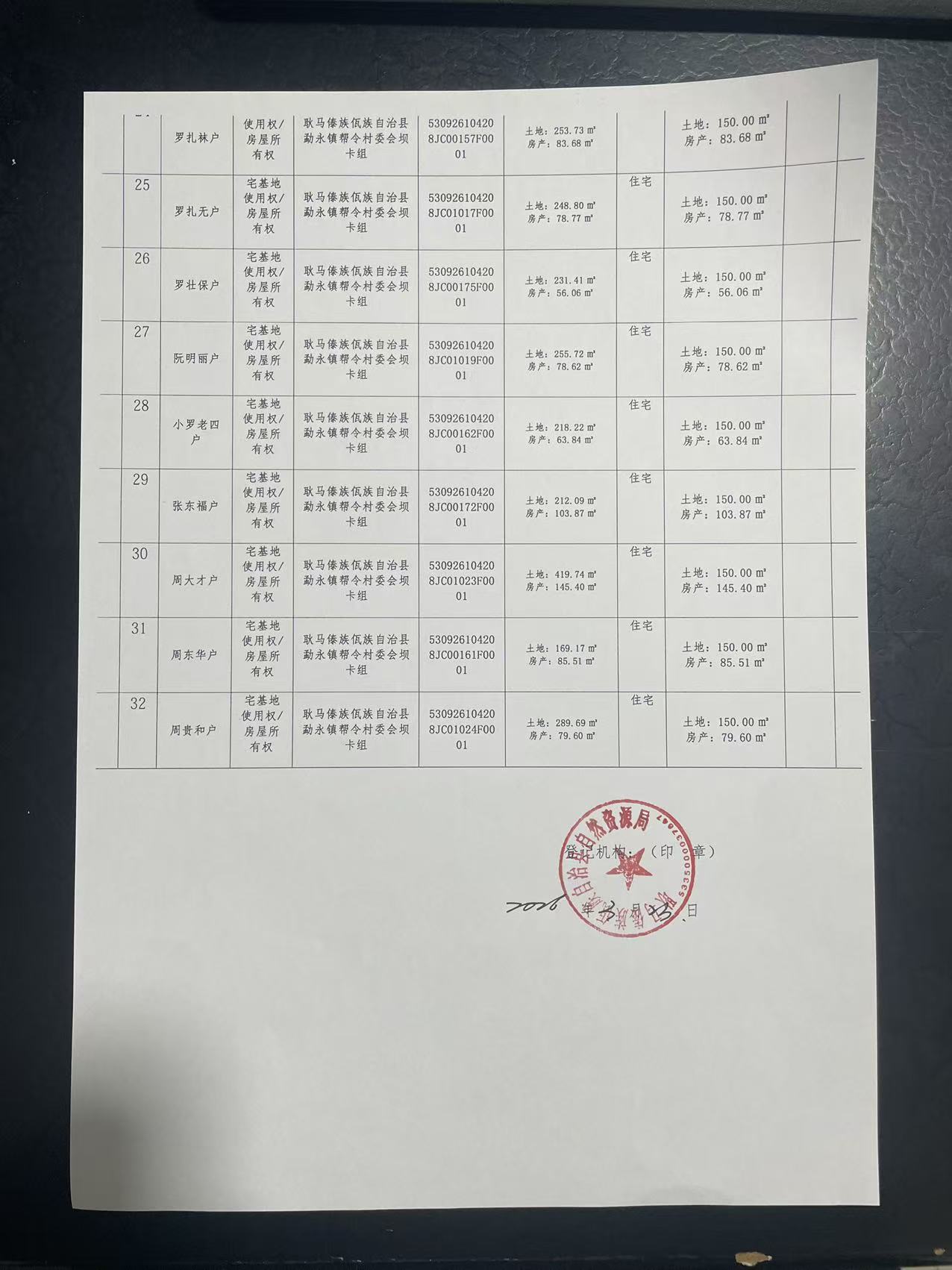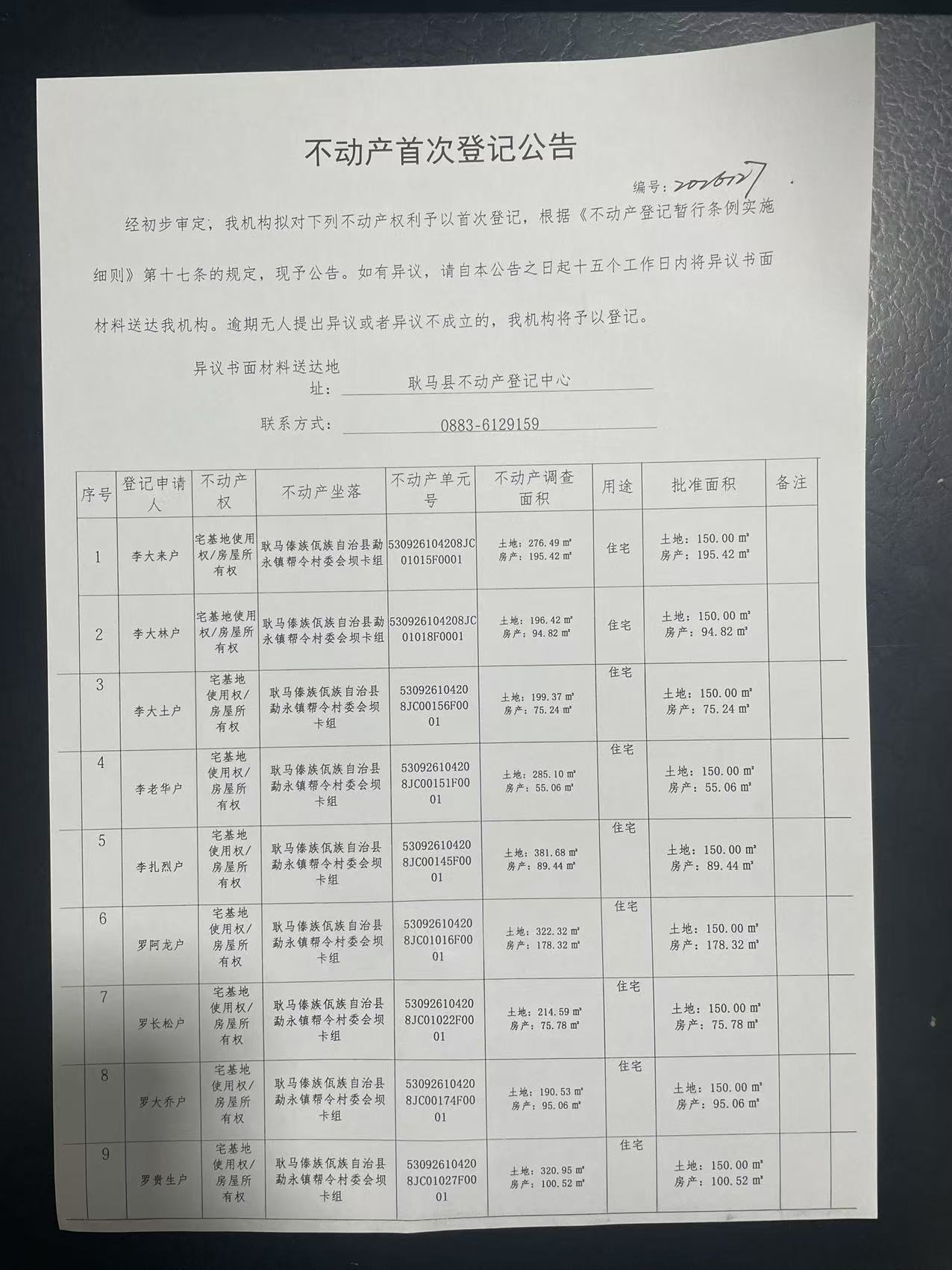 不动产首次登记公告(勐永镇帮令村坝卡组32户)