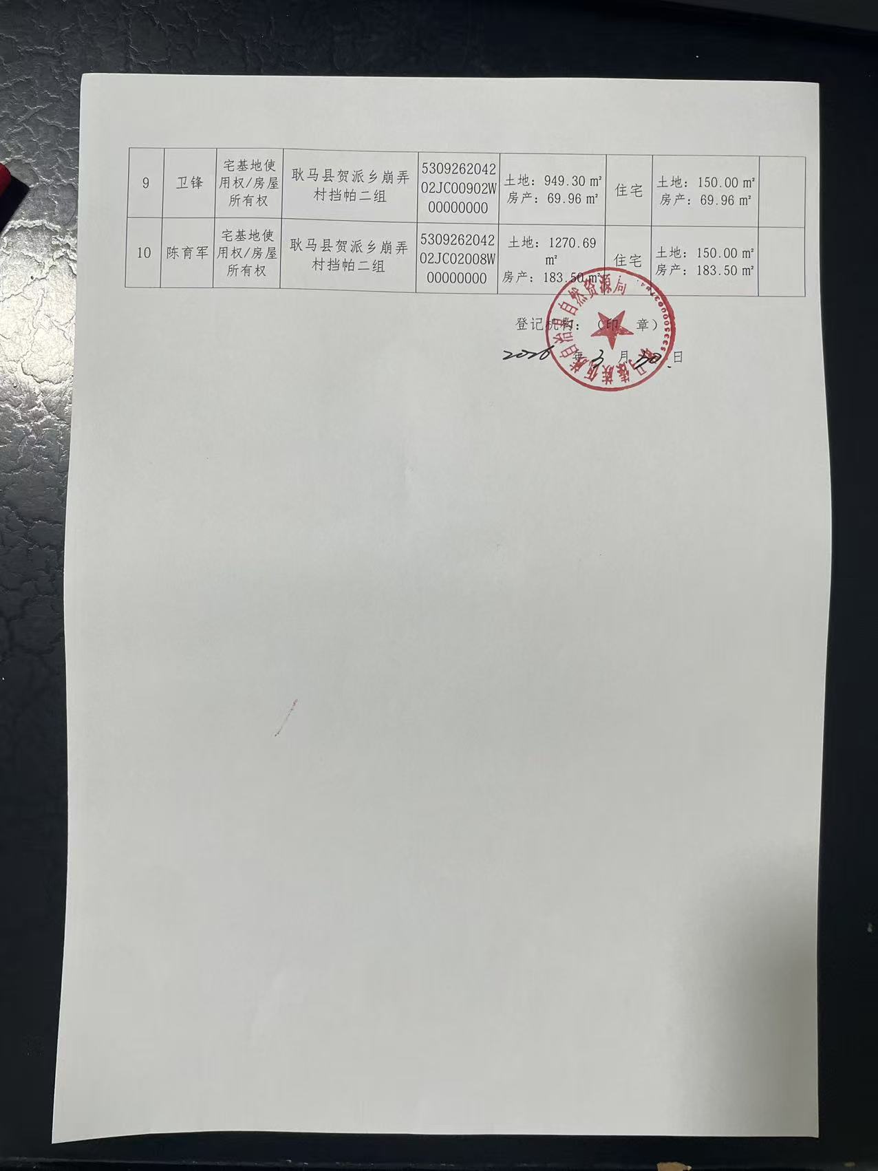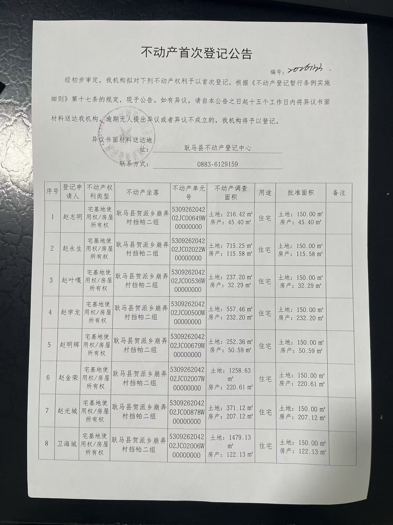 不动产首次登记公告(贺派乡崩弄村挡帕二组10户)