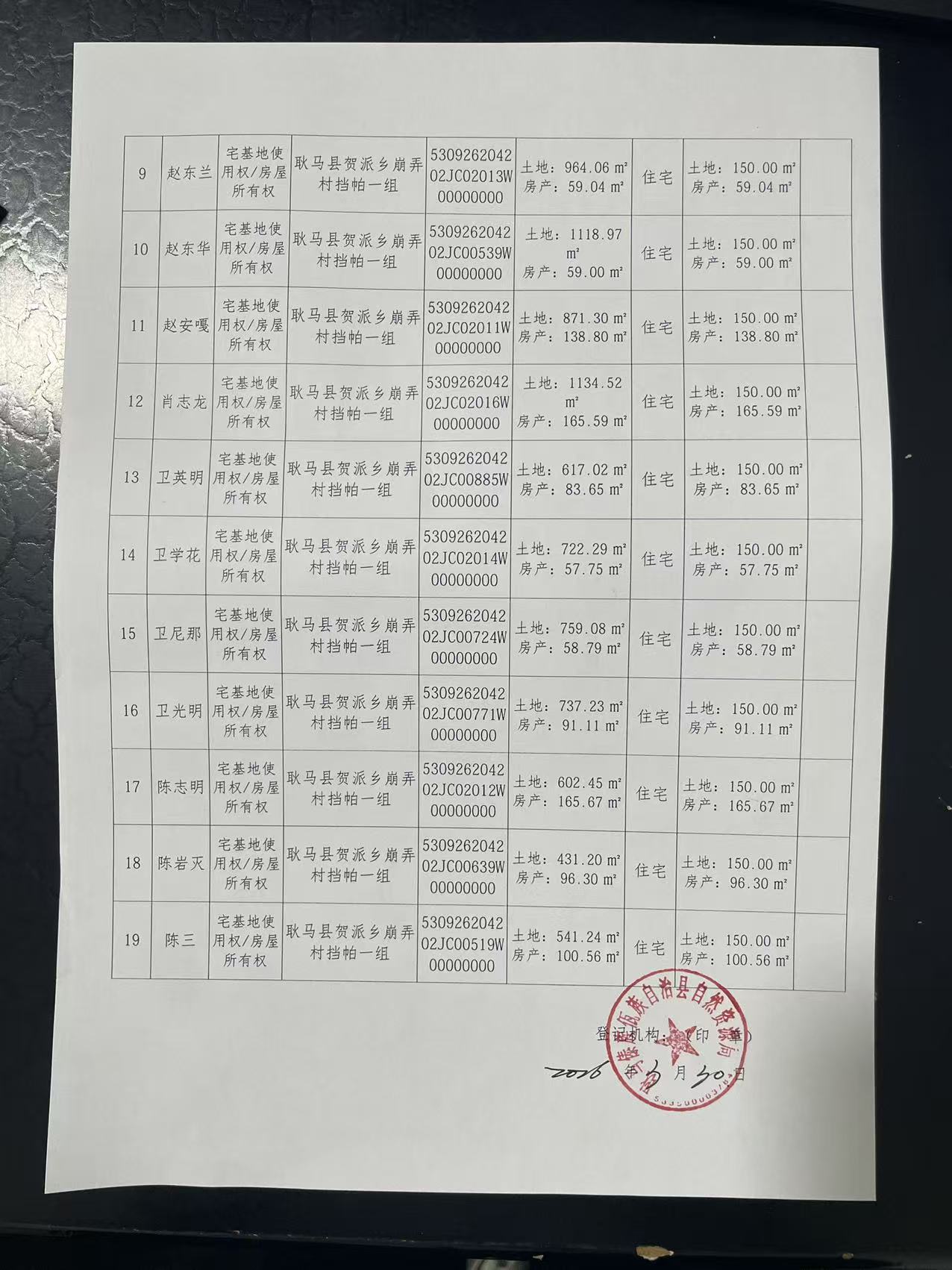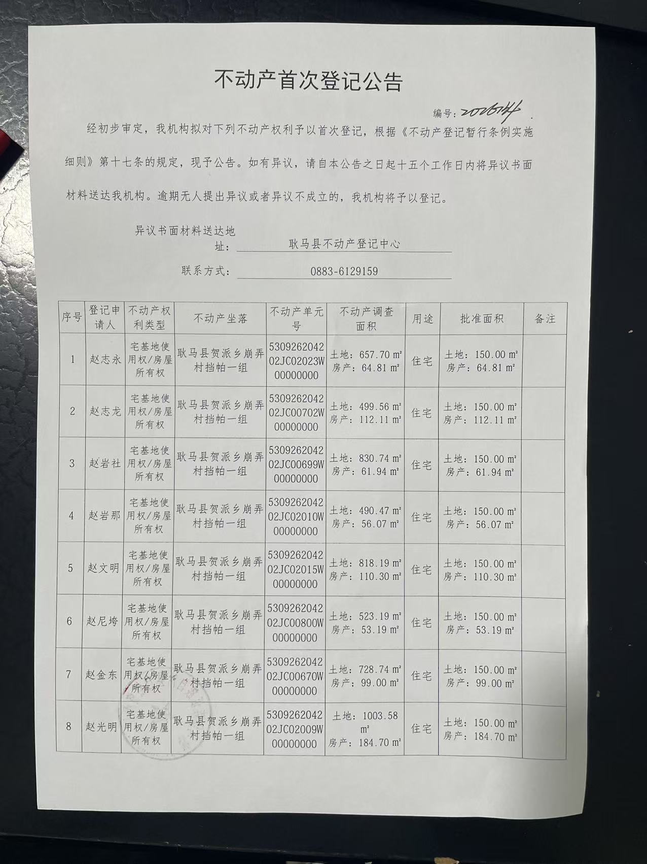 不动产首次登记公告(贺派乡崩弄村挡帕一组19户)