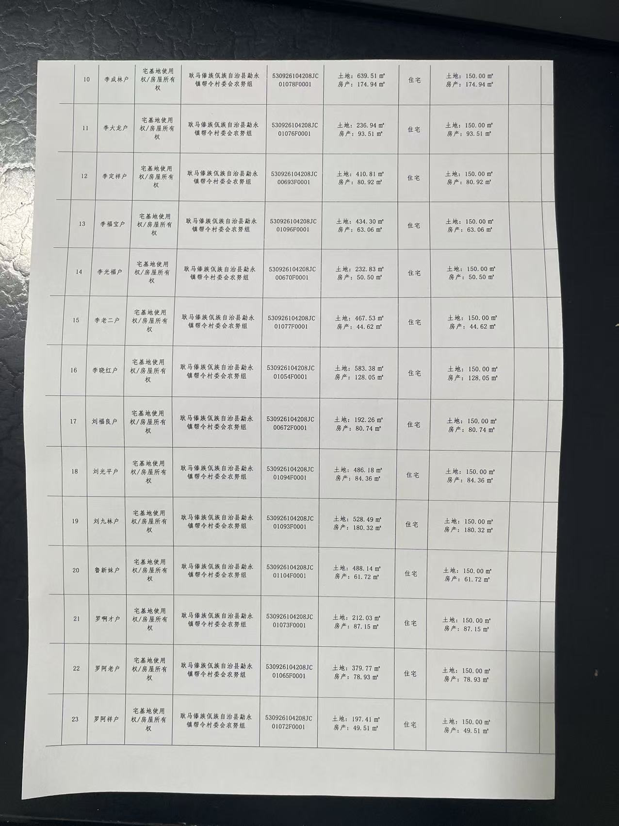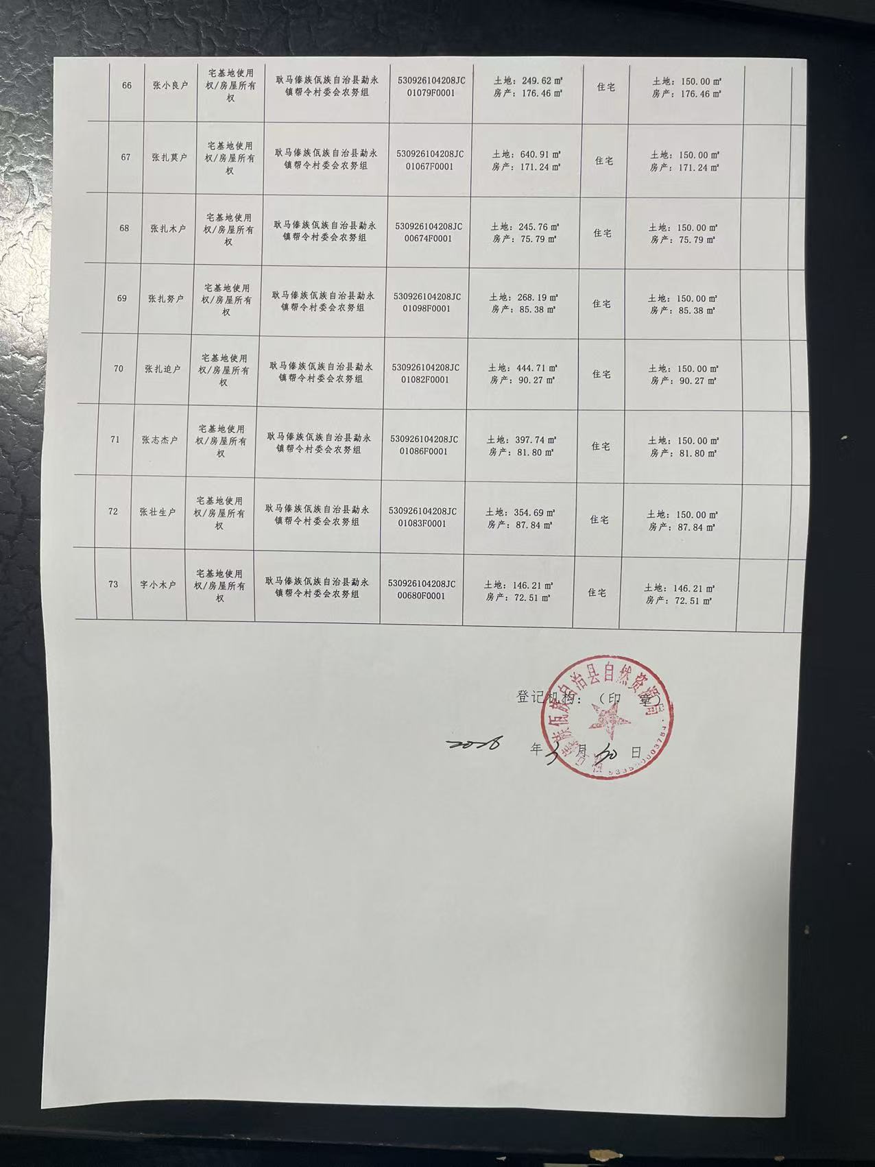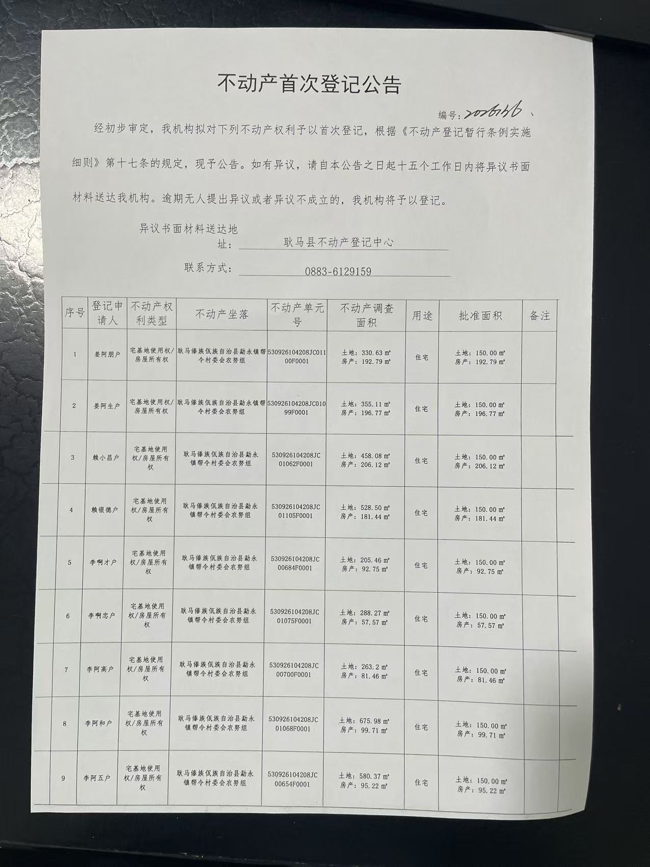 不动产首次登记公告(勐永镇帮令村农努组73户)