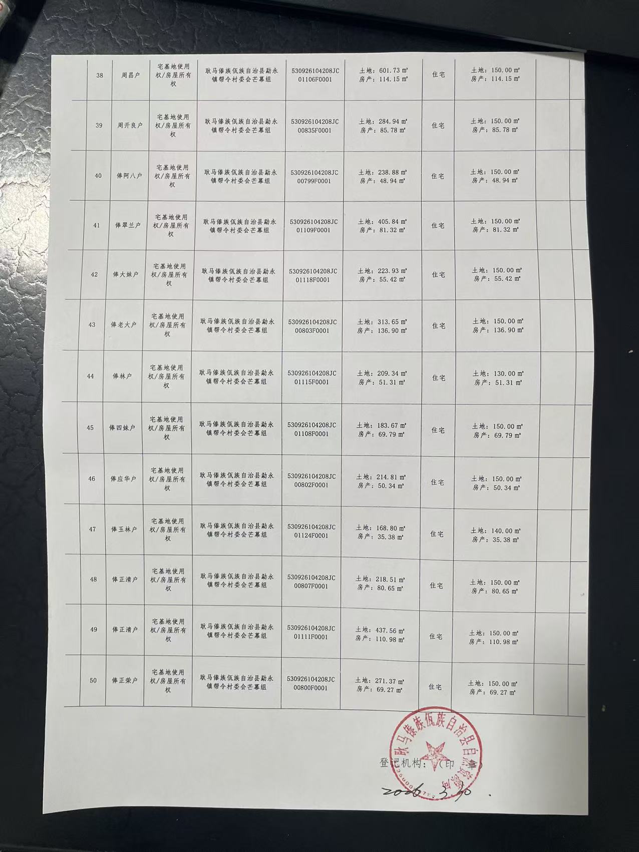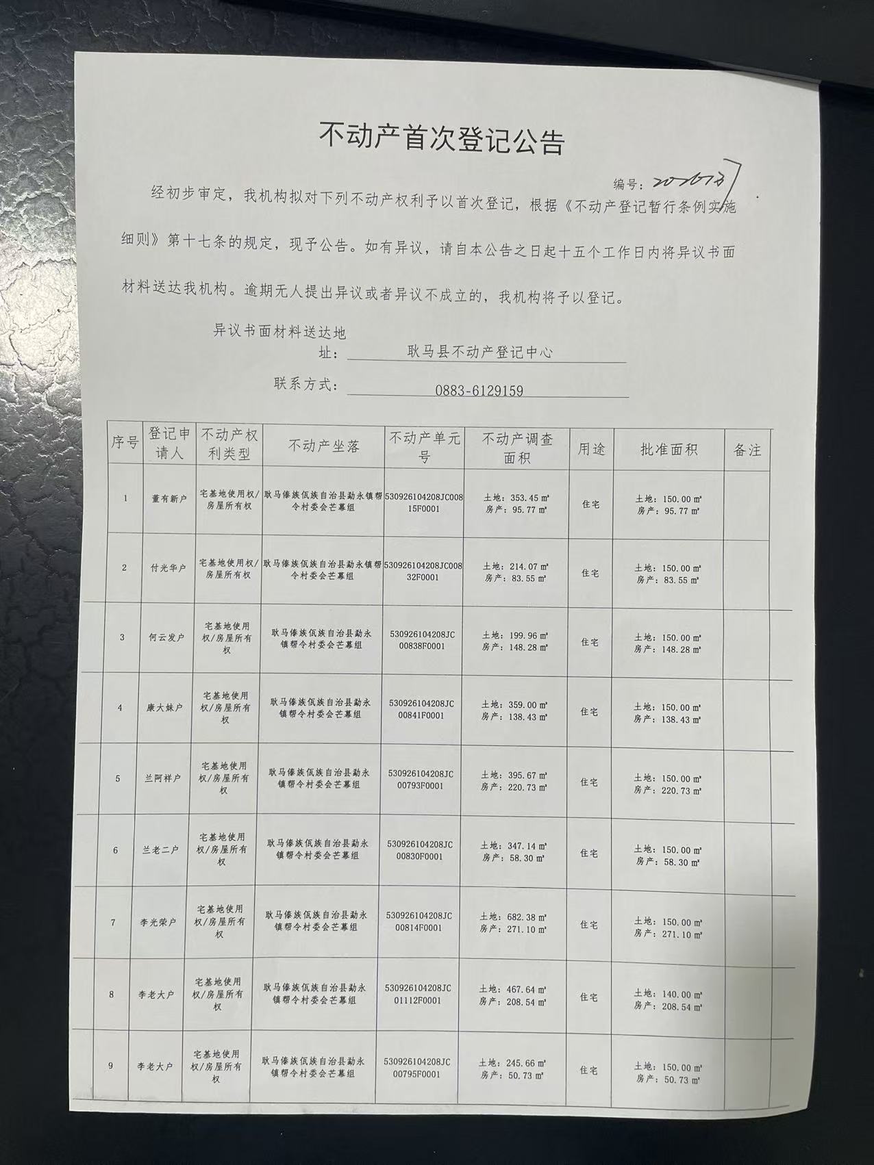 不动产首次登记公告(勐永镇帮令村芒幕组50户)