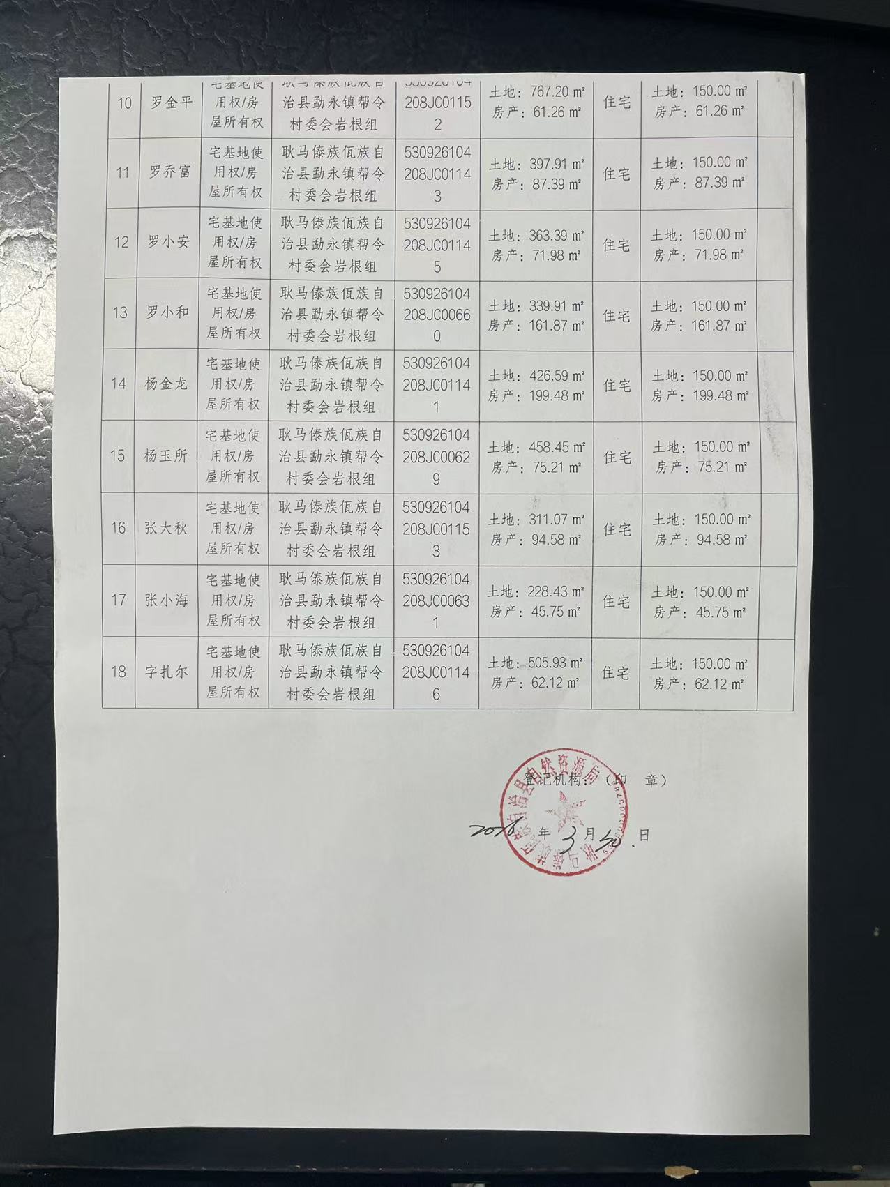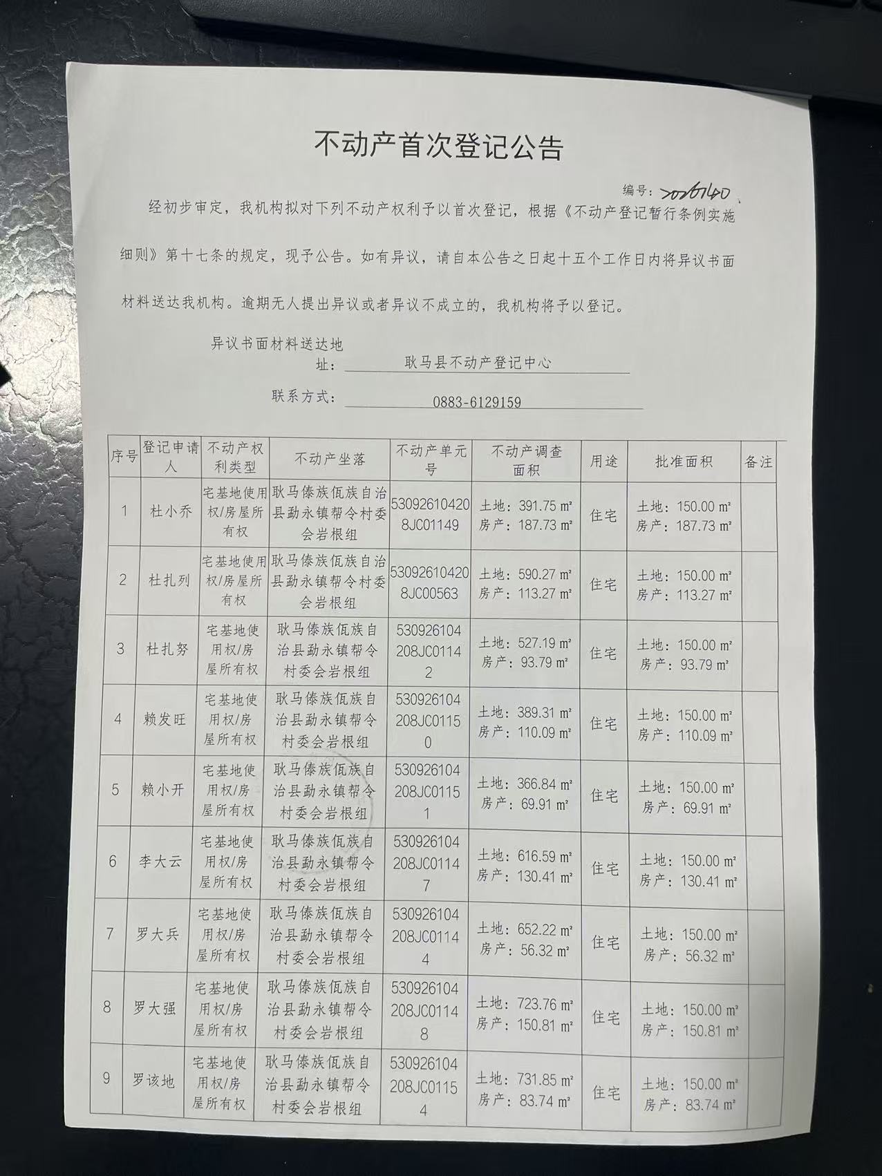 不动产首次登记公告(勐永镇帮令村岩根组18户)