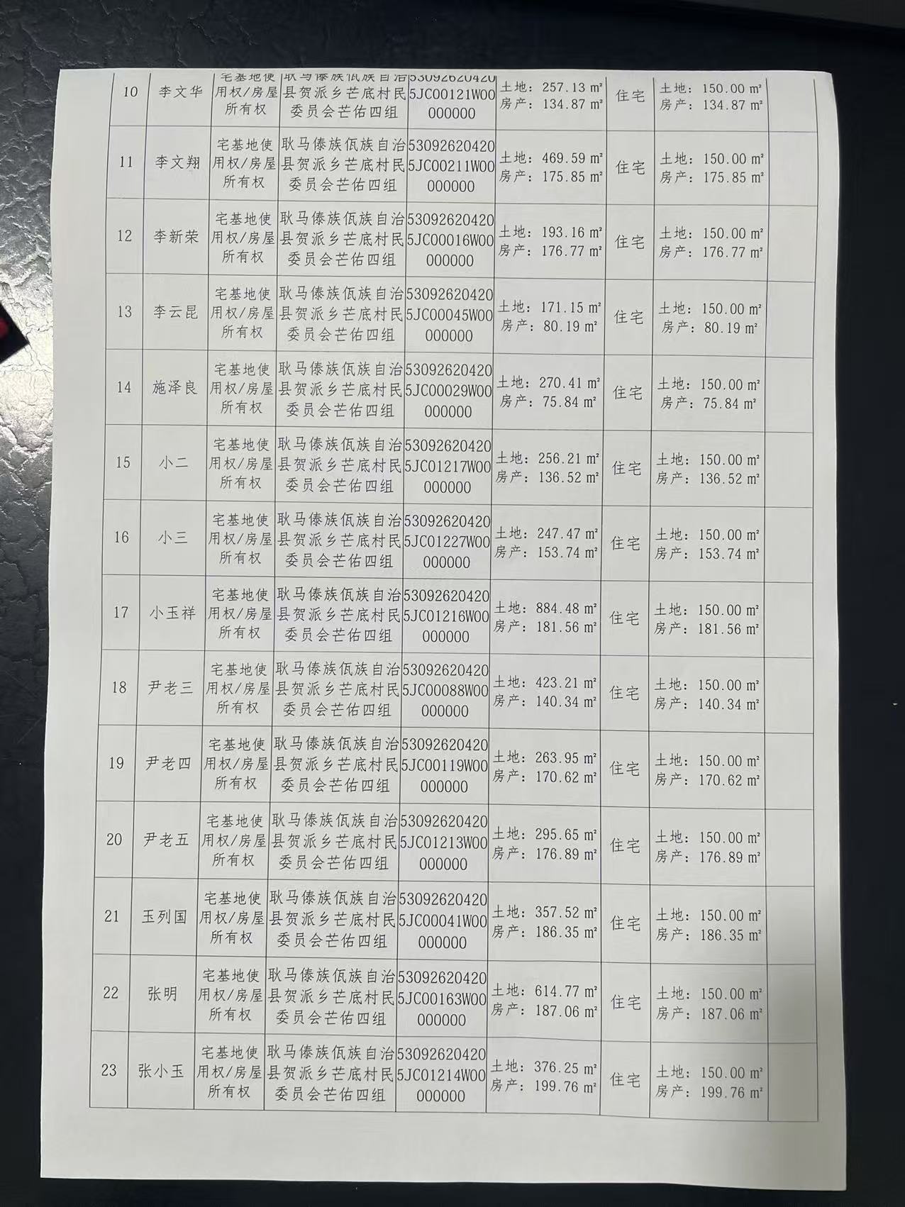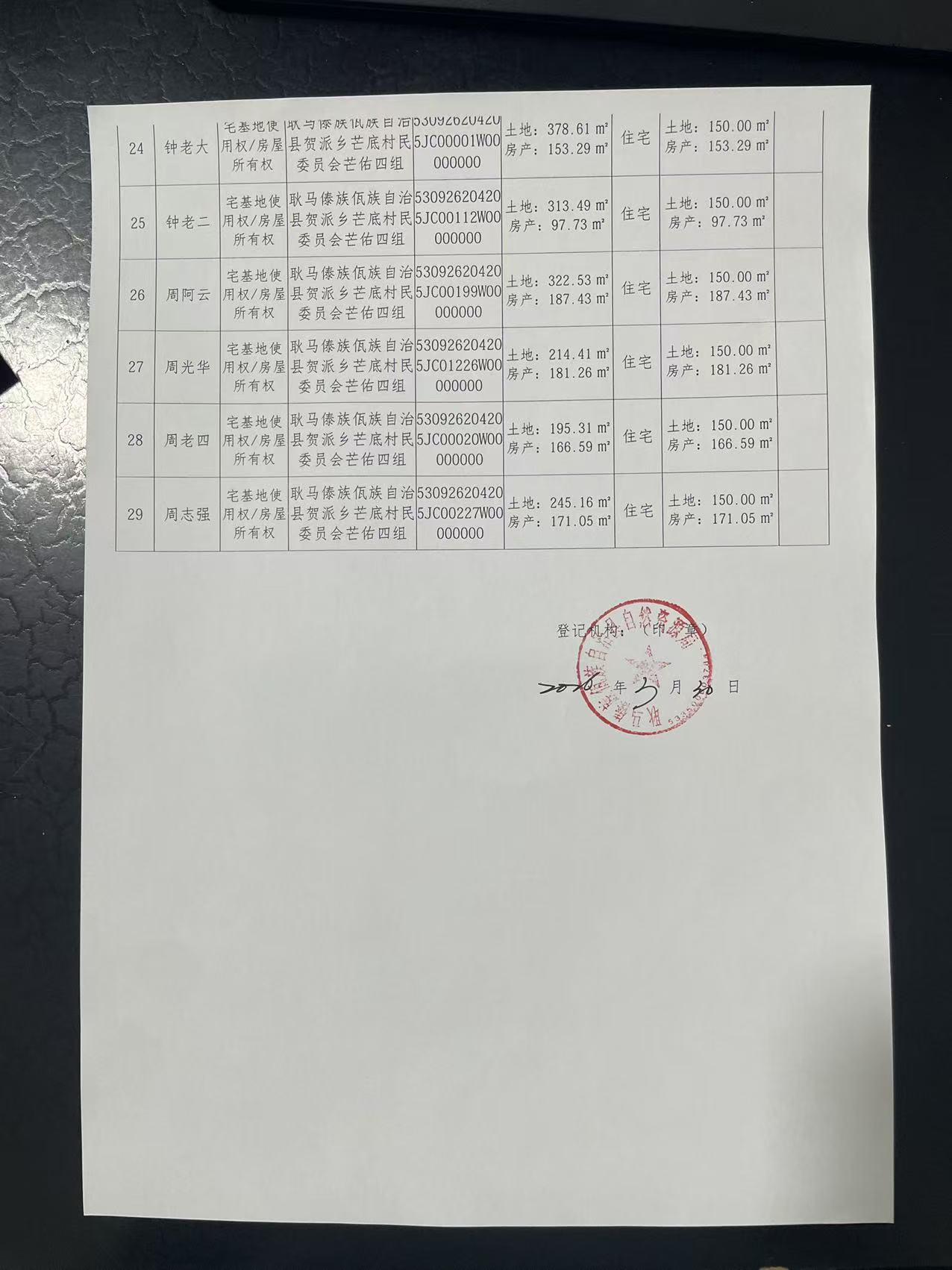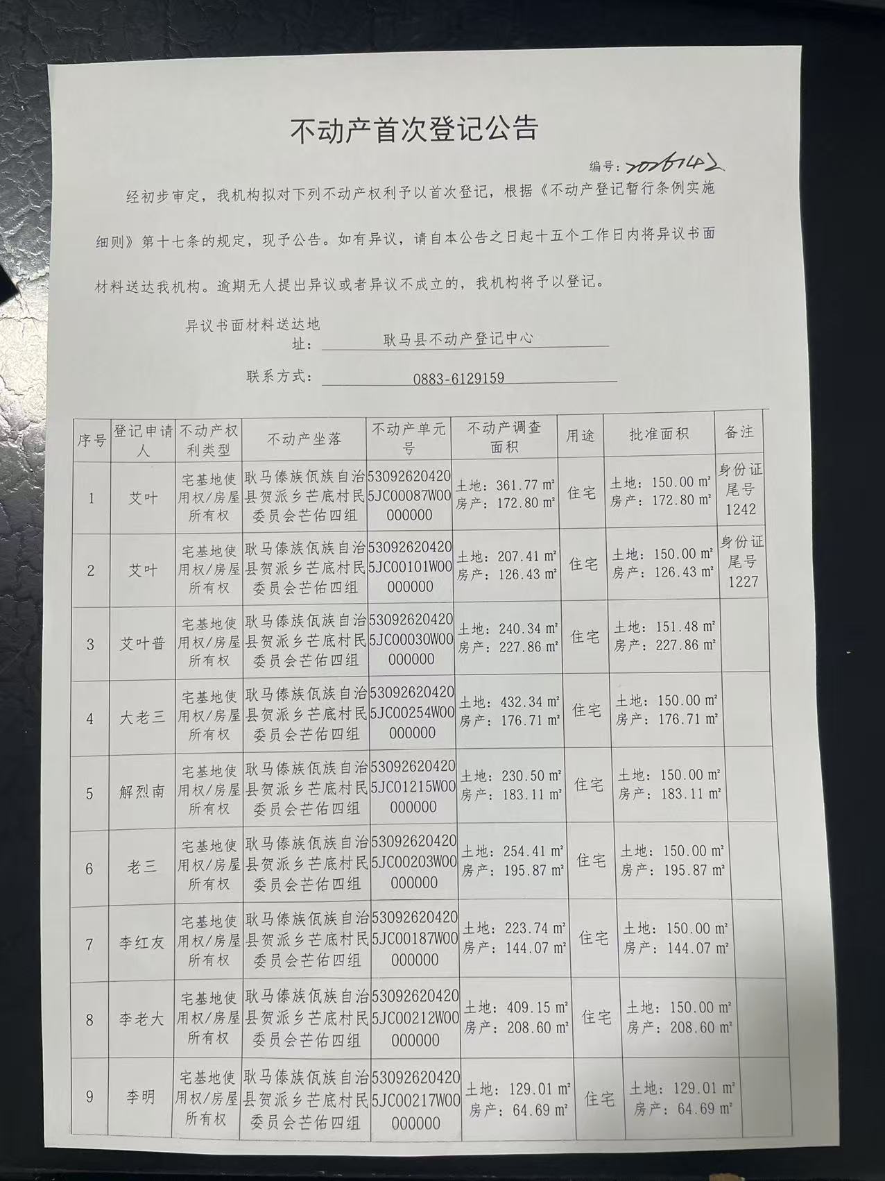 不动产首次登记公告(贺派乡芒底村芒佑四组29户)