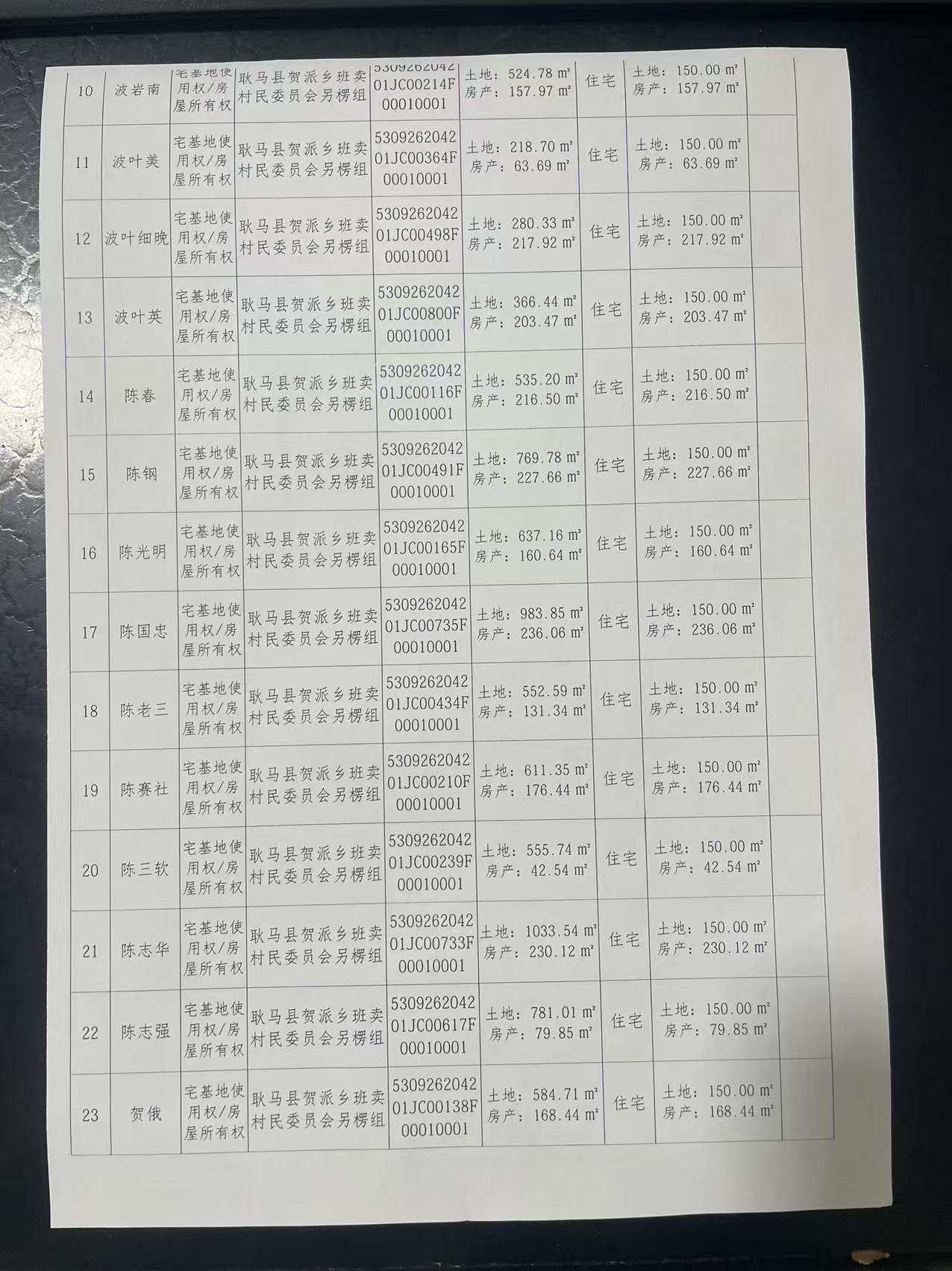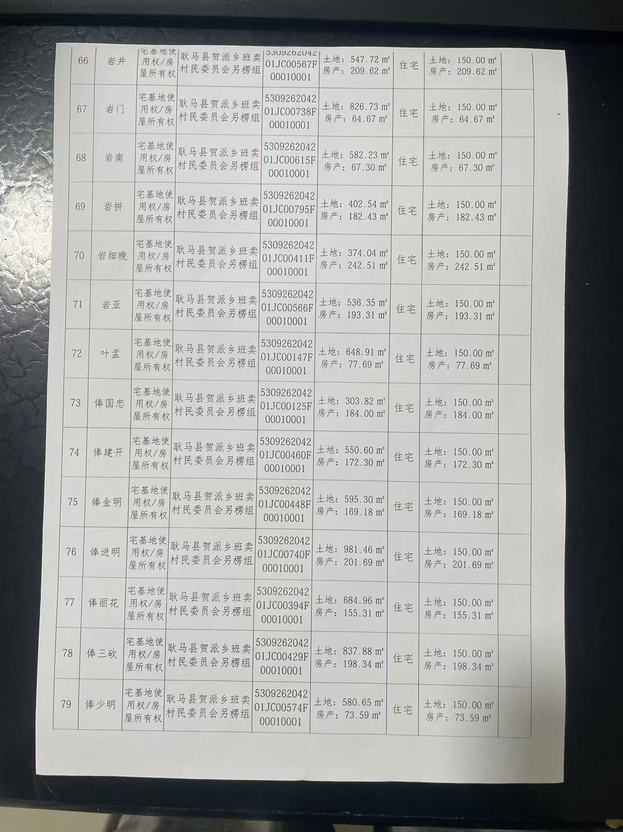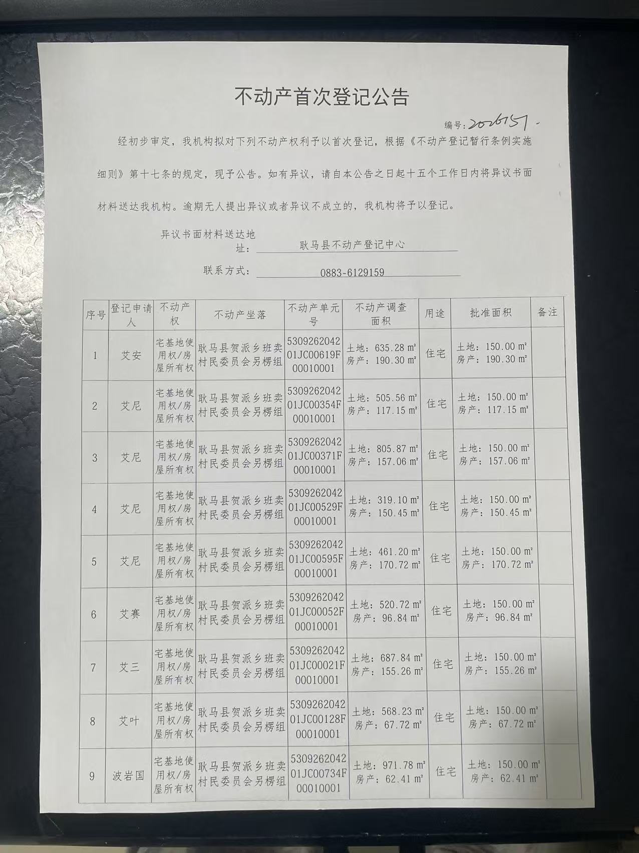 不动产首次登记公告(贺派乡班卖村另楞组83户)