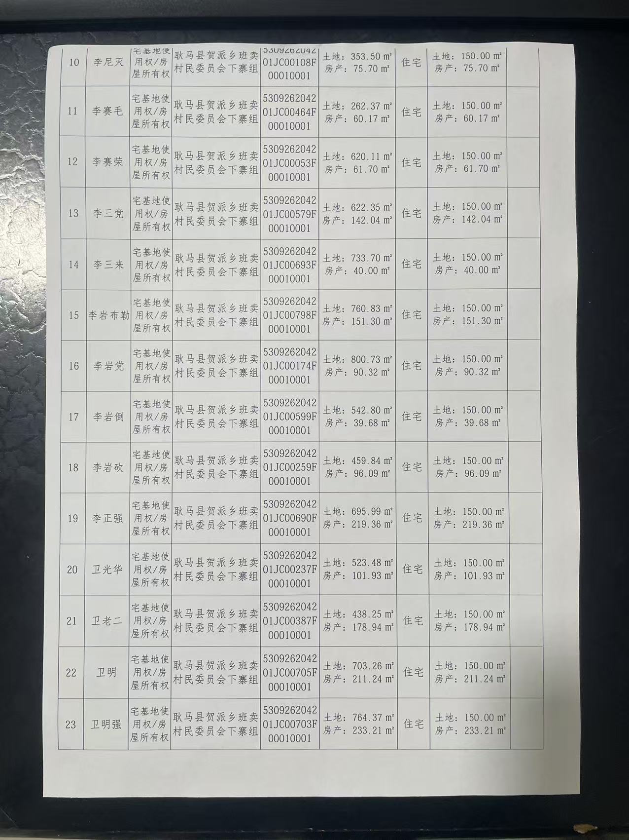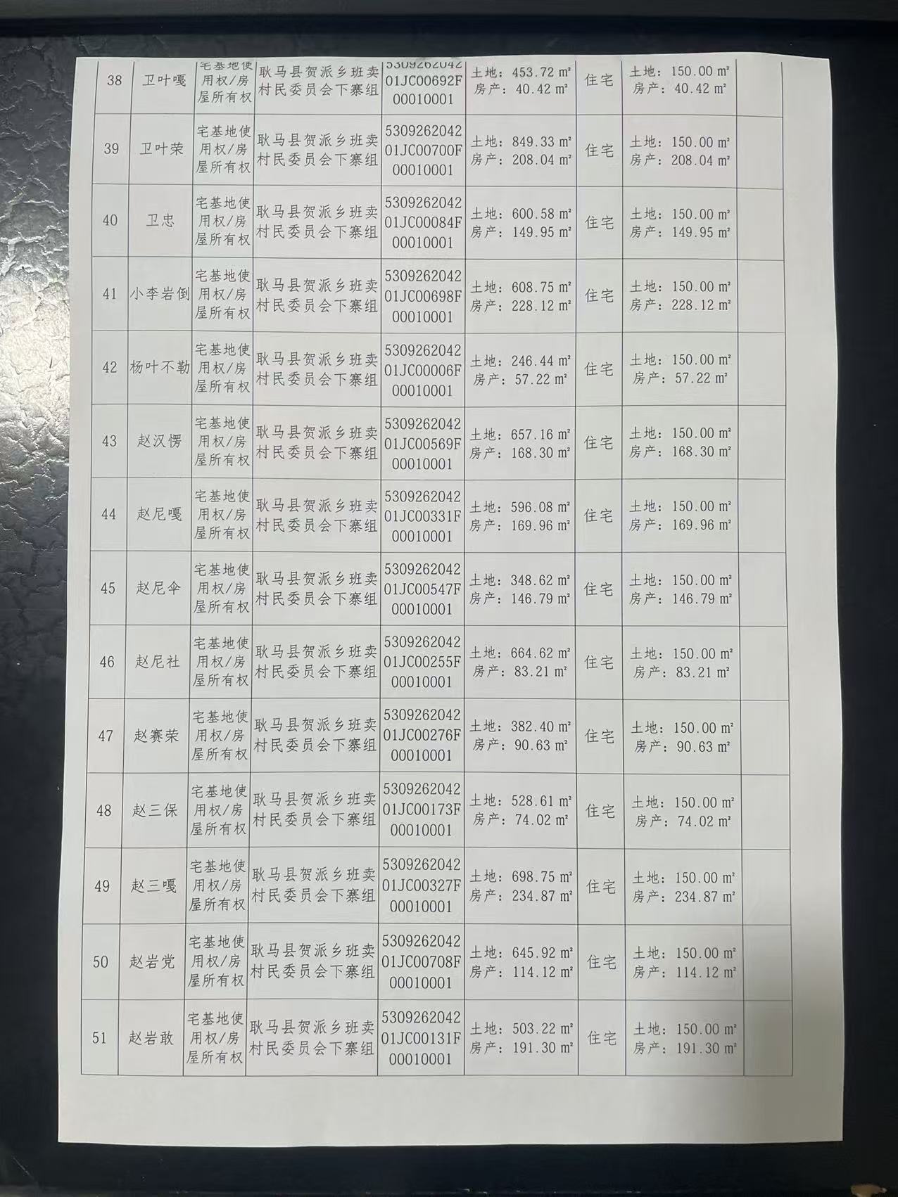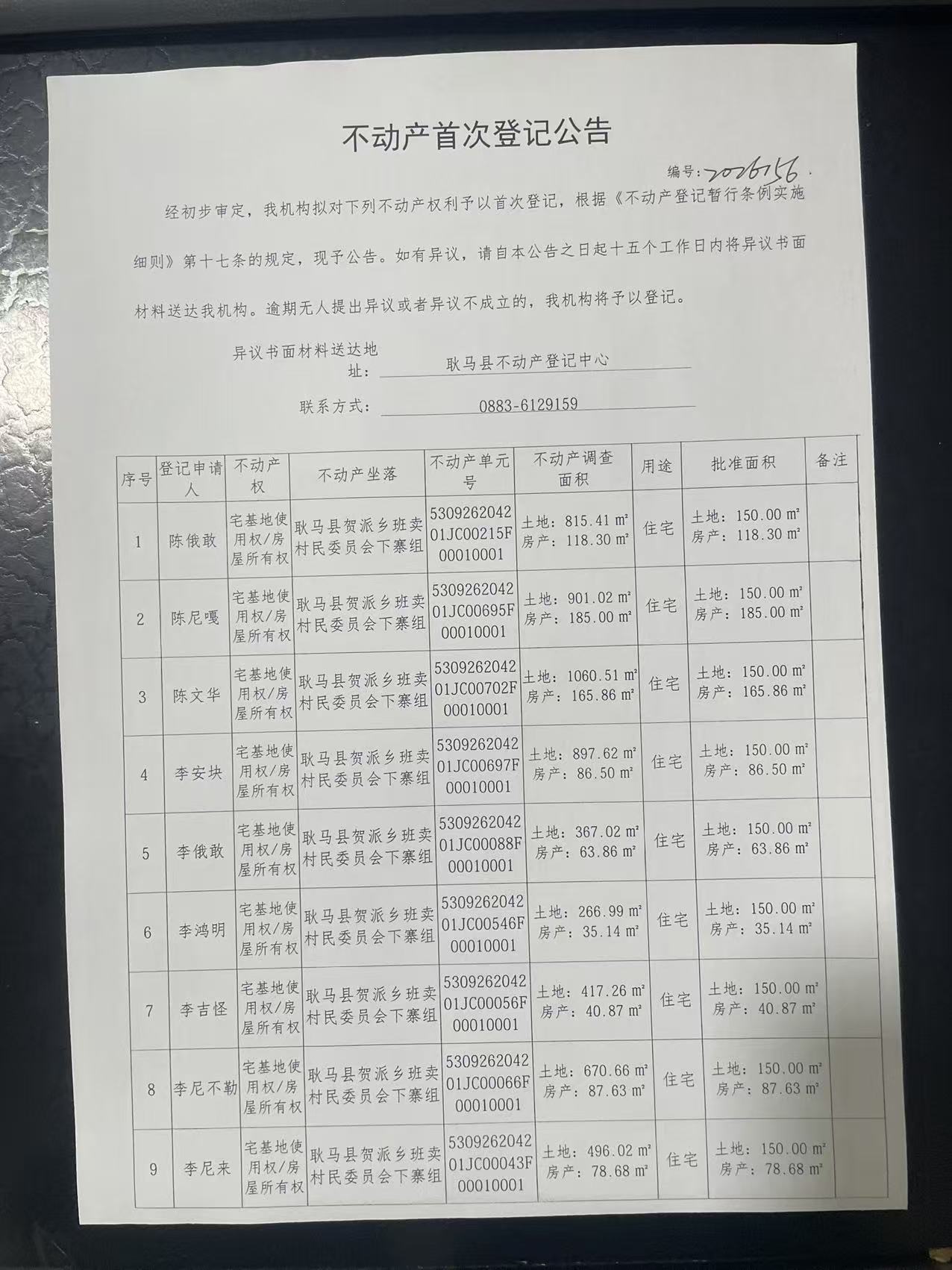 不动产首次登记公告(贺派乡班卖村下寨组54户)