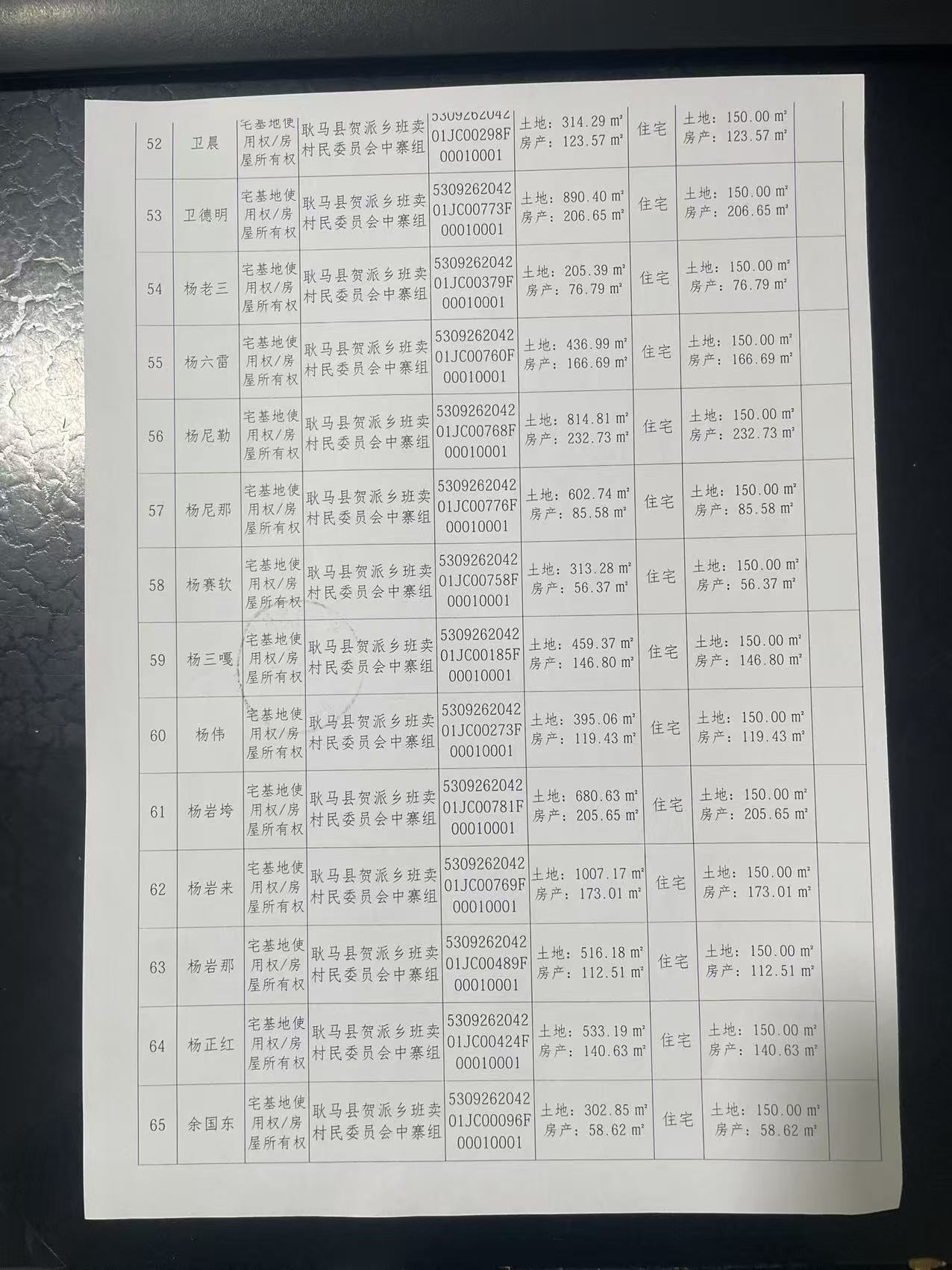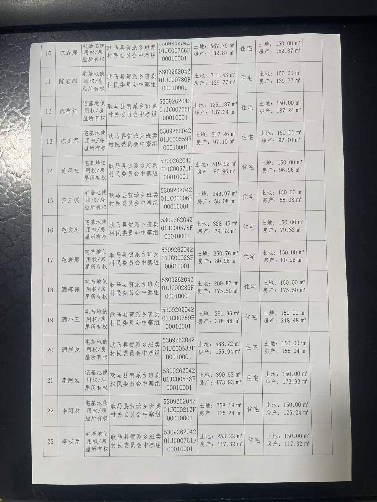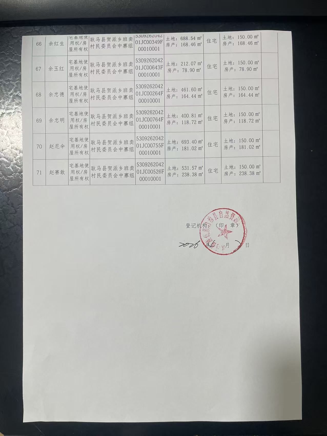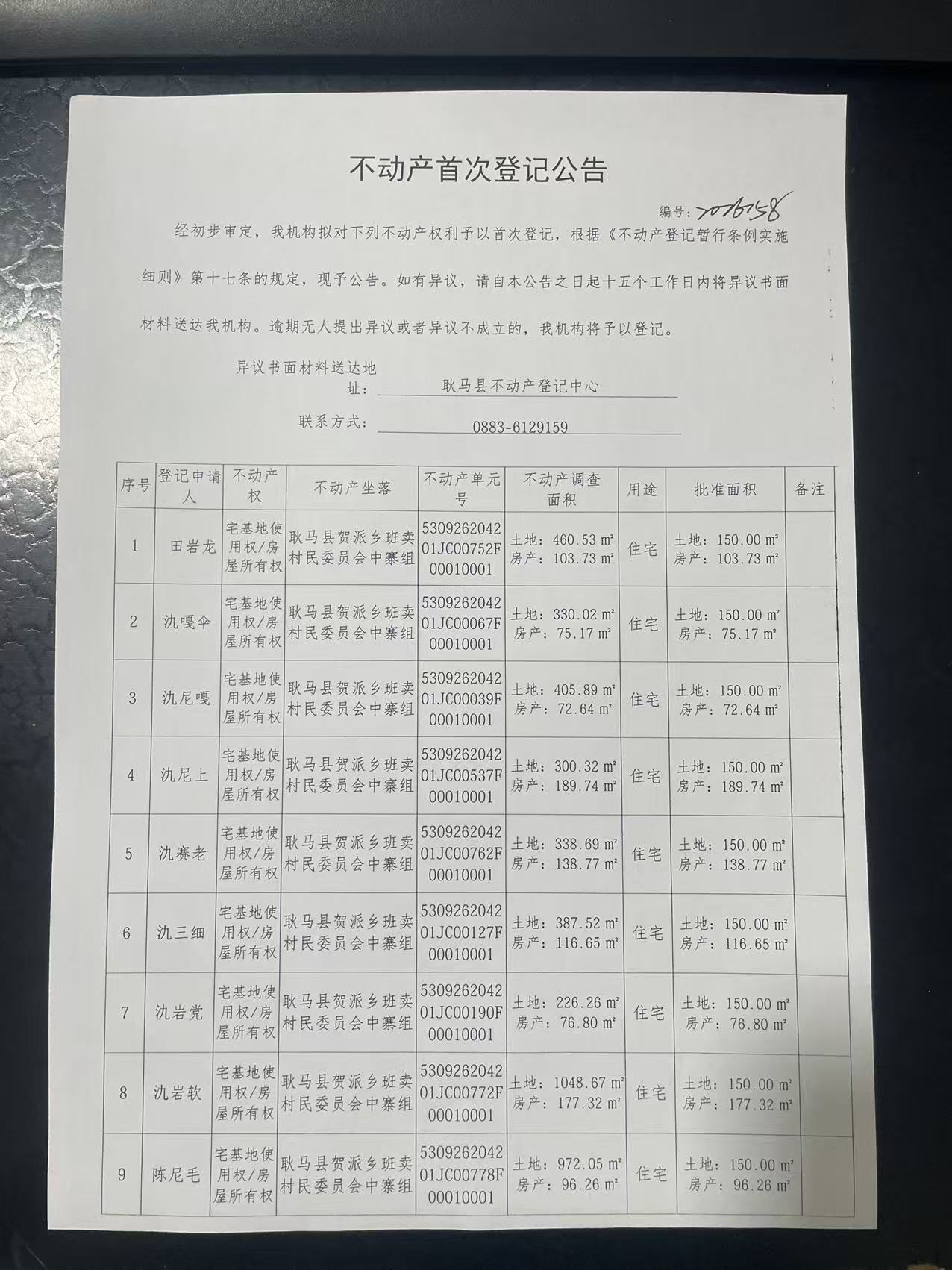 不动产首次登记公告(贺派乡班卖村中寨组71户)