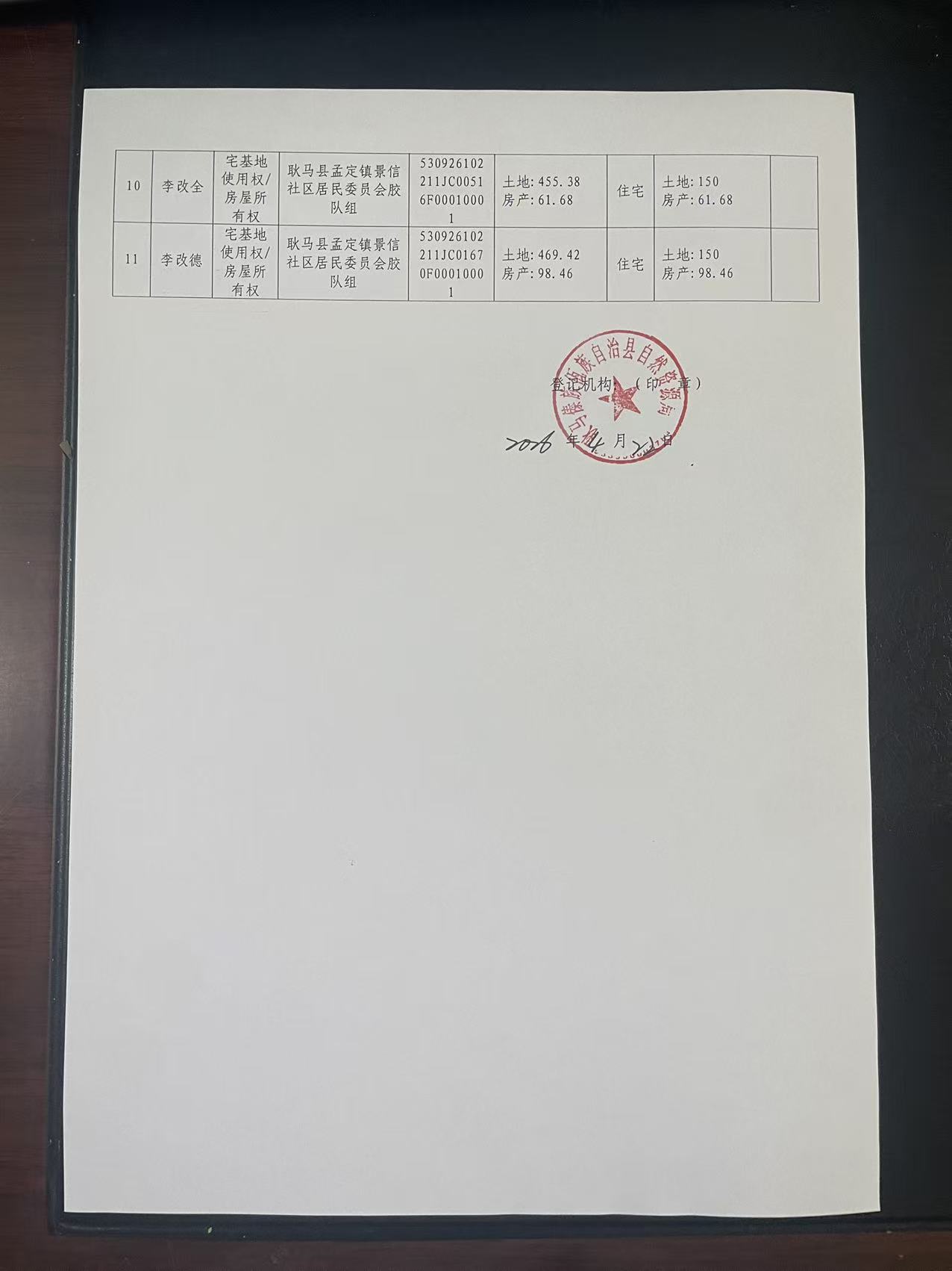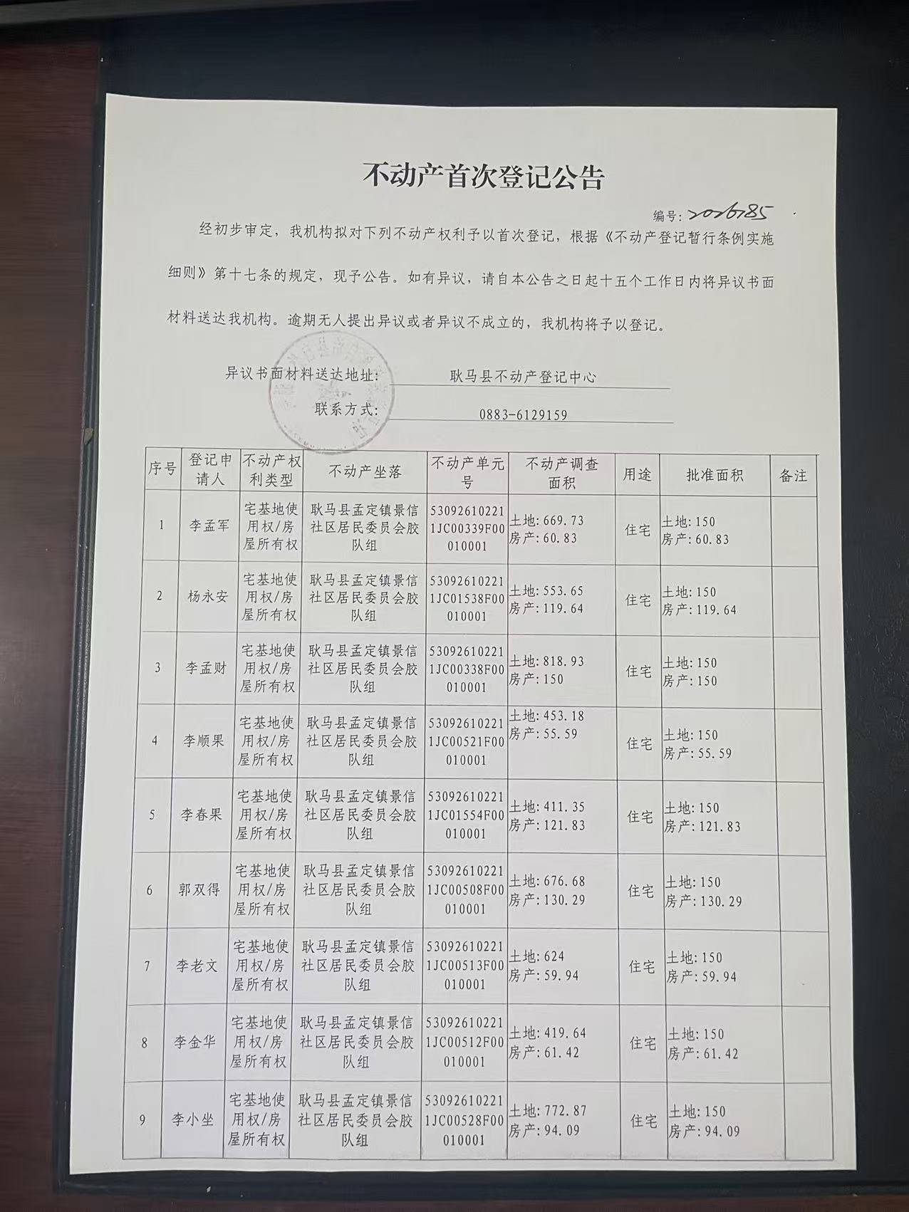 不动产首次登记公告(孟定镇景信社区胶队组11户)