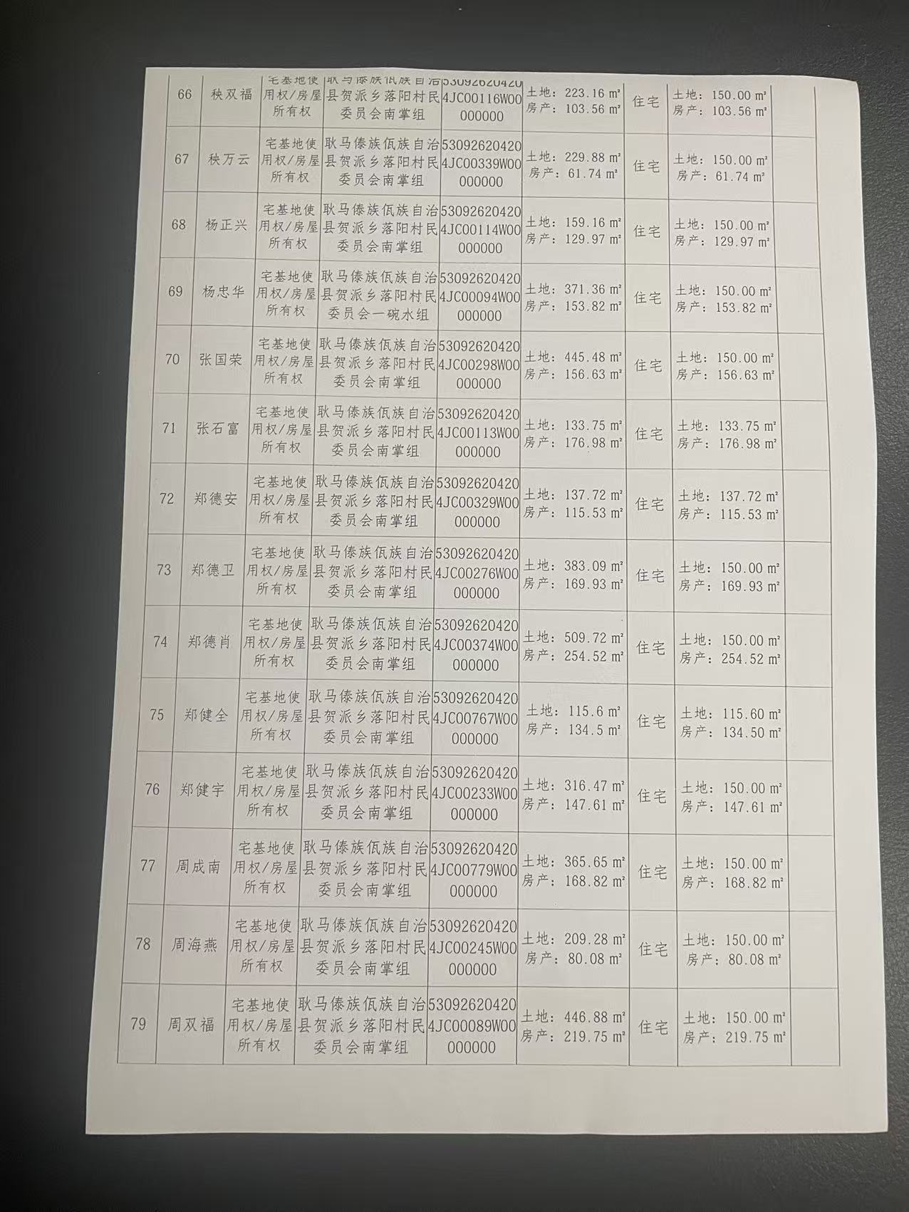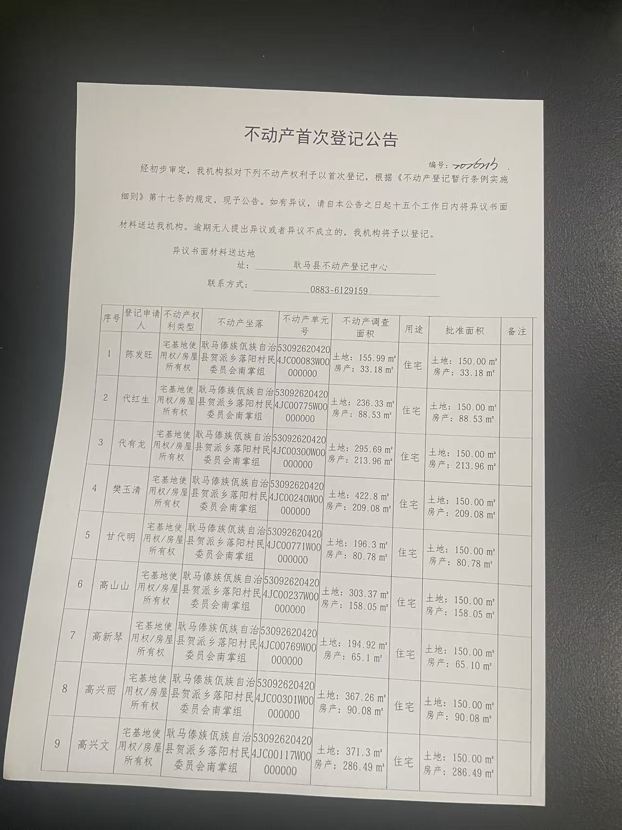 不动产首次登记公告(贺派乡落阳村南掌组80户)