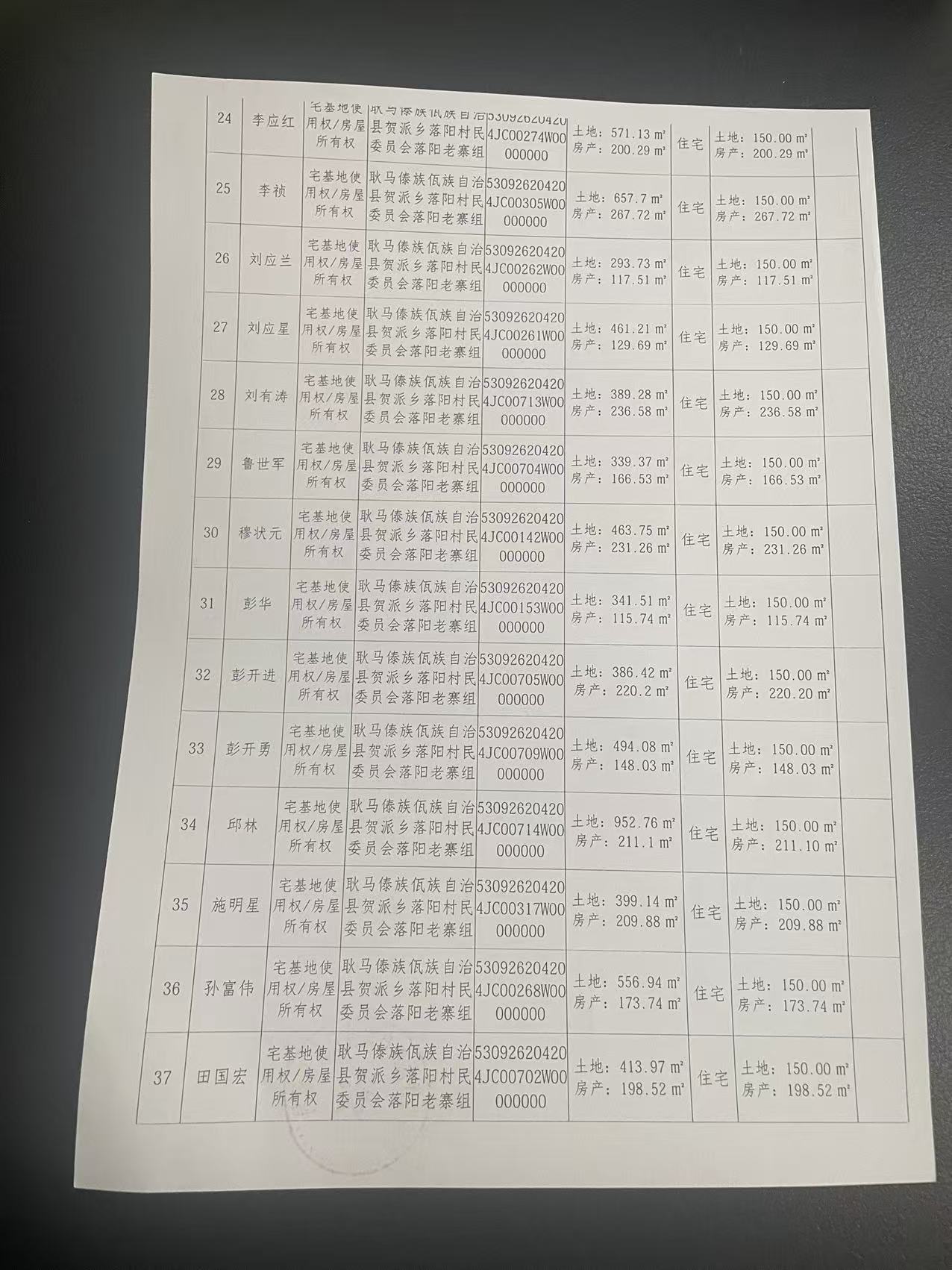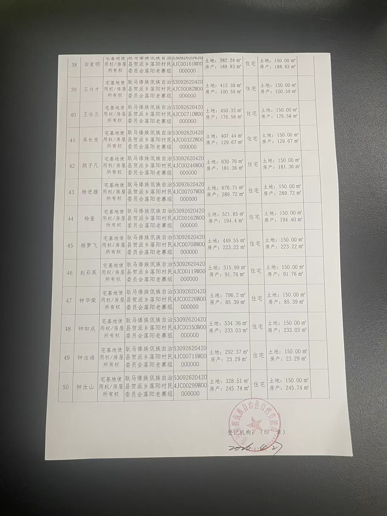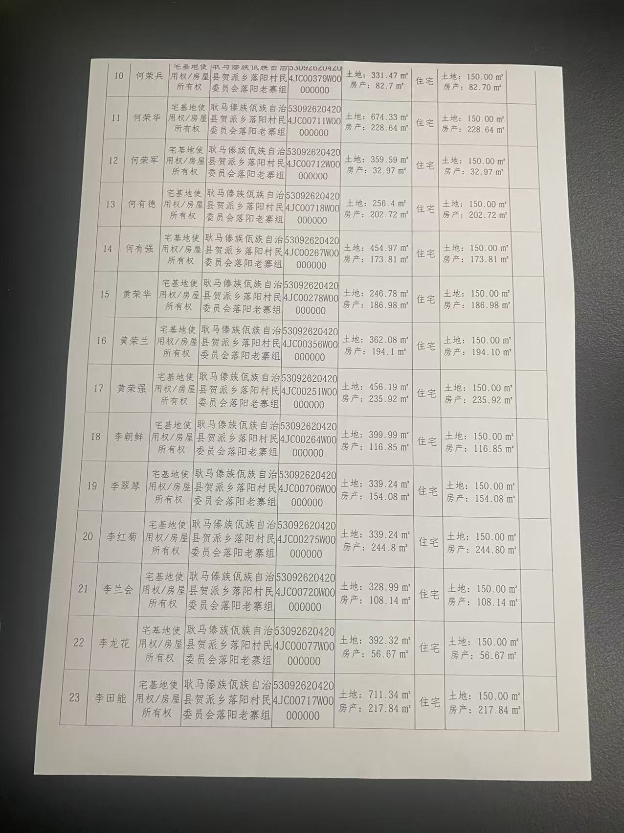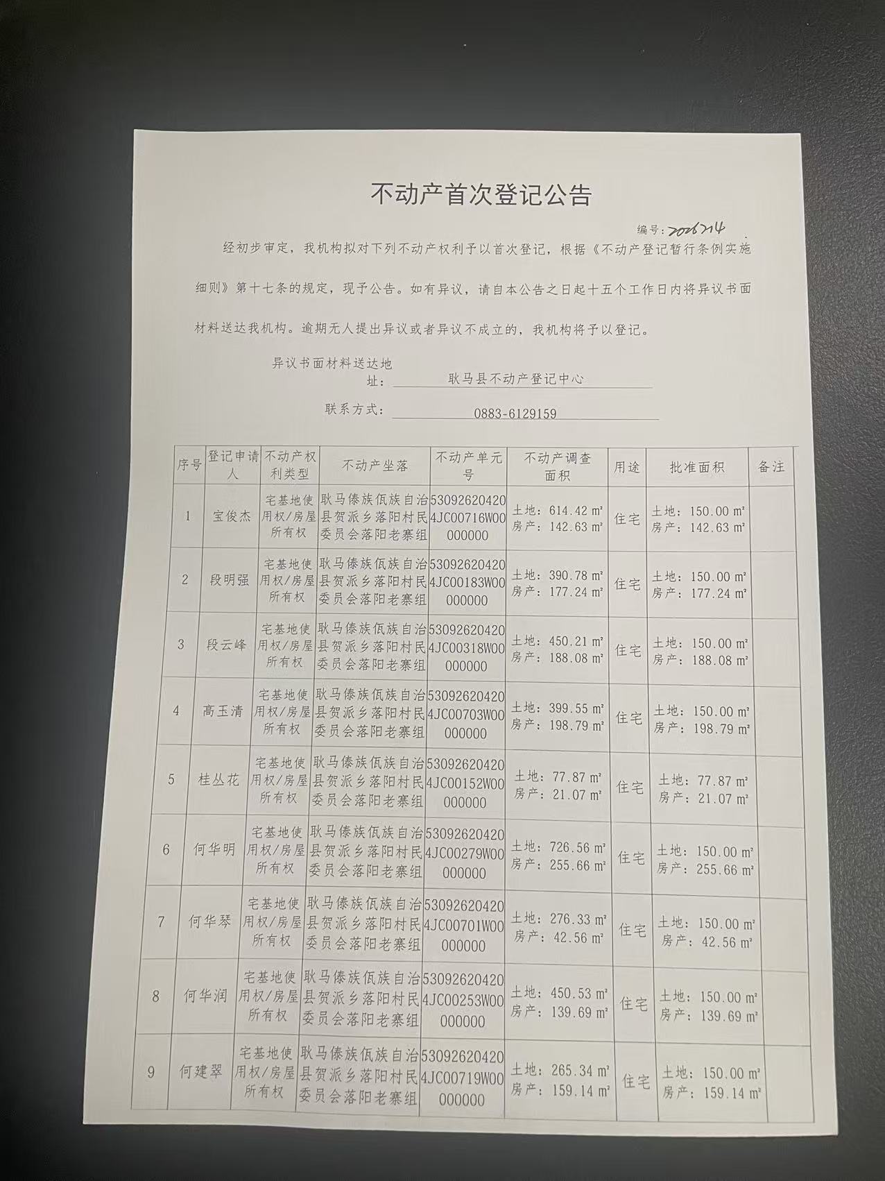 不动产首次登记公告(贺派乡落阳村落阳老寨组50户)