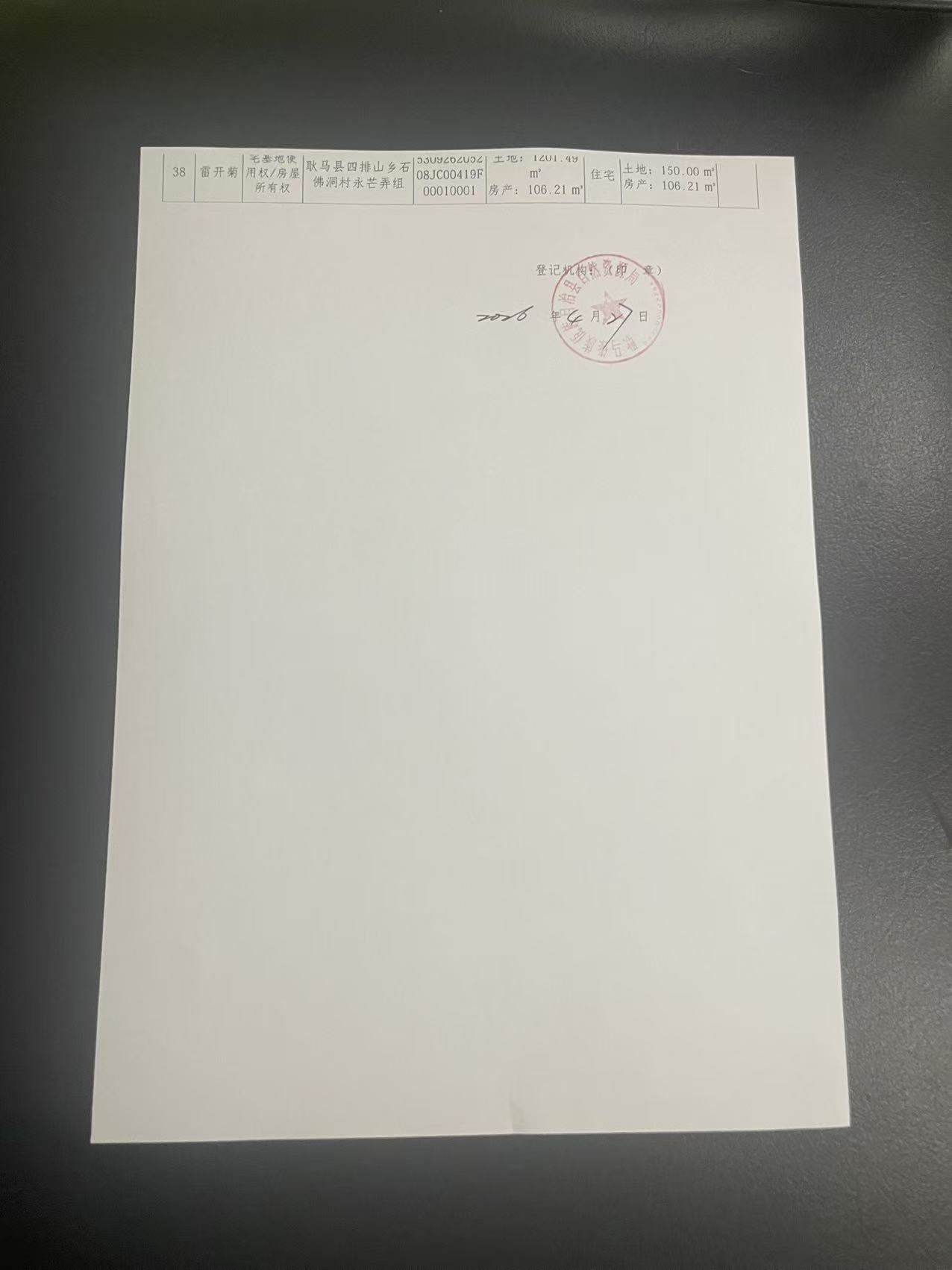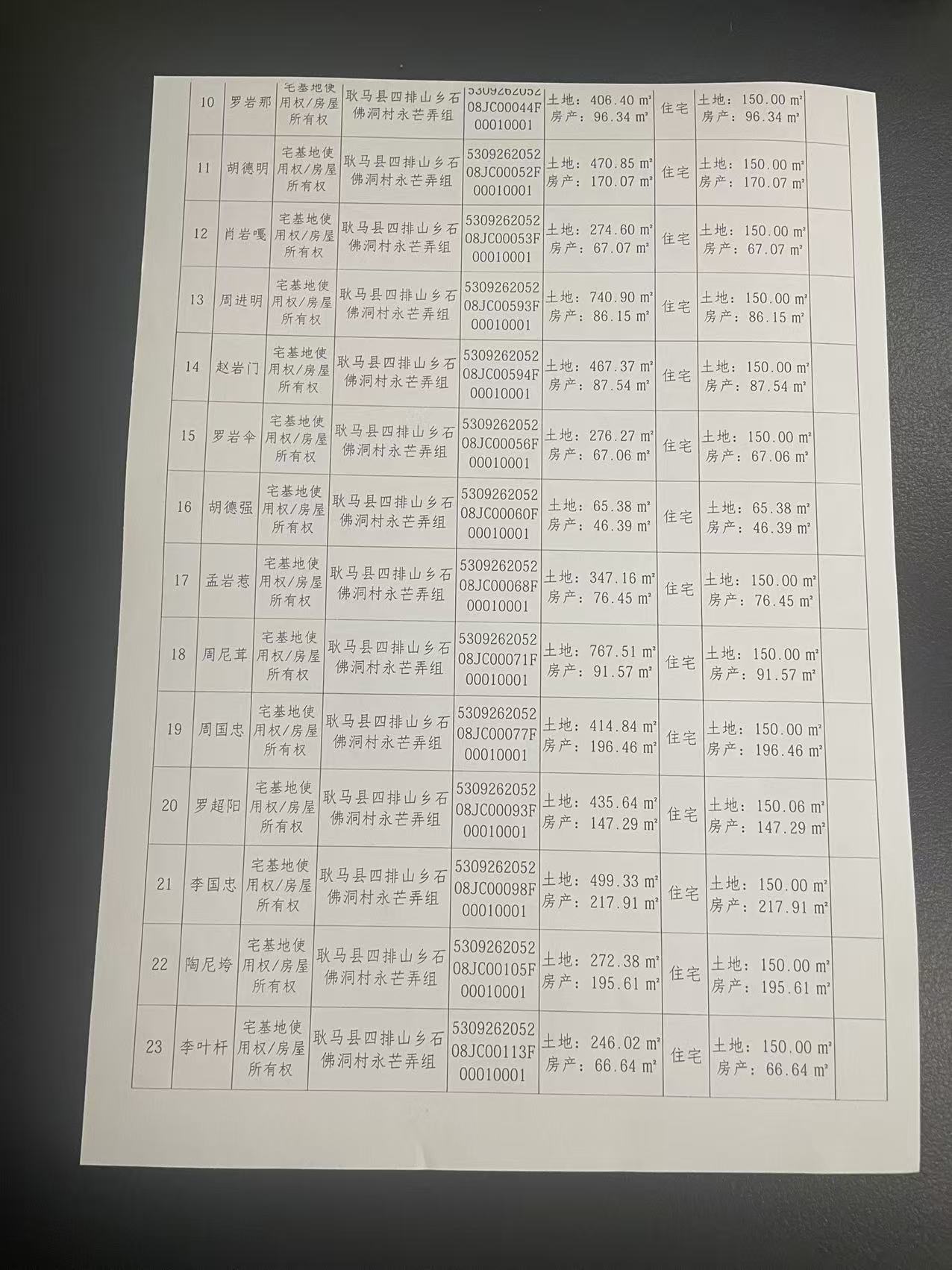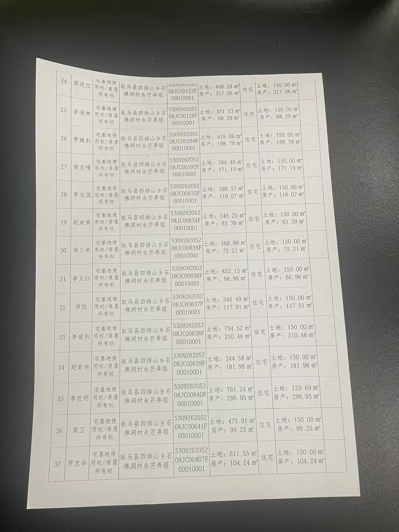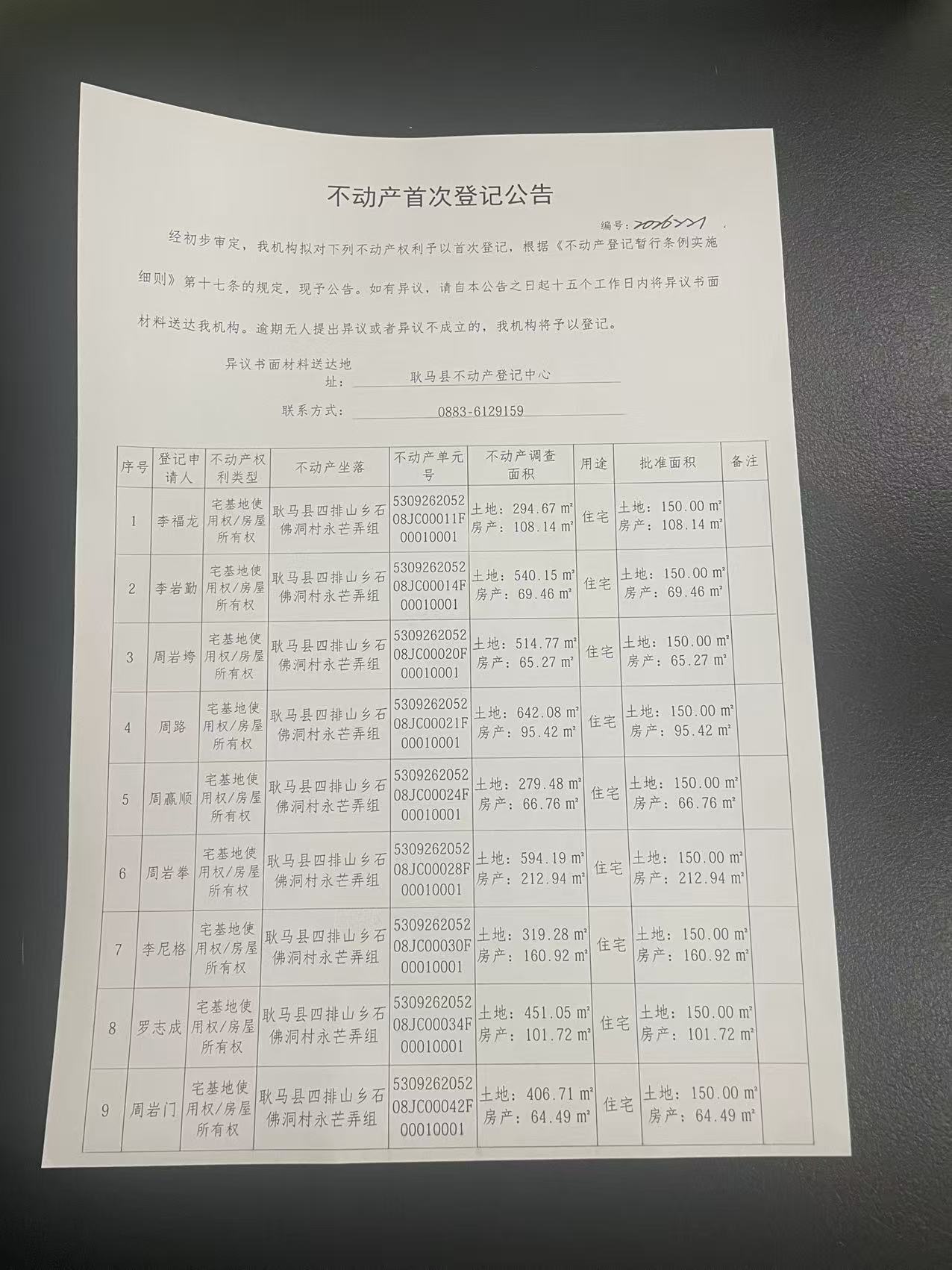 不动产首次登记公告(四排山乡石佛洞村永芒弄组38户)