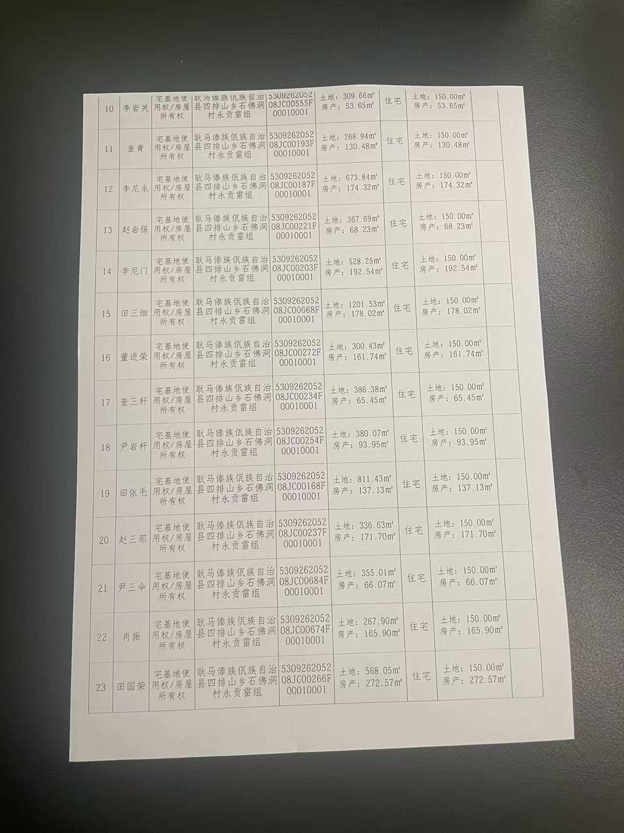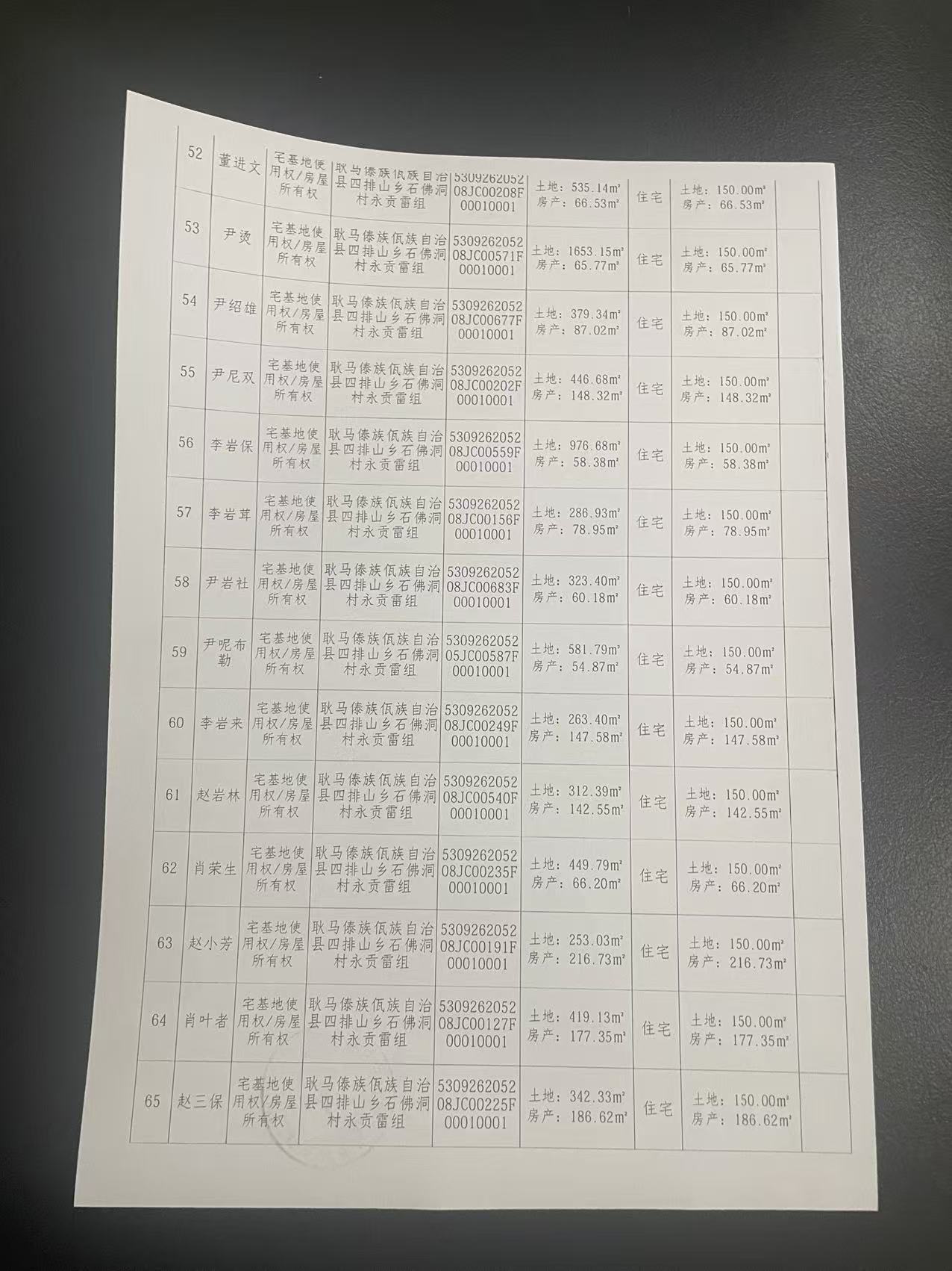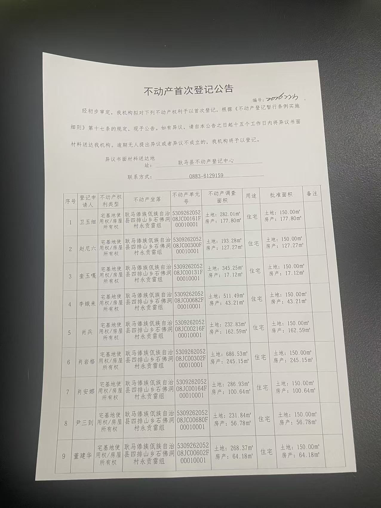 不动产首次登记公告(四排山乡石佛洞村永贡雷组77户)