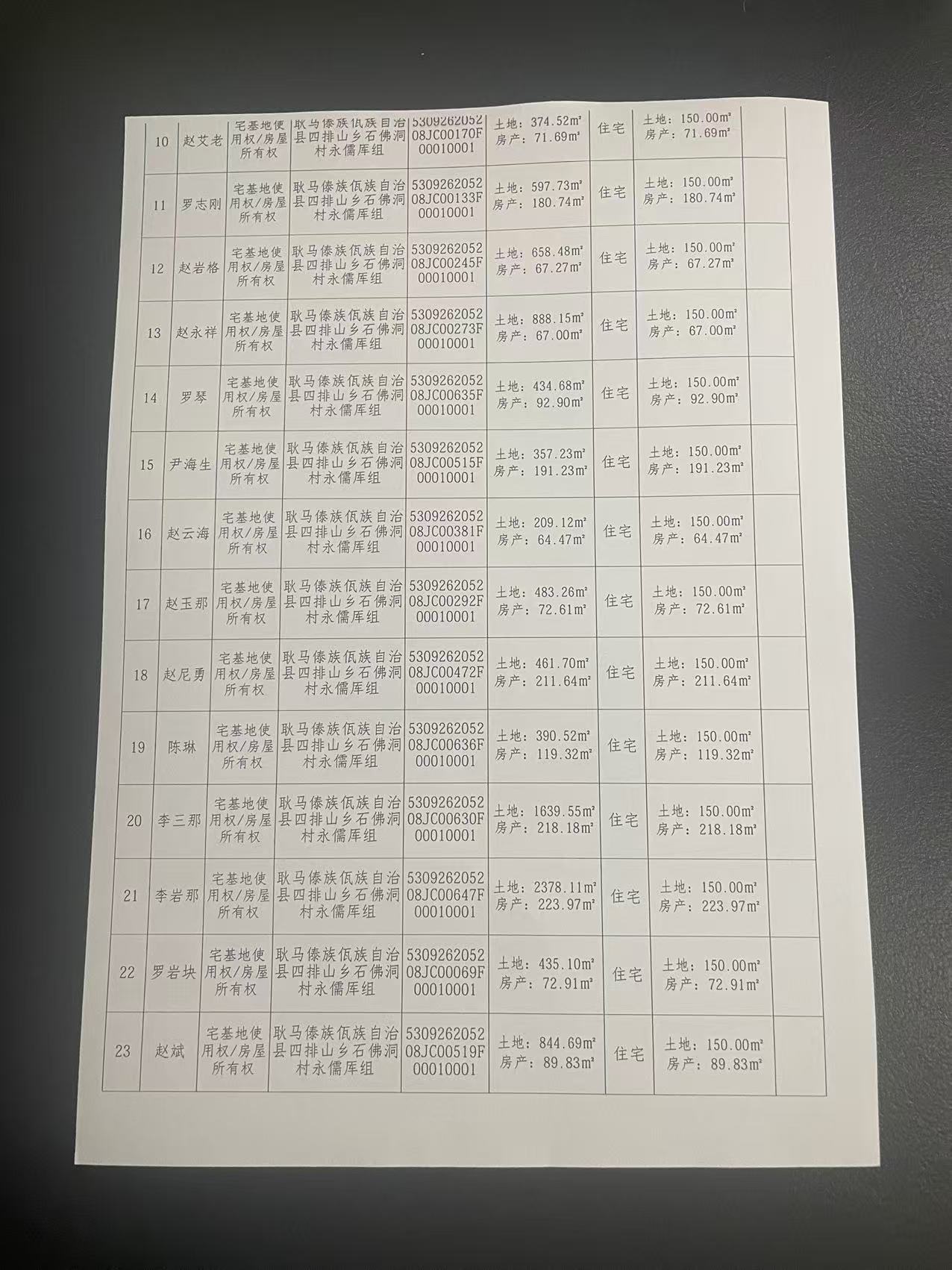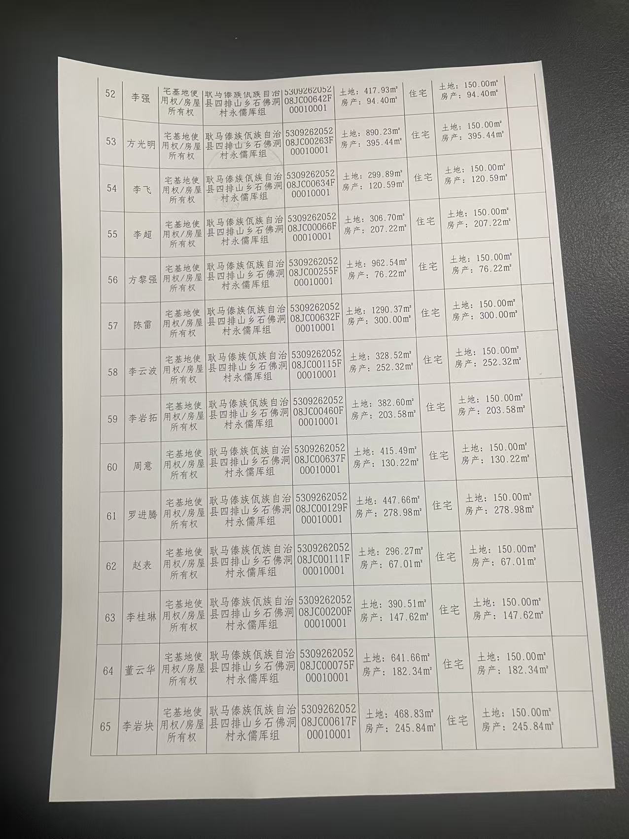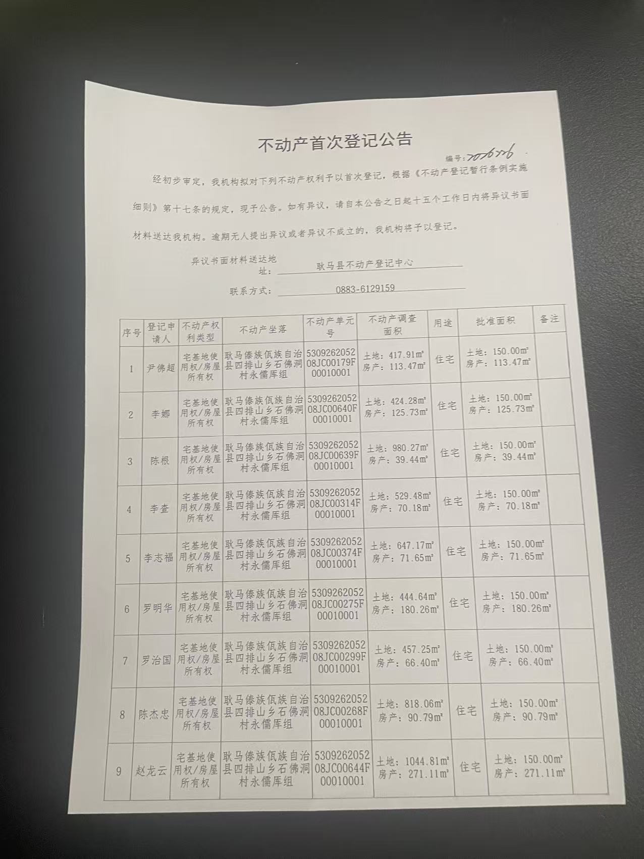 不动产首次登记公告(四排山乡石佛洞组永儒厍组66户)