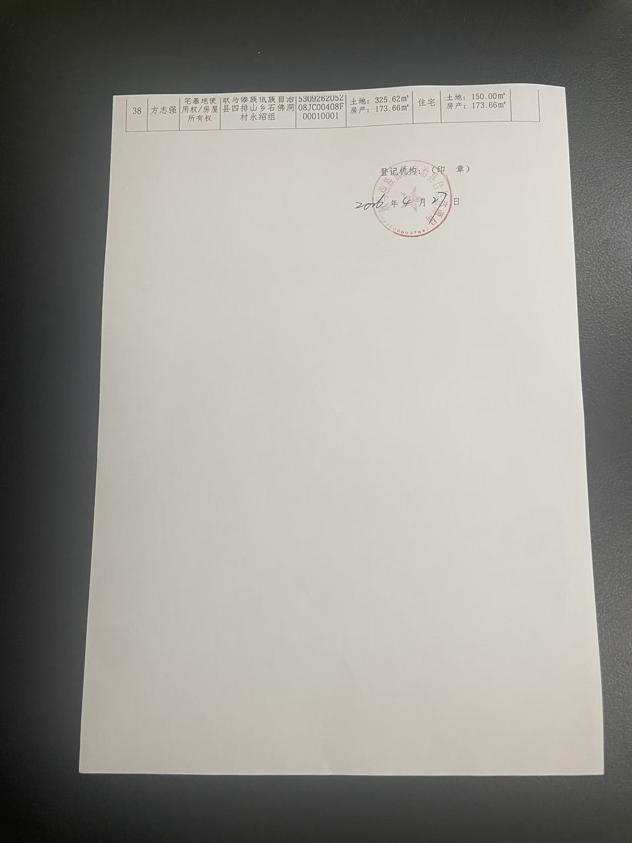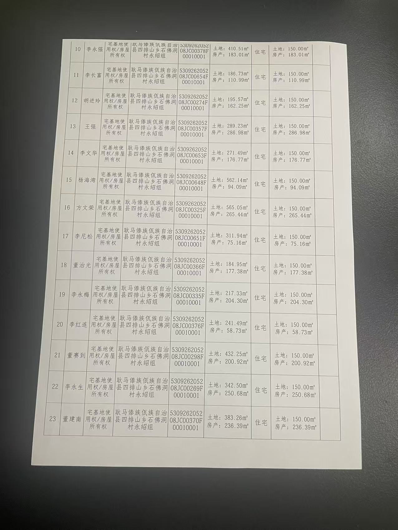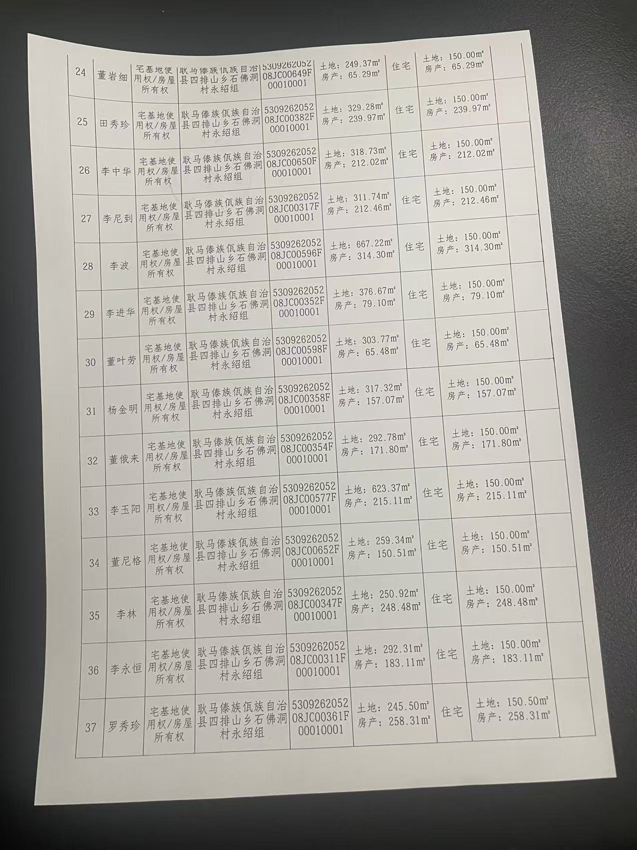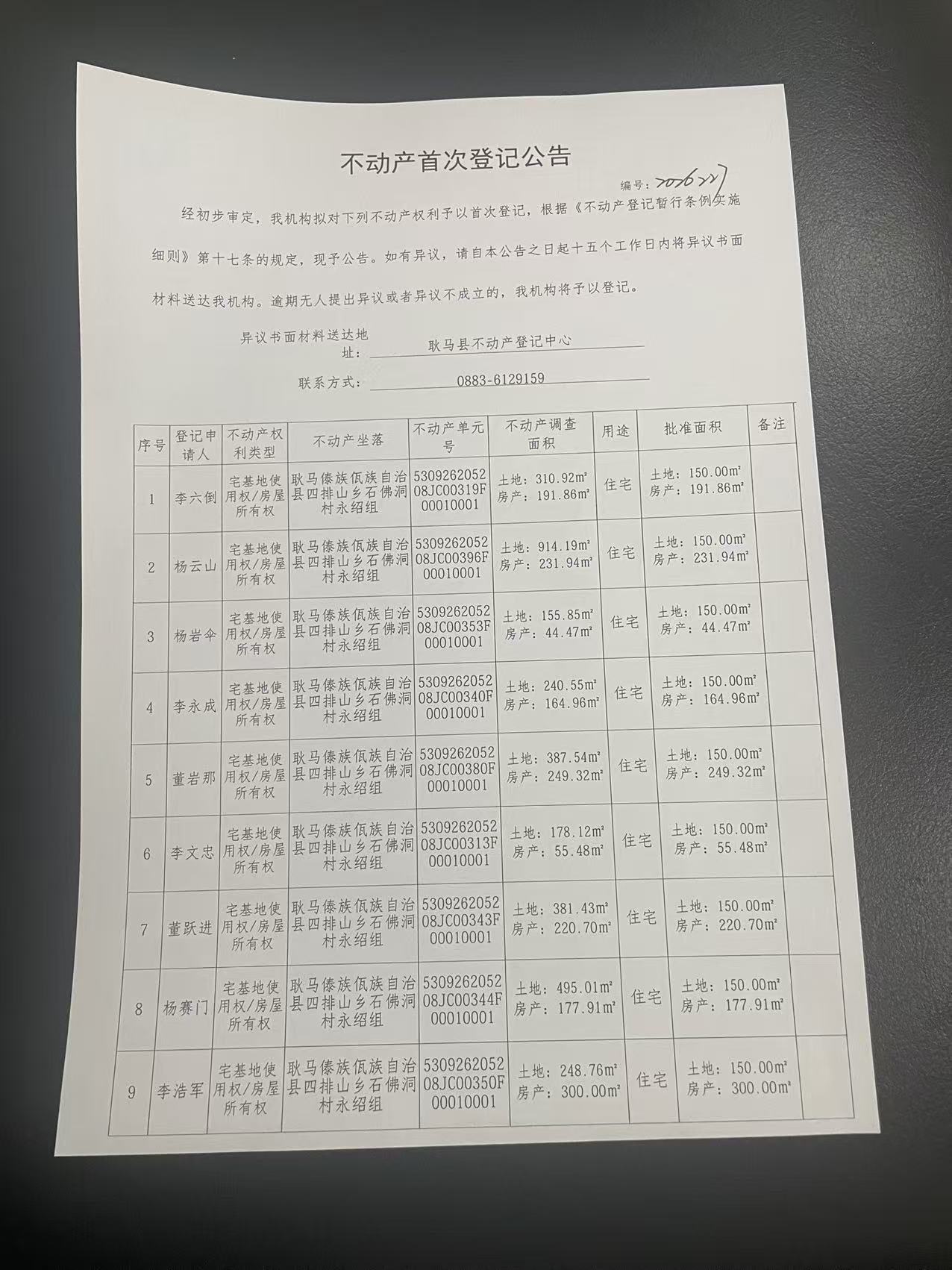 不动产首次登记公告(四排山乡石佛洞村永绍组38户)
