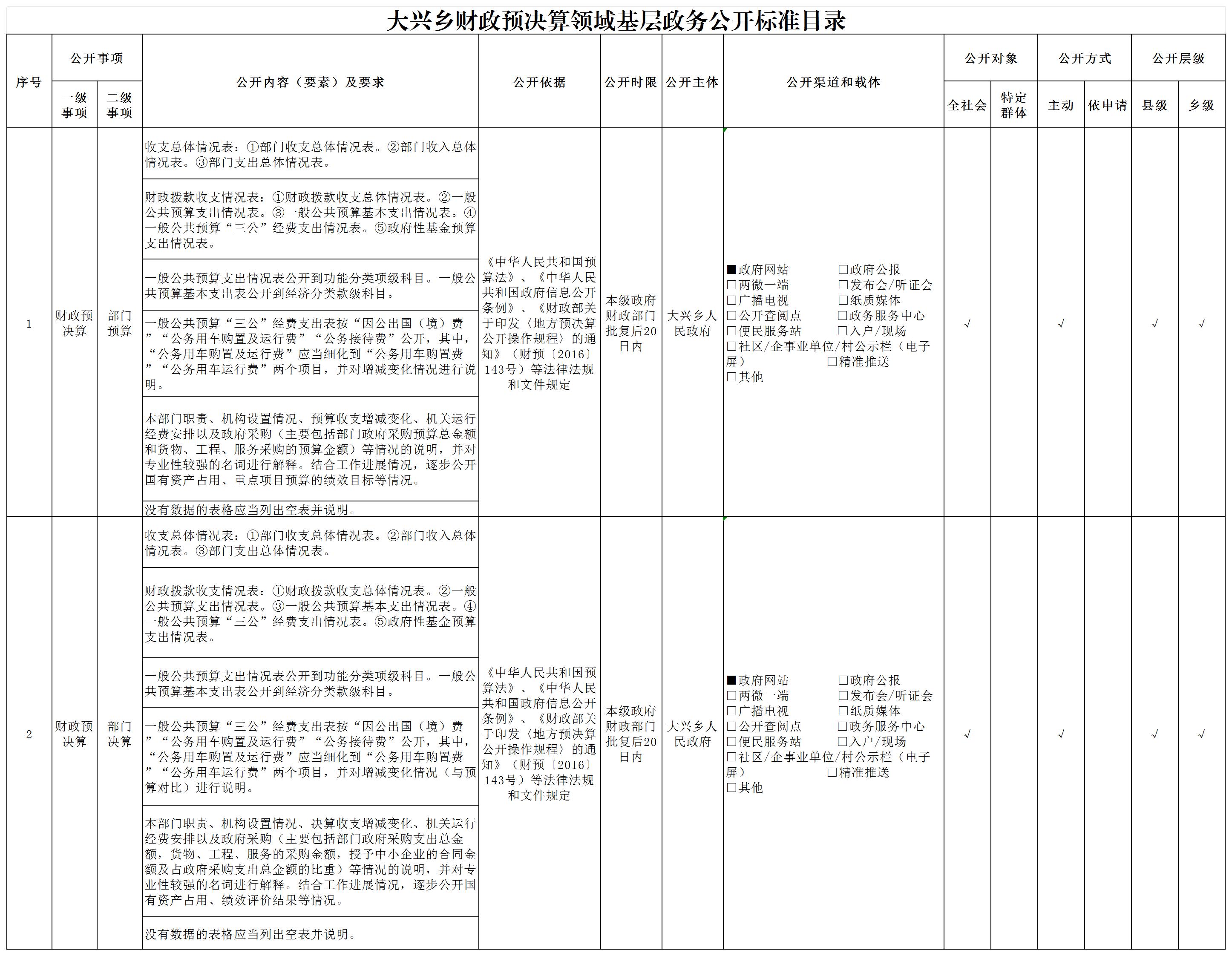 大兴乡财政预决算领域基层政务公开标准目录