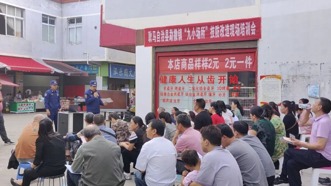 为切实筑牢“九小场所”安全防线,破解辖区小商店、小餐饮、小旅馆等场所安全防控短板,10月21日,耿马自治县勐撒镇综合行政执法队(政府专职消防队、消防工作站)组织开展“九小场所”技防改造现场培训会,全镇70余名“九小场所”经营者及安全管理人员参会。
